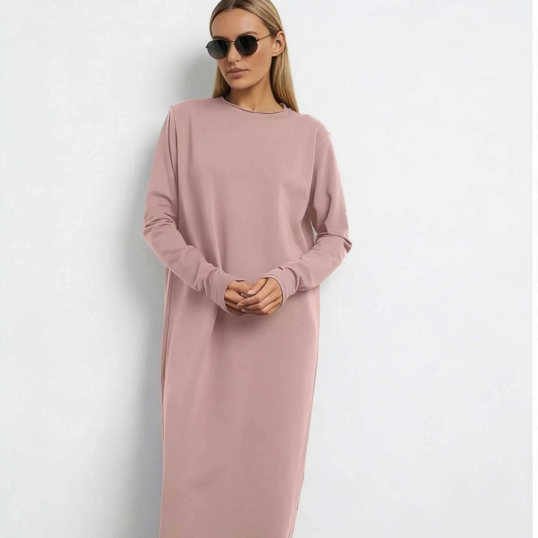 ZYHT 73849 European Wholesale Fashion Casual One Shoulder Ruched Maxi Dress Side Slit Pleated Long Sleeve Dresses for Women