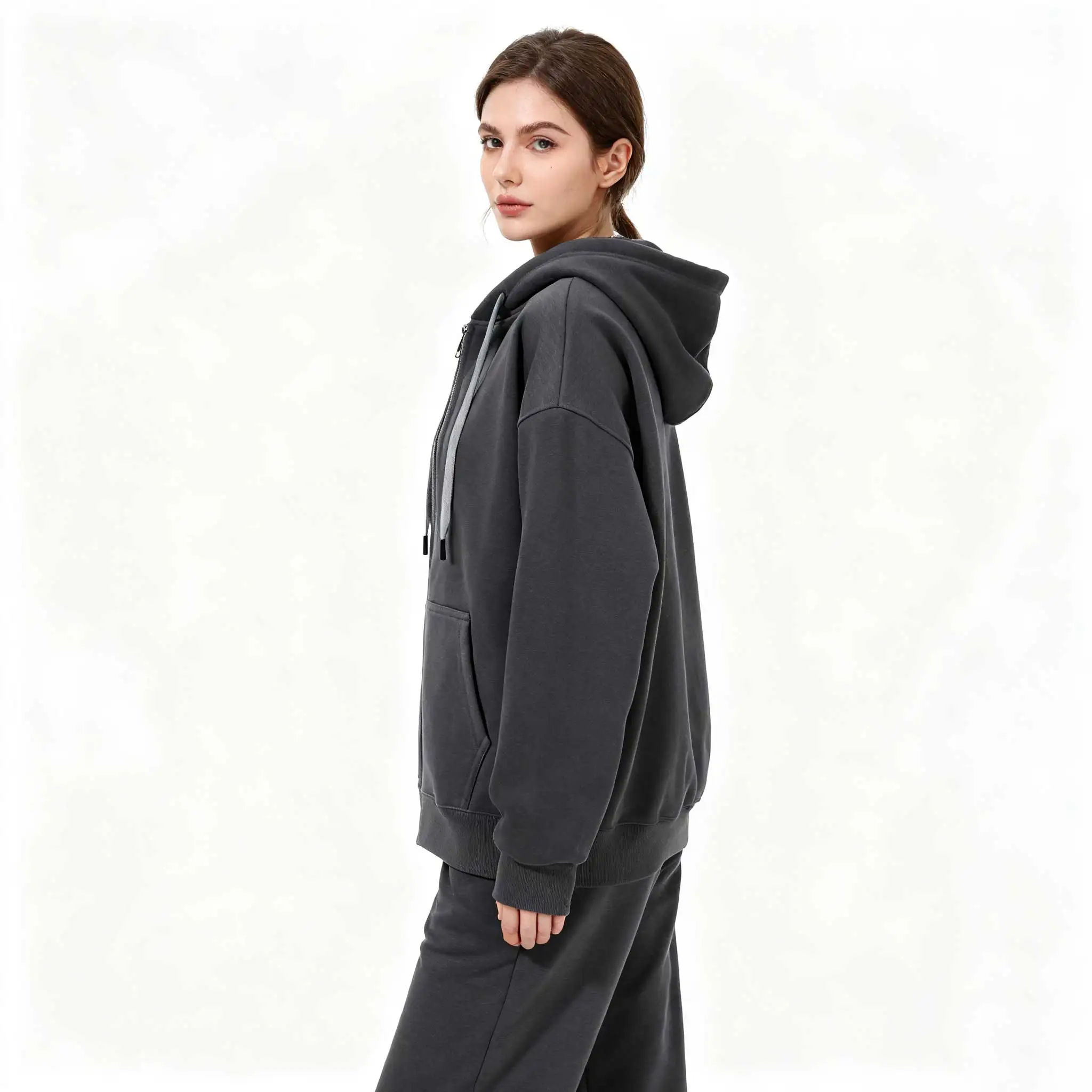 Autumn Spring Unisex Gray Zip-up Sweatshirt-Comfortable Casual Daily Hip Hop Pullover with Anti-Wrinkle & Anti-Pilling Features