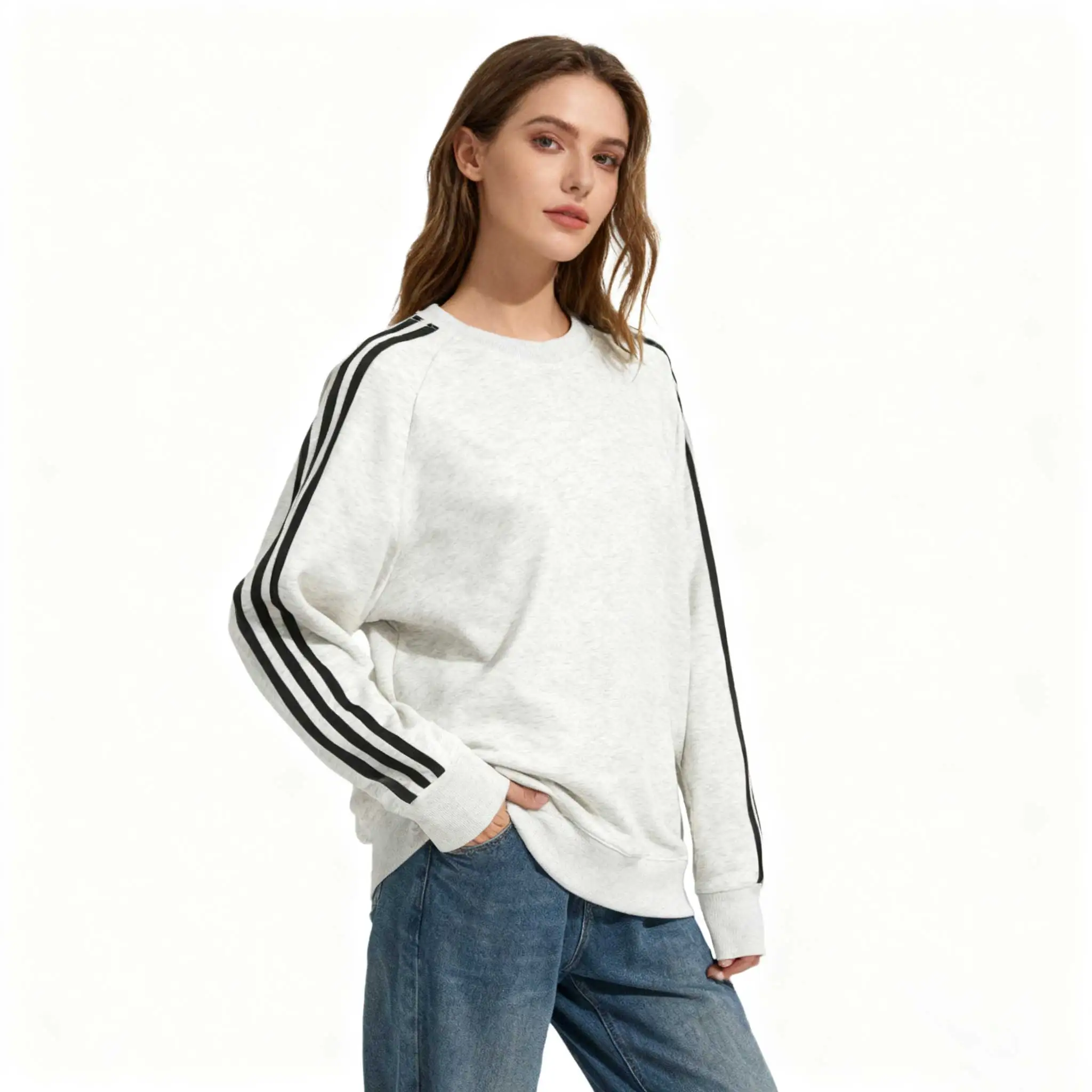 Casual Sporty Unisex Gray Sweatshirt-Three Black Stripes Sleeve Soft Comfortable Waterproof Quick-Dry Anti-Wrinkle Pullover