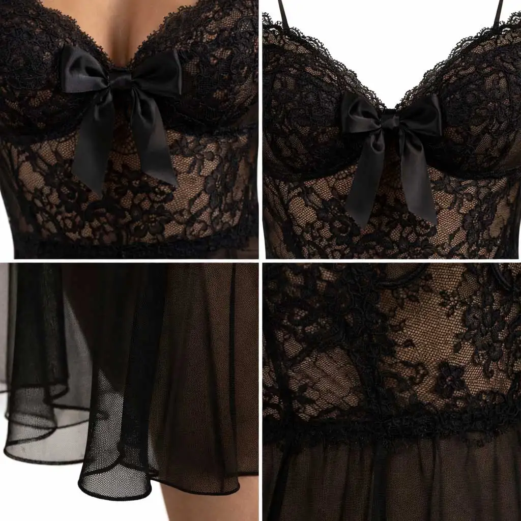 Elegant Sexy Lace Floral Women's Pajamas Soft Customizable Nightwear Set Sleeveless Camisole Home Wear Front Breathable for