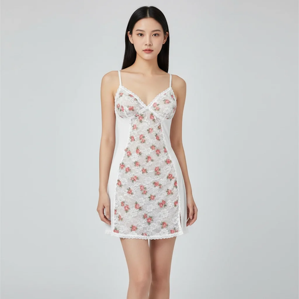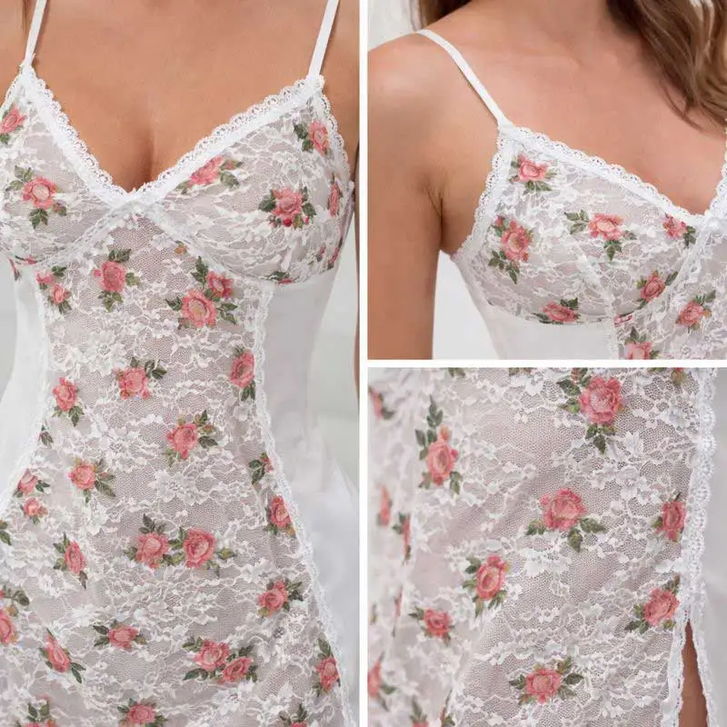 Sexy Women Microfiber Lace Sleeveless Babydoll Nightgown Silk Screen Printing Soft Smooth OEM Factory Lingerie Brands Elegant