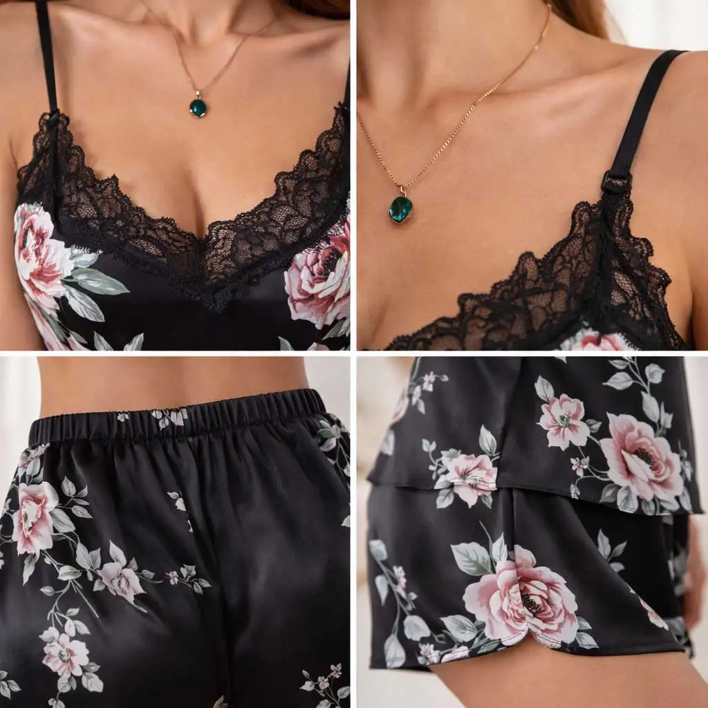 Matte Finish Synthetic Lace Elegant Floral Pattern Women's Nightgowns with Contrast Detail and Front Logo for Clothing Importers