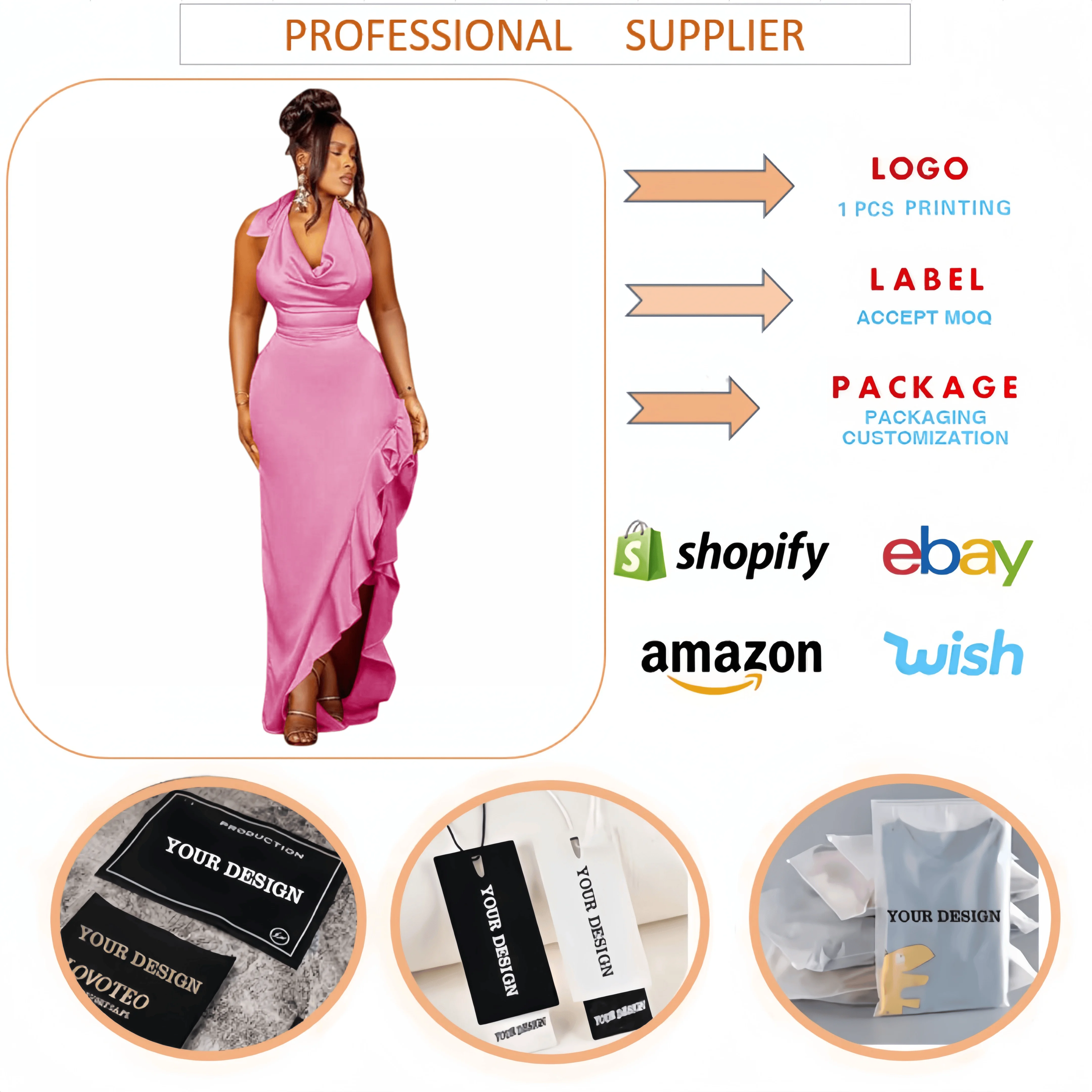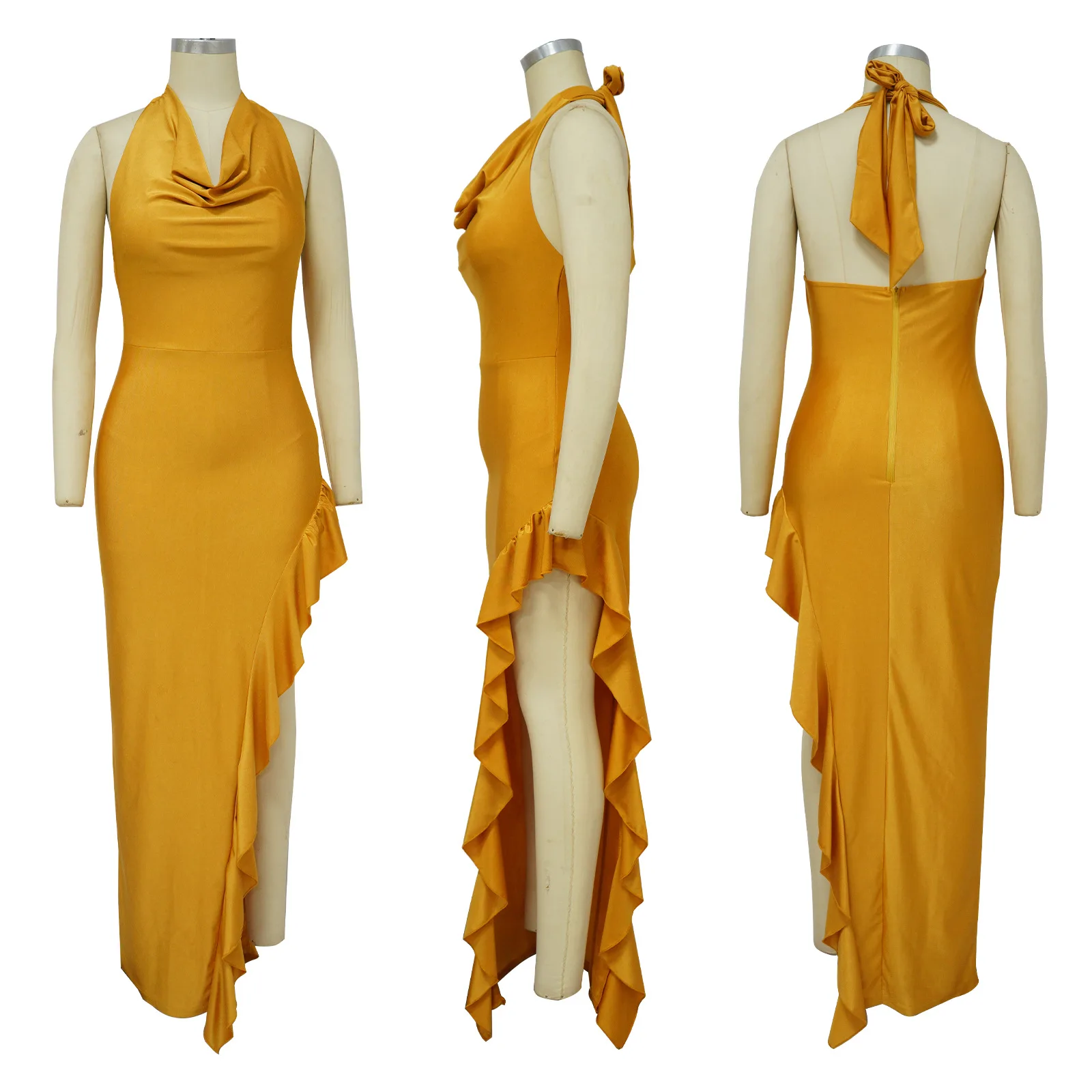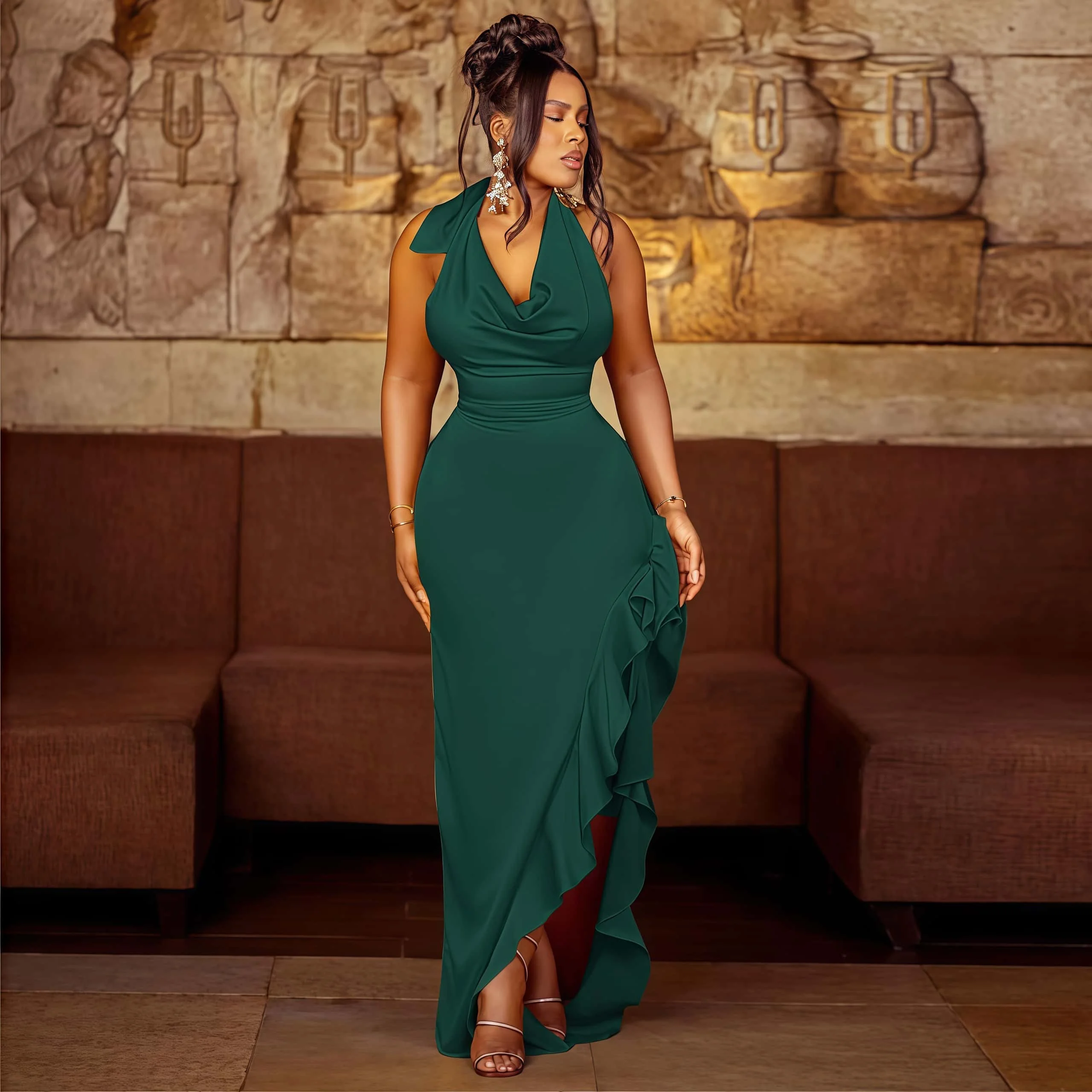 K10440 Fashion African Dresses for Ladies Clothing Women's Halter Cowl Neck Open Back Ruffled Evening Dress