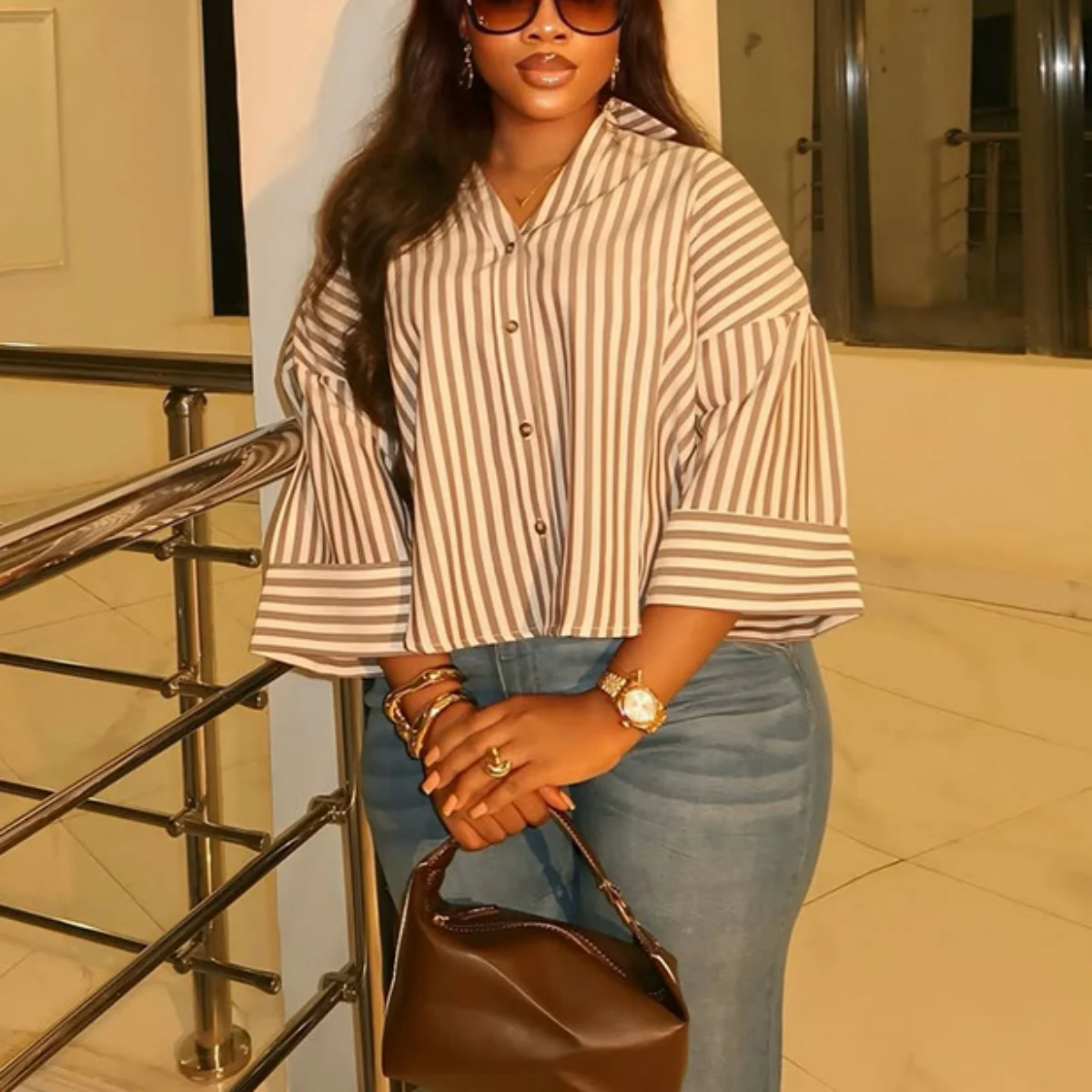 HK73145 Chic Design Blouse Femme Fall Fashion Linen Blend Wide Sleeve Blouses Vintage Long Sleeve Female Shirts Blusas Chic Tops