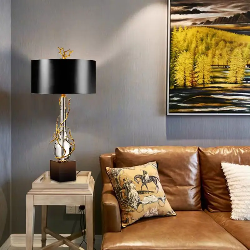 JACKSUN Luxury Copper Branch Table Lamp Marble K9 Crystal Simple E14 for Reading Desk Bedroom Headboard Living Room Table
