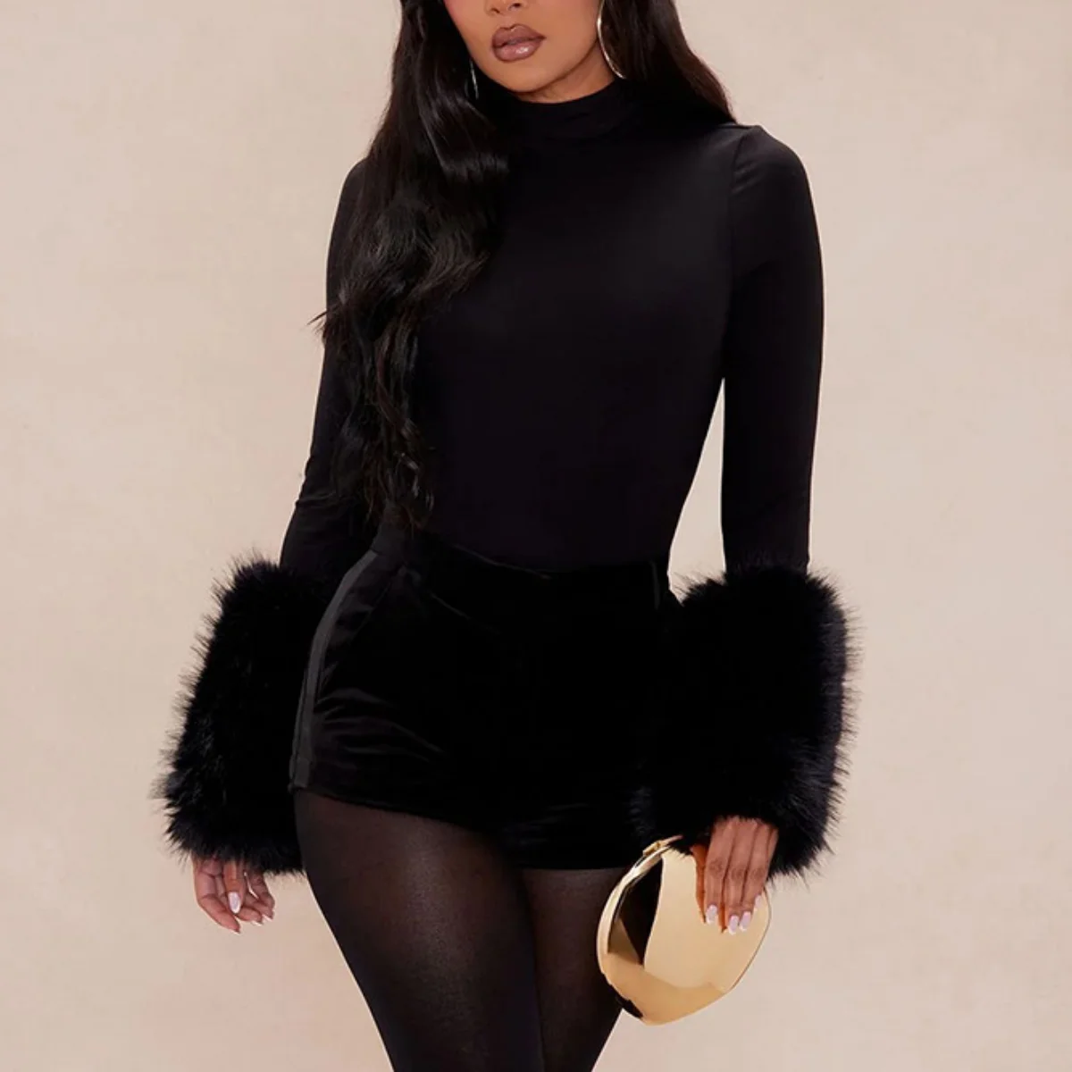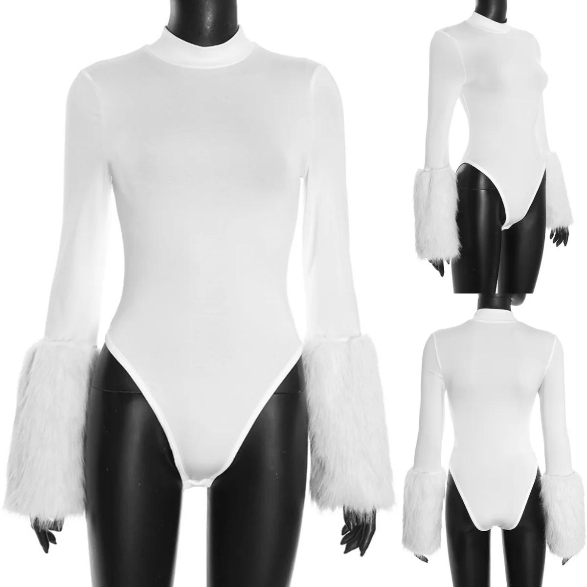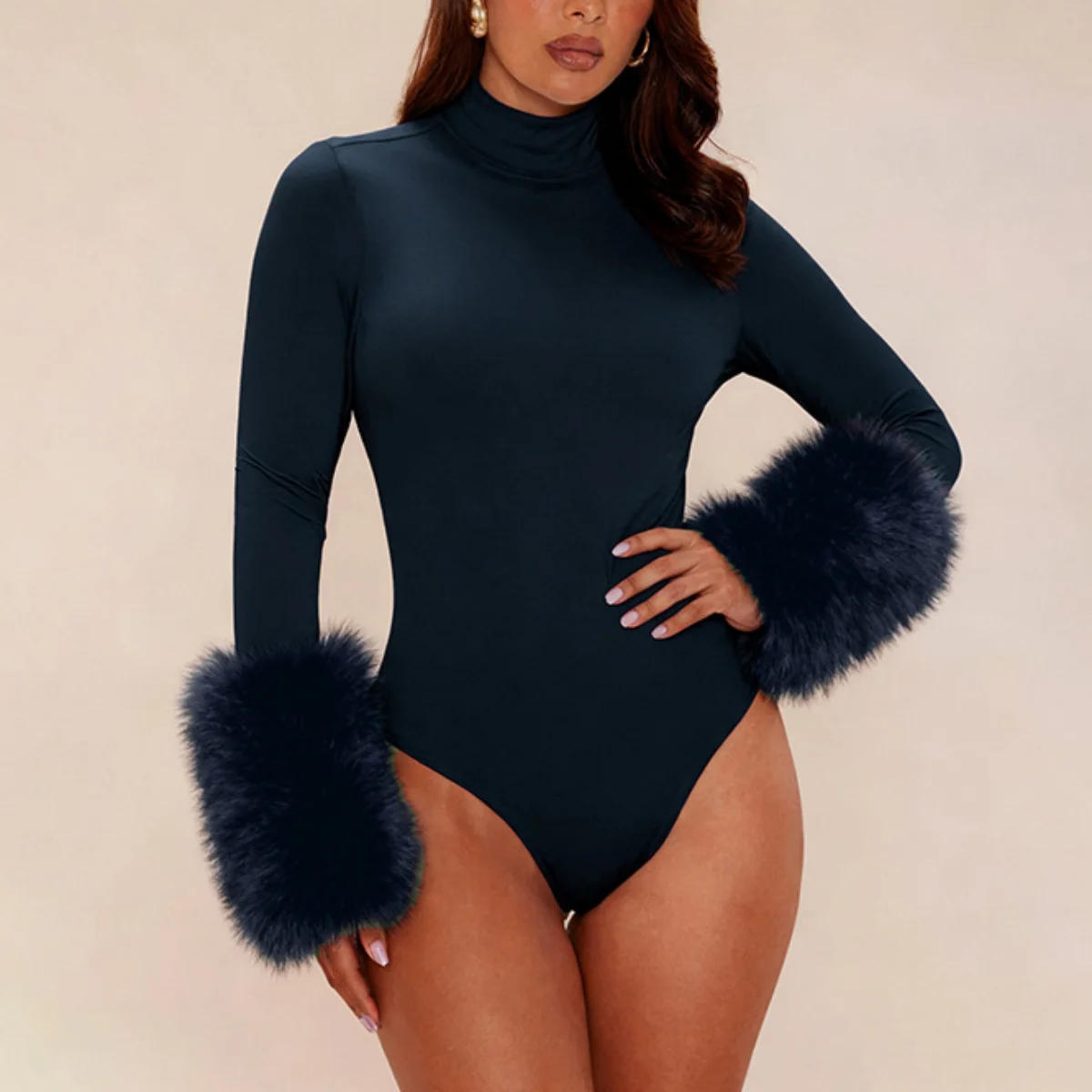 341 Fashion Women Clothing Boutique Sexy Fit Slim Long Sleeve With Fur Tops Women Skinny Bodycon Bodysuit for Women
