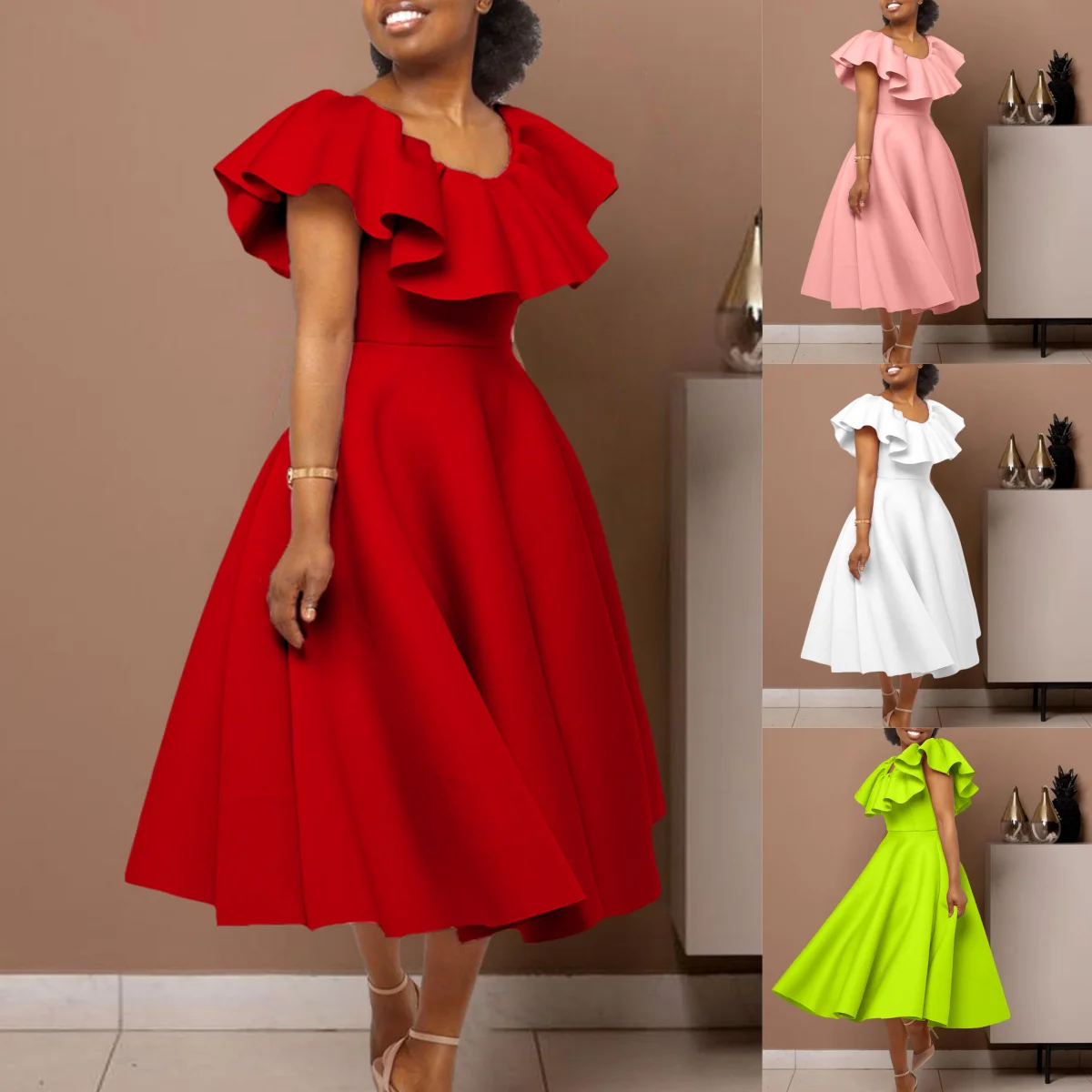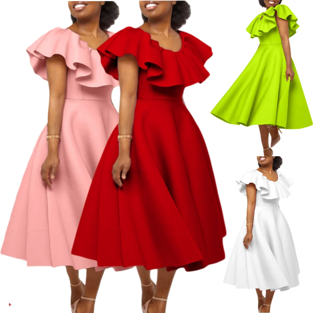 D367 New Arrivals Fashionable Summer a Line Ruffles Dresses Women Elegant Party Evening Dresses Formal Dress for Women
