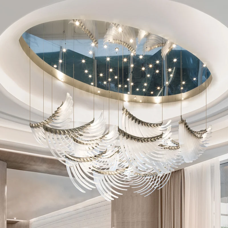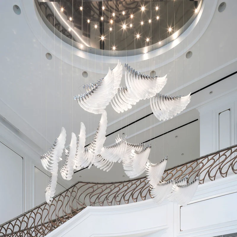Customizable Artistic Glass Angel Wings Chandelier E26 LED Dimmable Hotel Lobby Duplex Building Hollow Hall Installation Middle