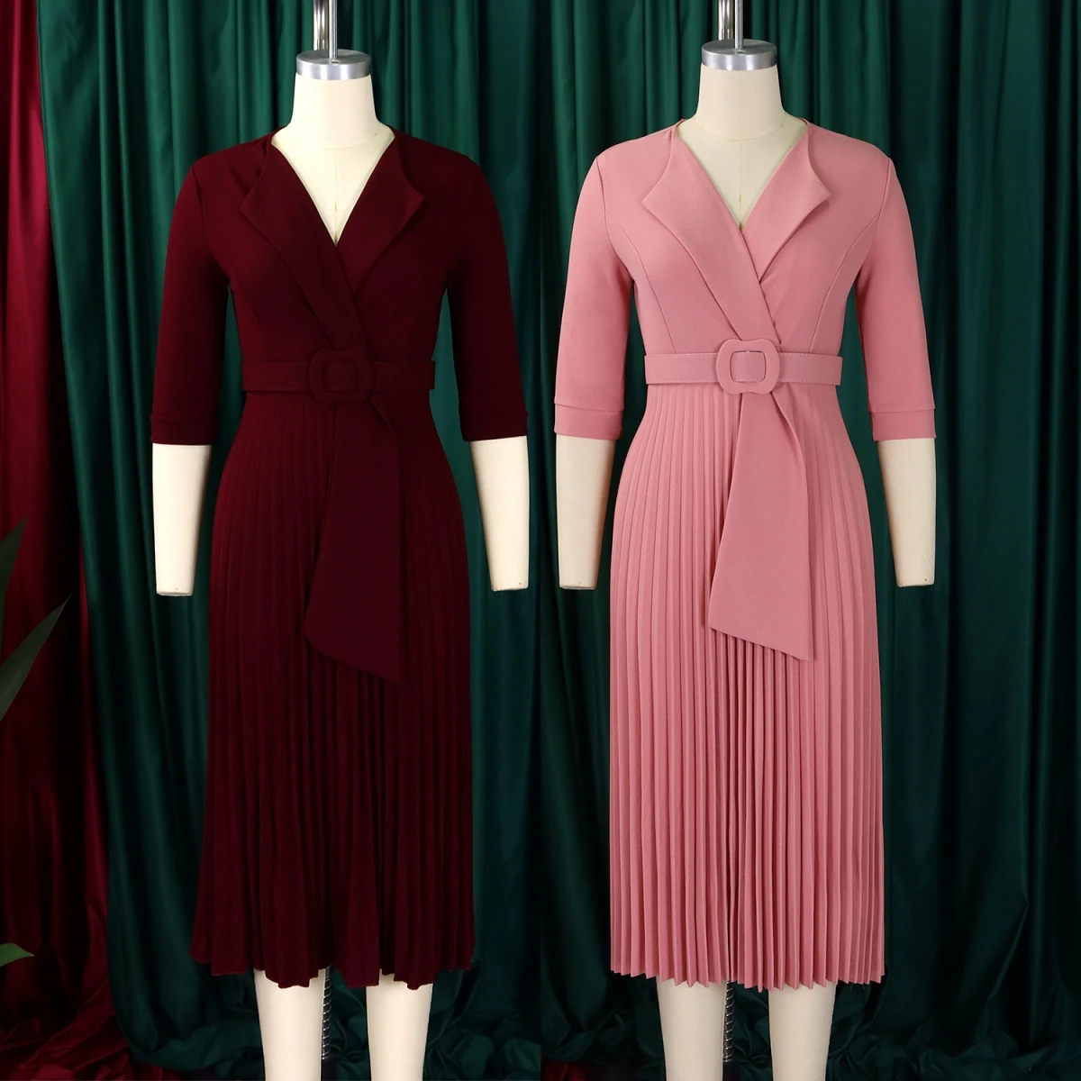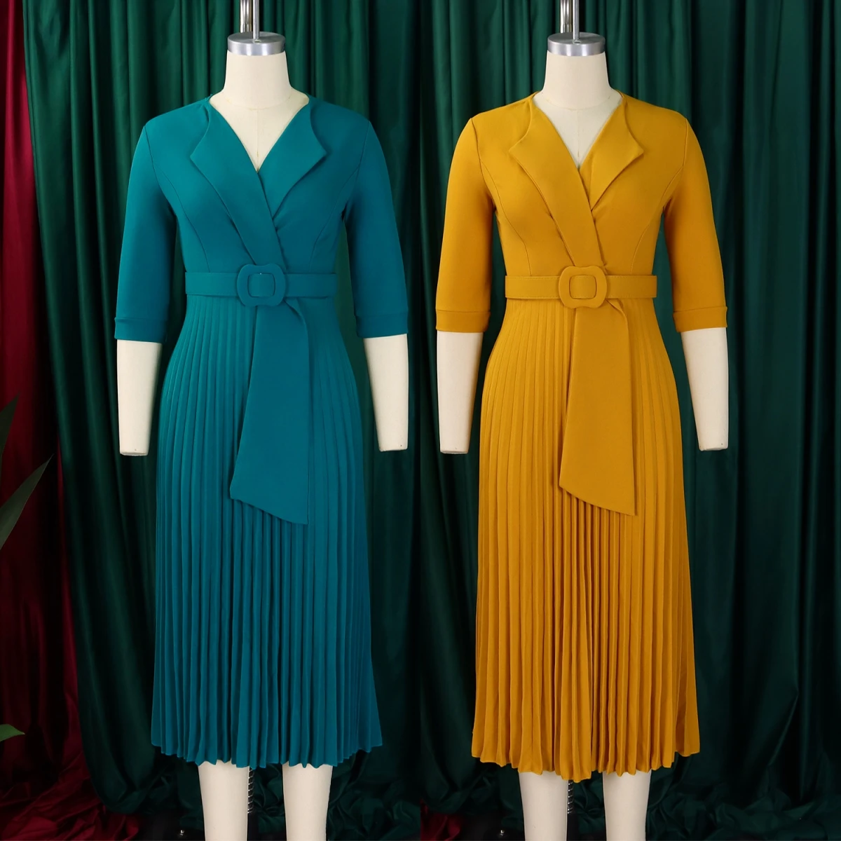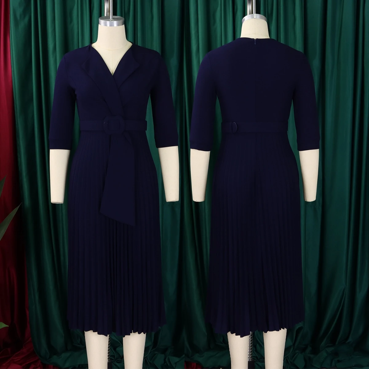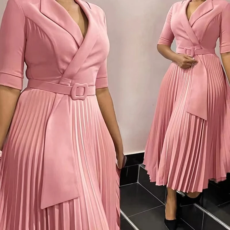 D3291 Latest Design Office Lady Dresses Women Casual Elegant Suit Collar Half Sleeve Pleated African Career Dresses for Women