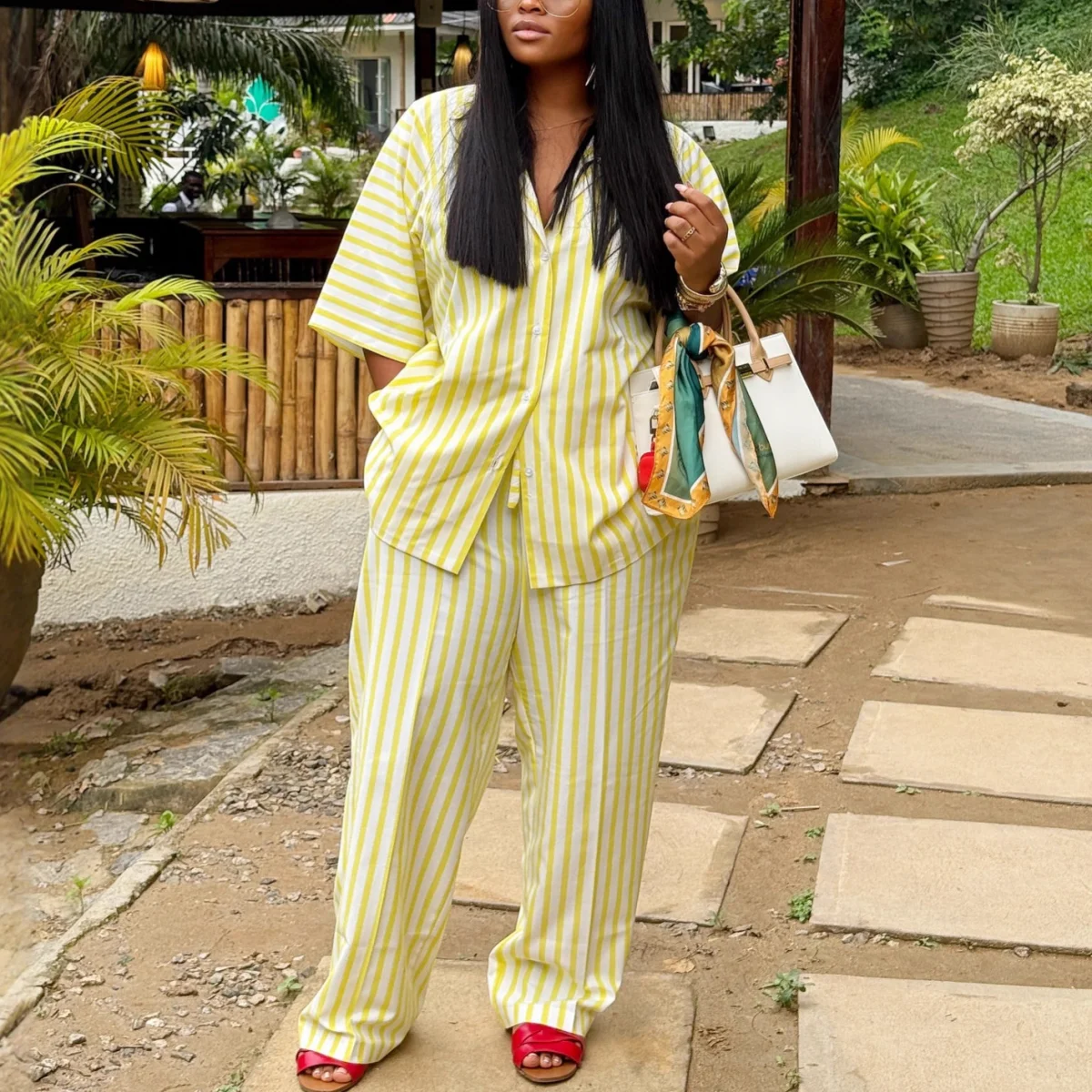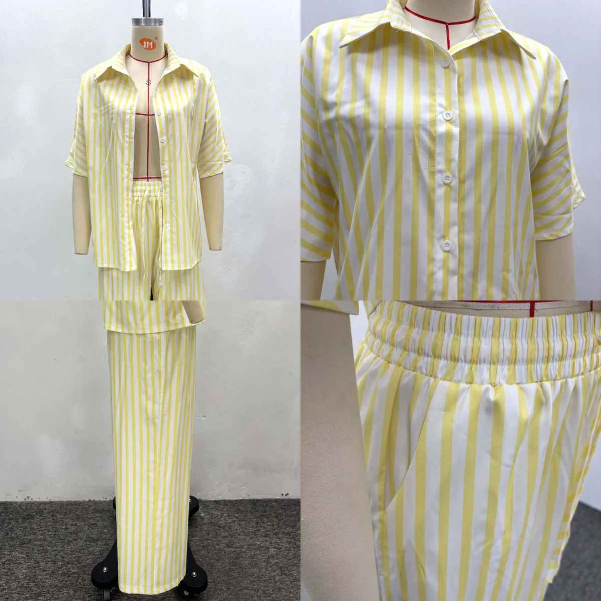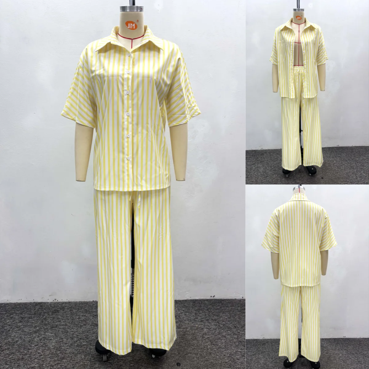 SH1875 Clothing Manufacturers Women Two Piece Set Summer Fashionable Loose Short Sleeved Shirt Casual Pants Women's Set