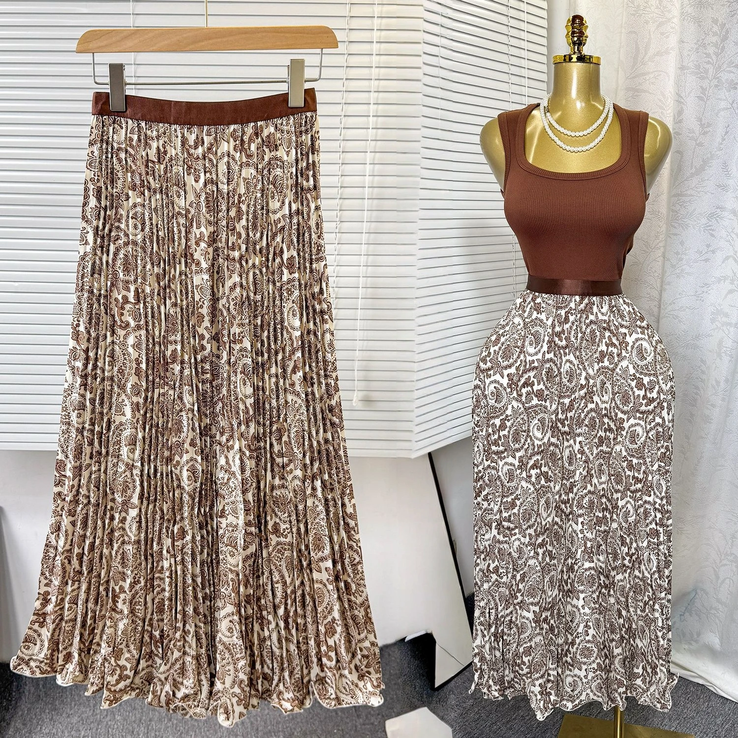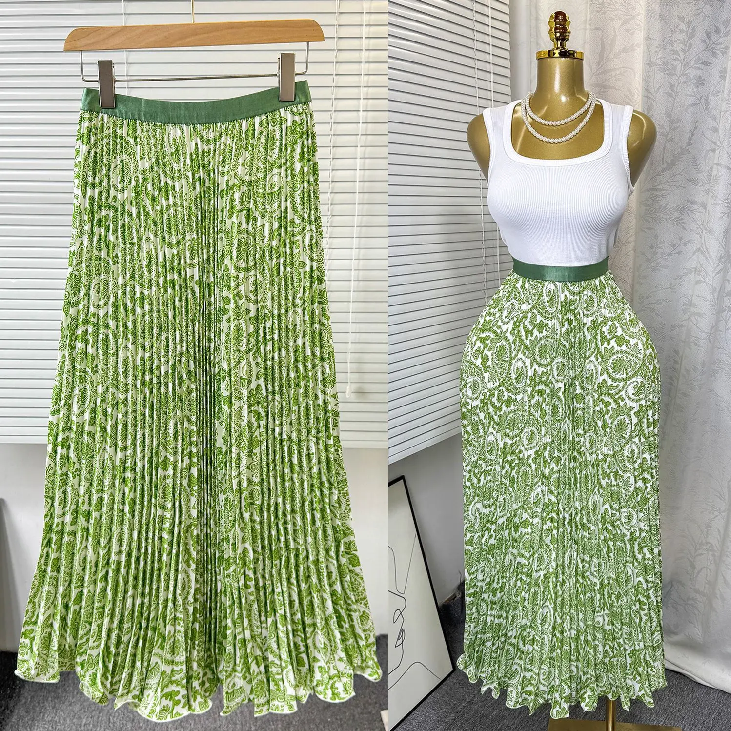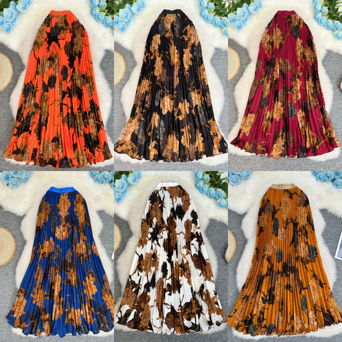 8965 African Ladies Skirt Print Versatile Midi Skirt for Women High Waist A-line Pleated Skirt With Wide Hem and Draped Effect