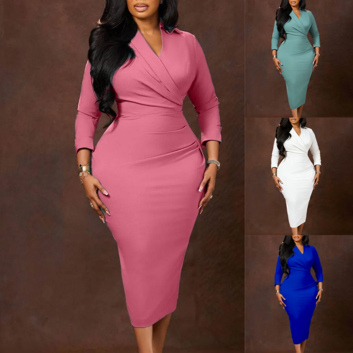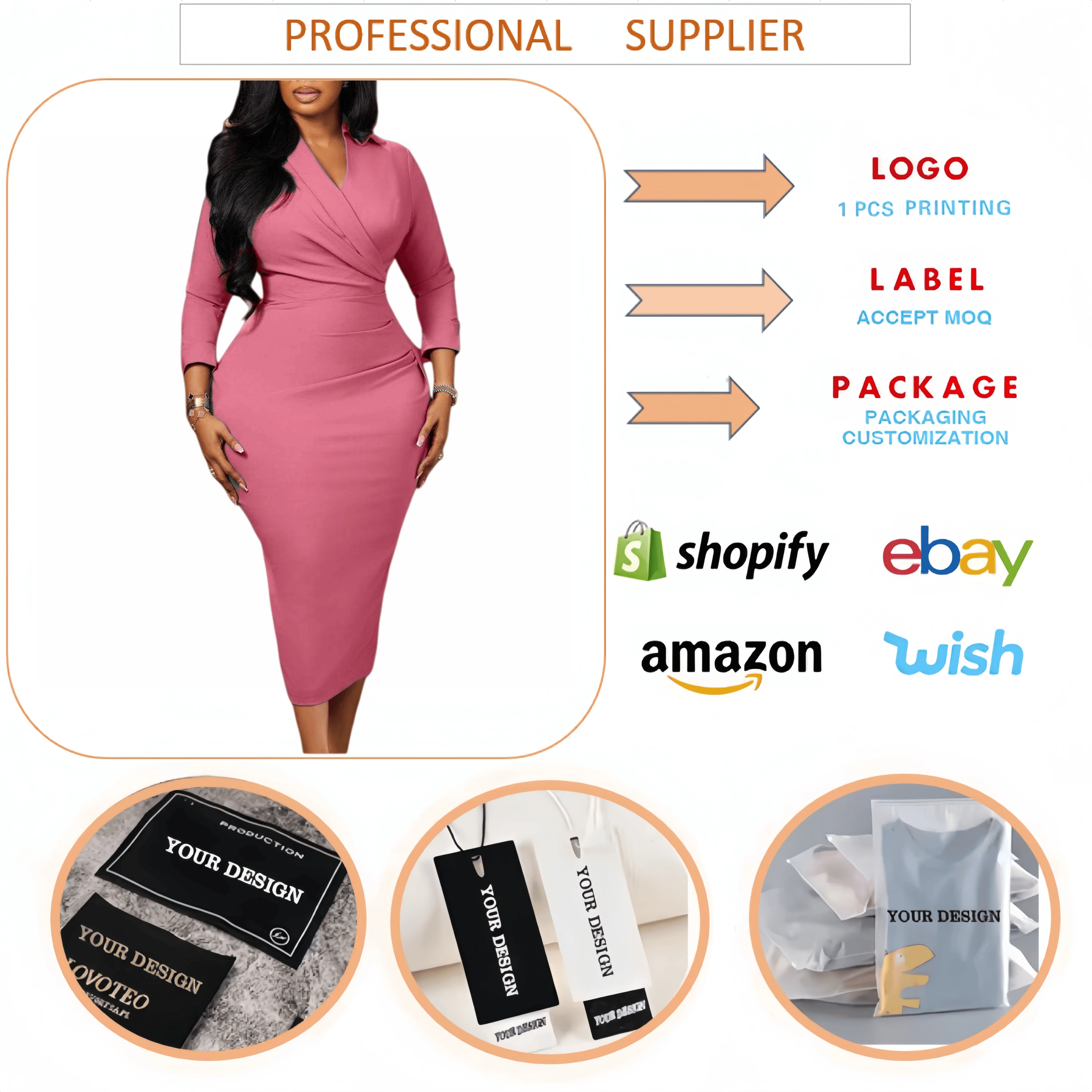 D3356 Fashion African Dresses Women Casual Lady Elegant V-neck 3/4 Sleeve Ruched Pencil Dress Ladies Career Dress for Women
