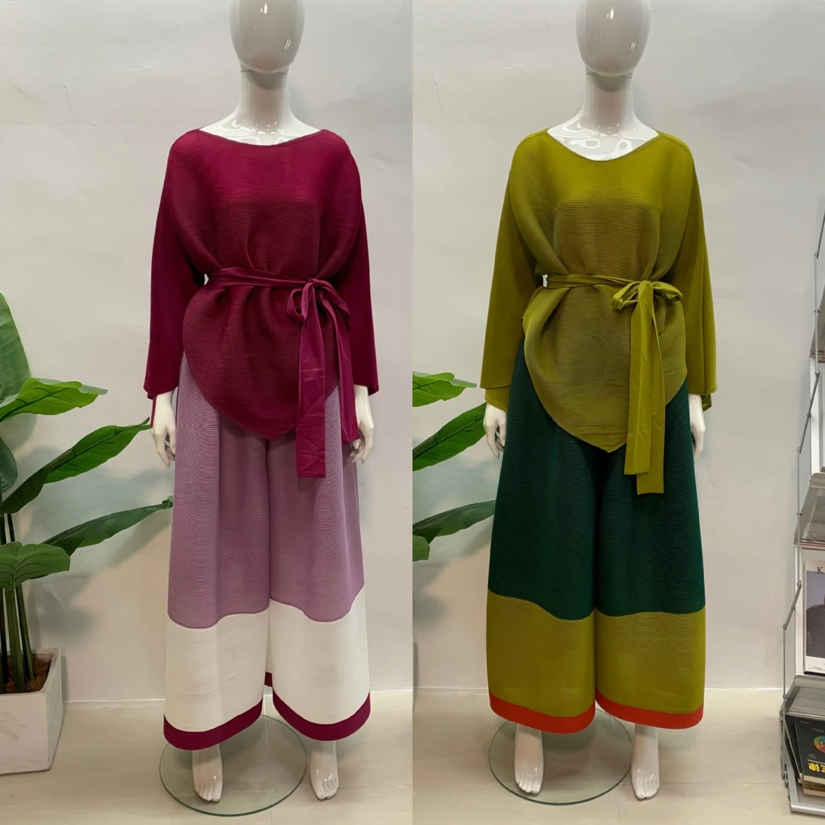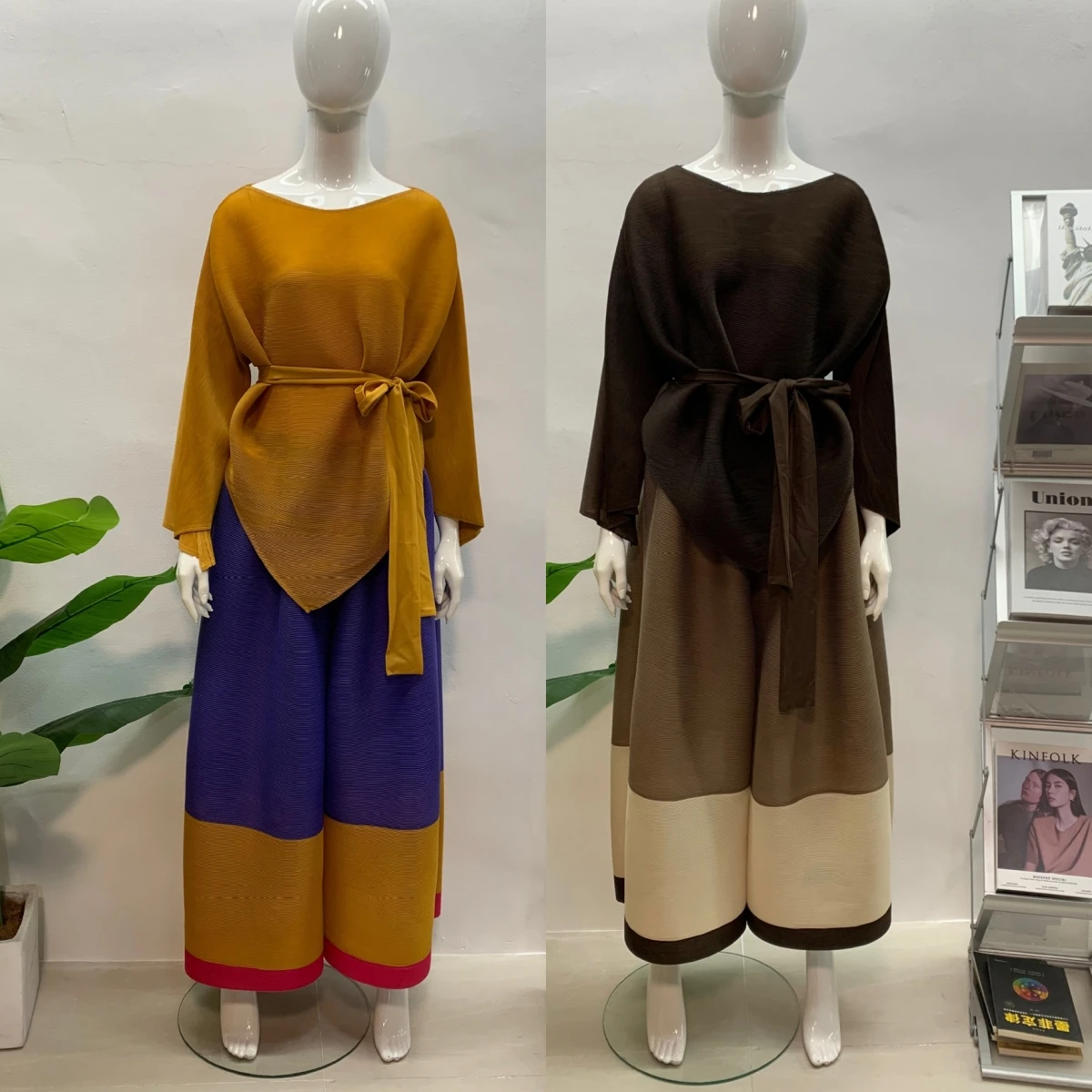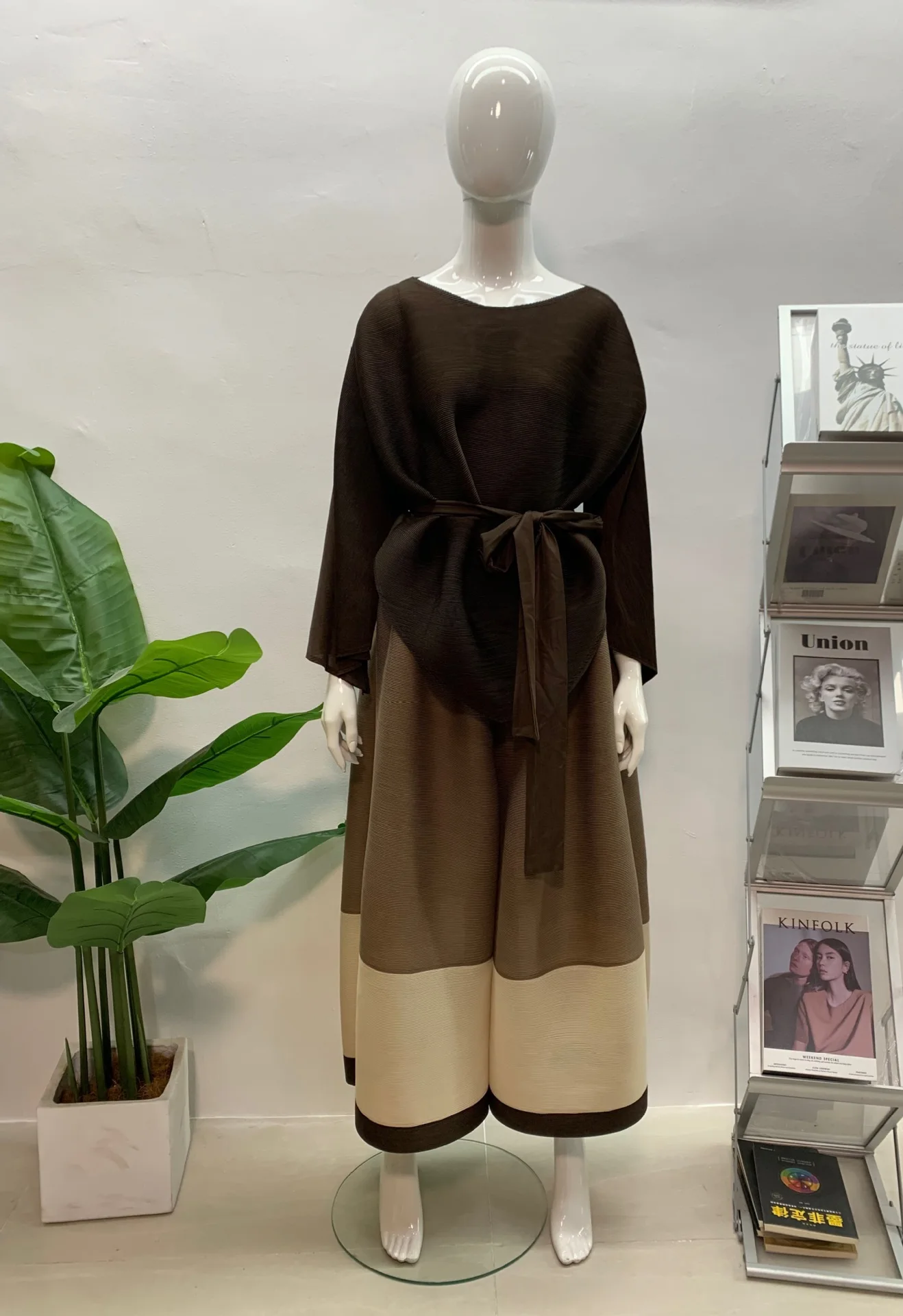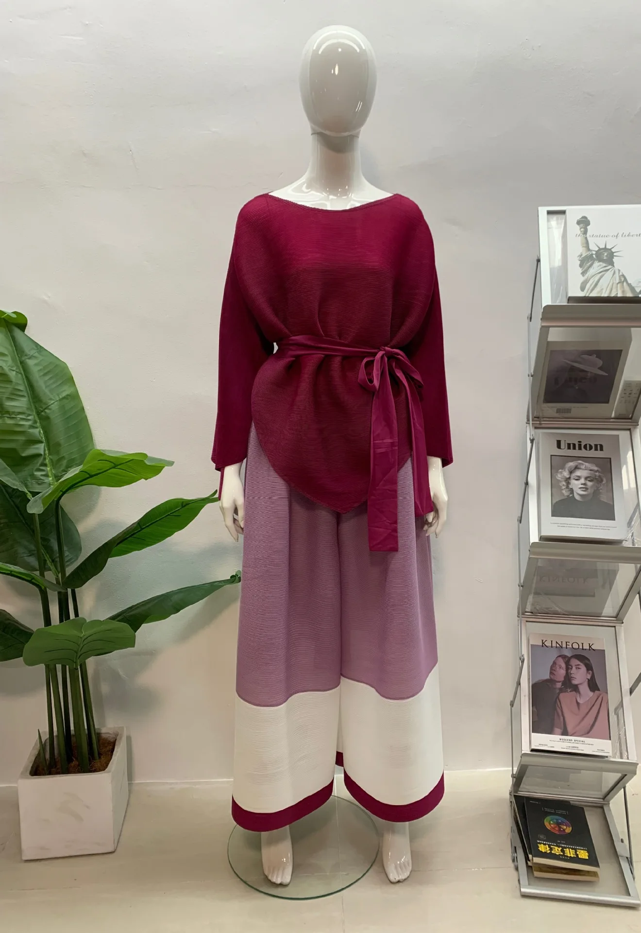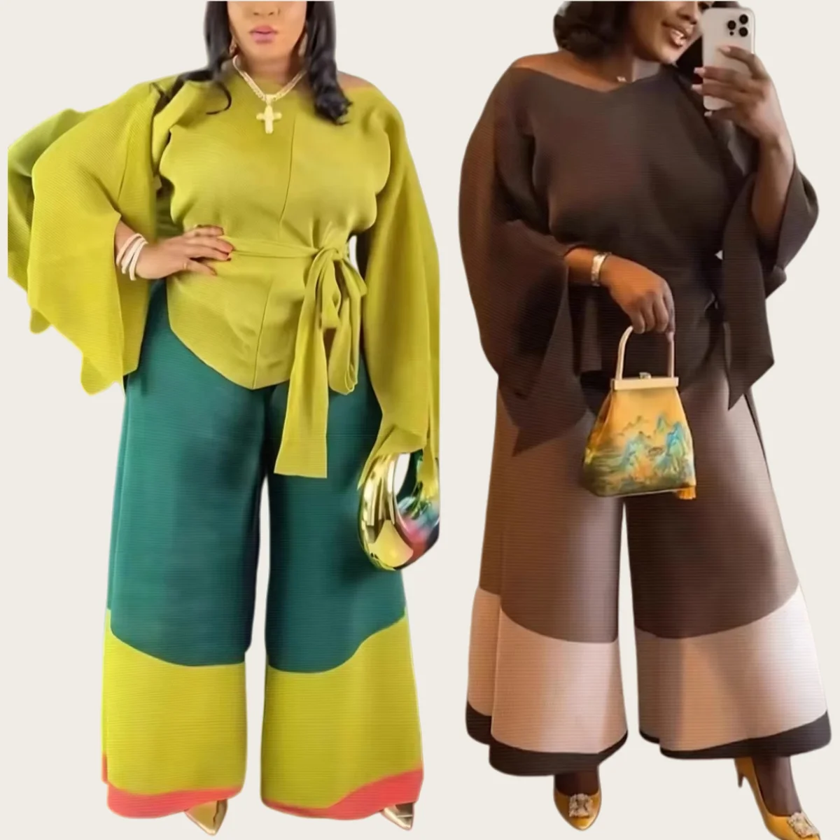 Latest Design Women's Plus-size African Fold Loose Irregular Top Collocation Color Wide-leg Pants Large Size Two-piece Set