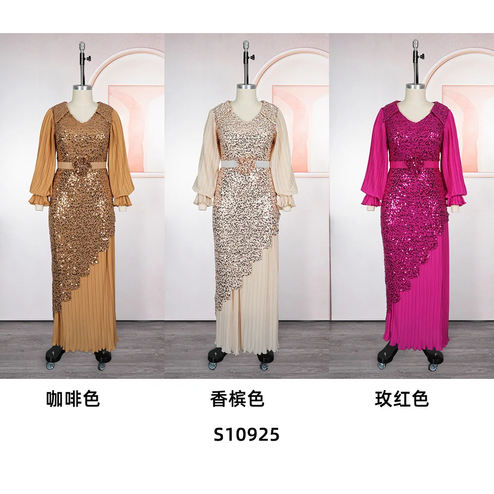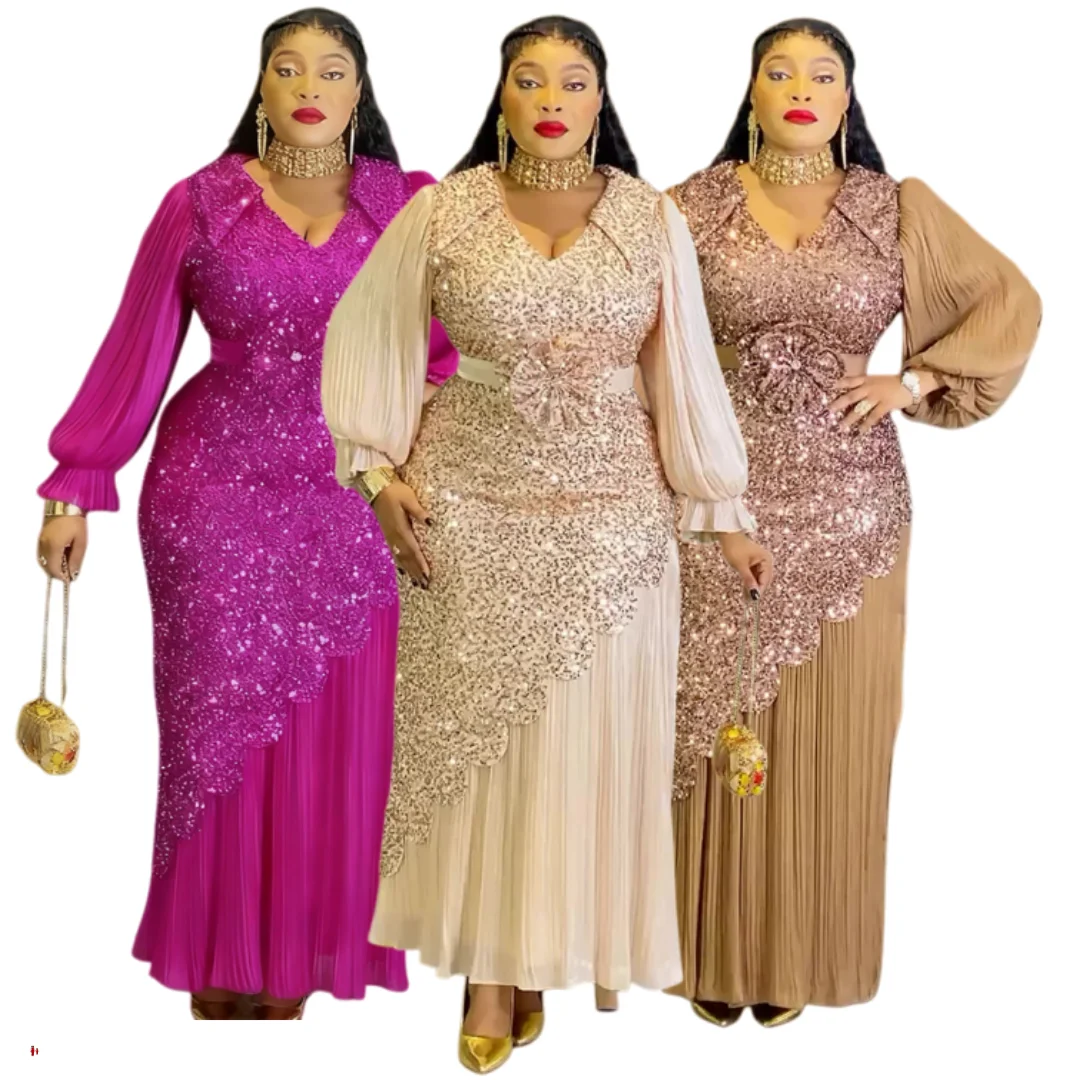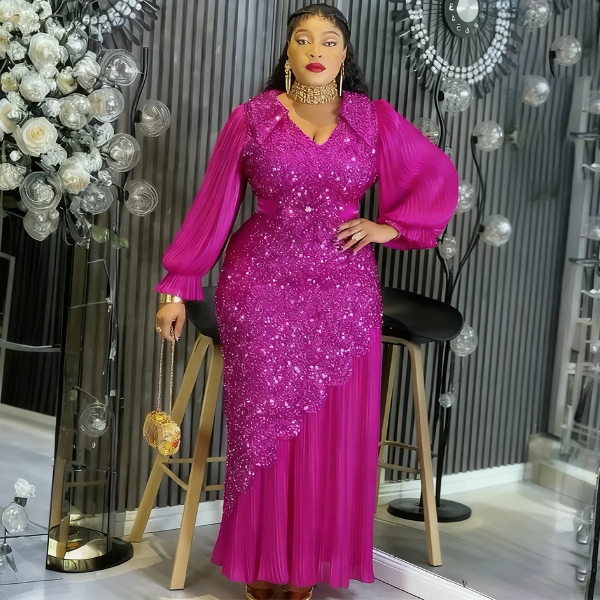 Fashion Luxury Gowns for Women Evening Dresses Heavily Embeddished V-neck Long Sleeve Slim Party Dresses Women African Dresses