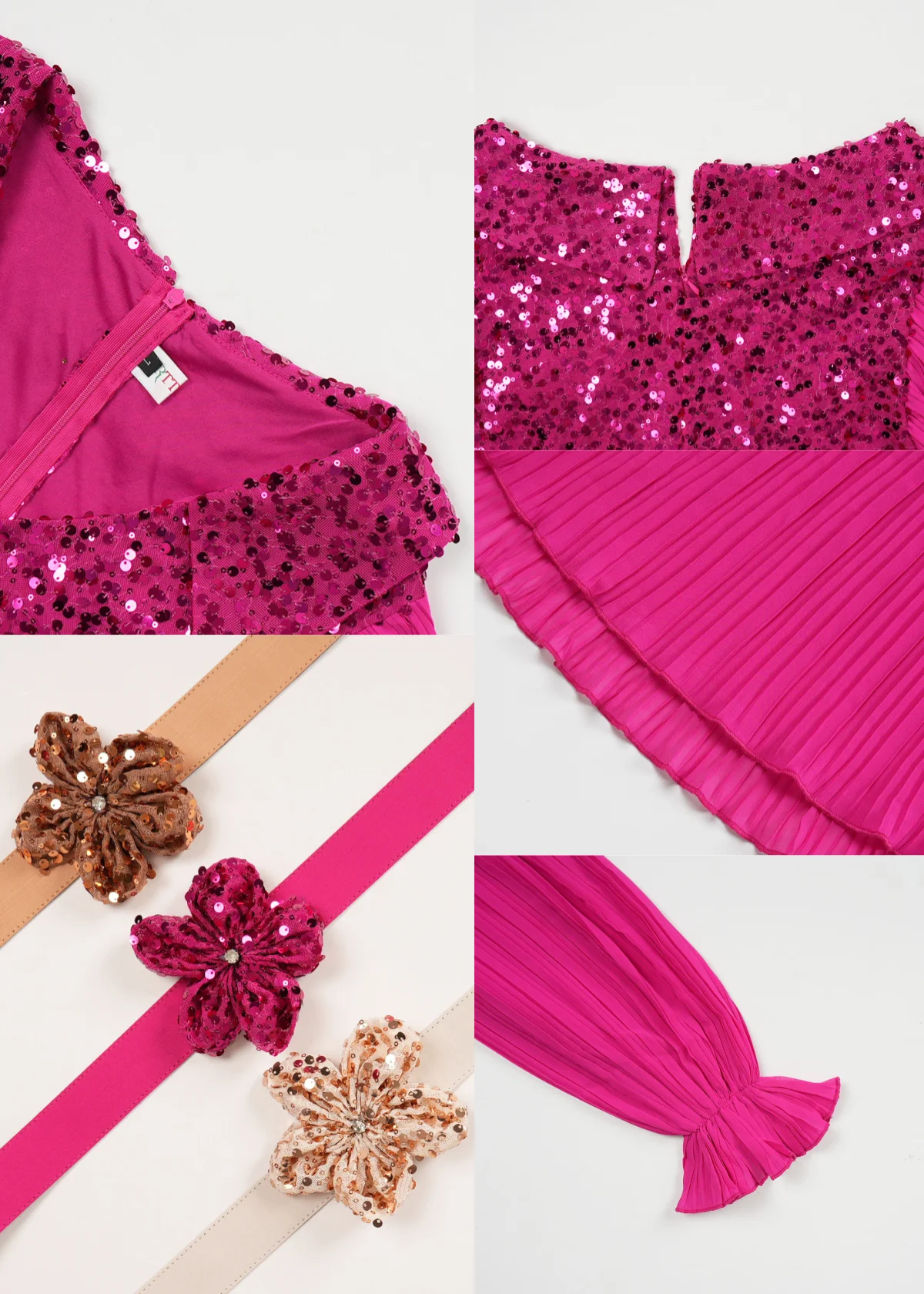 ZYHT 73903 Gemstone Crystal 3D Flower Decoration Ruched One Shoulder High Slit Long Sleeve Maxi Simple Elegant Evening Dress