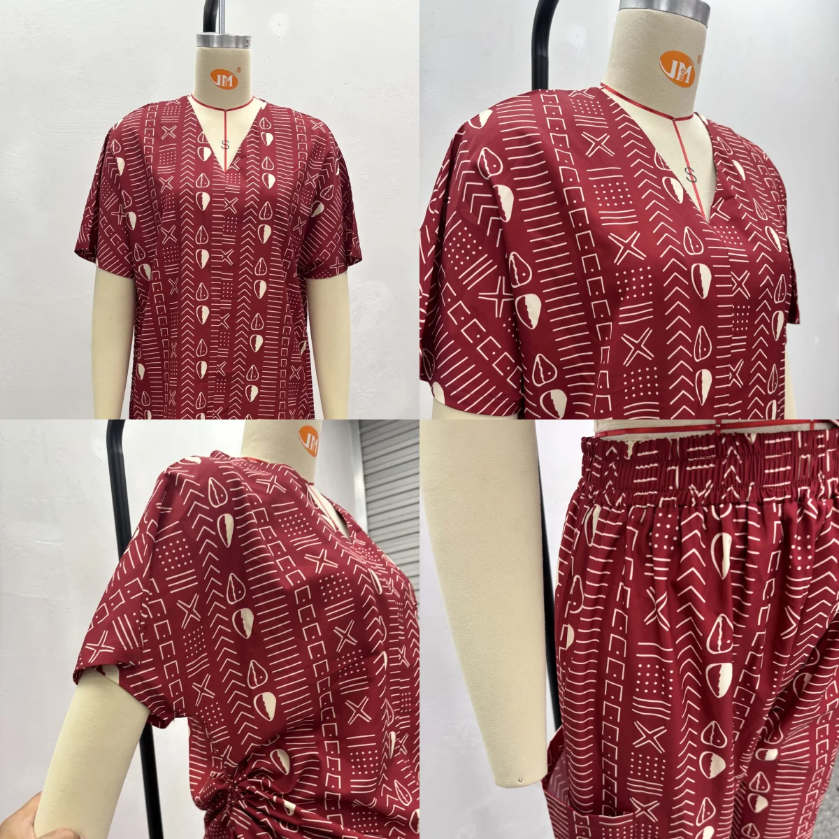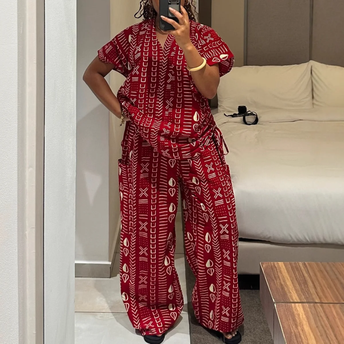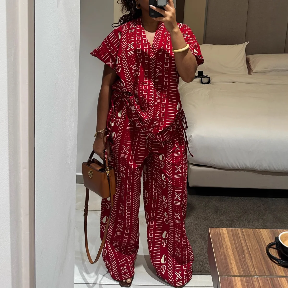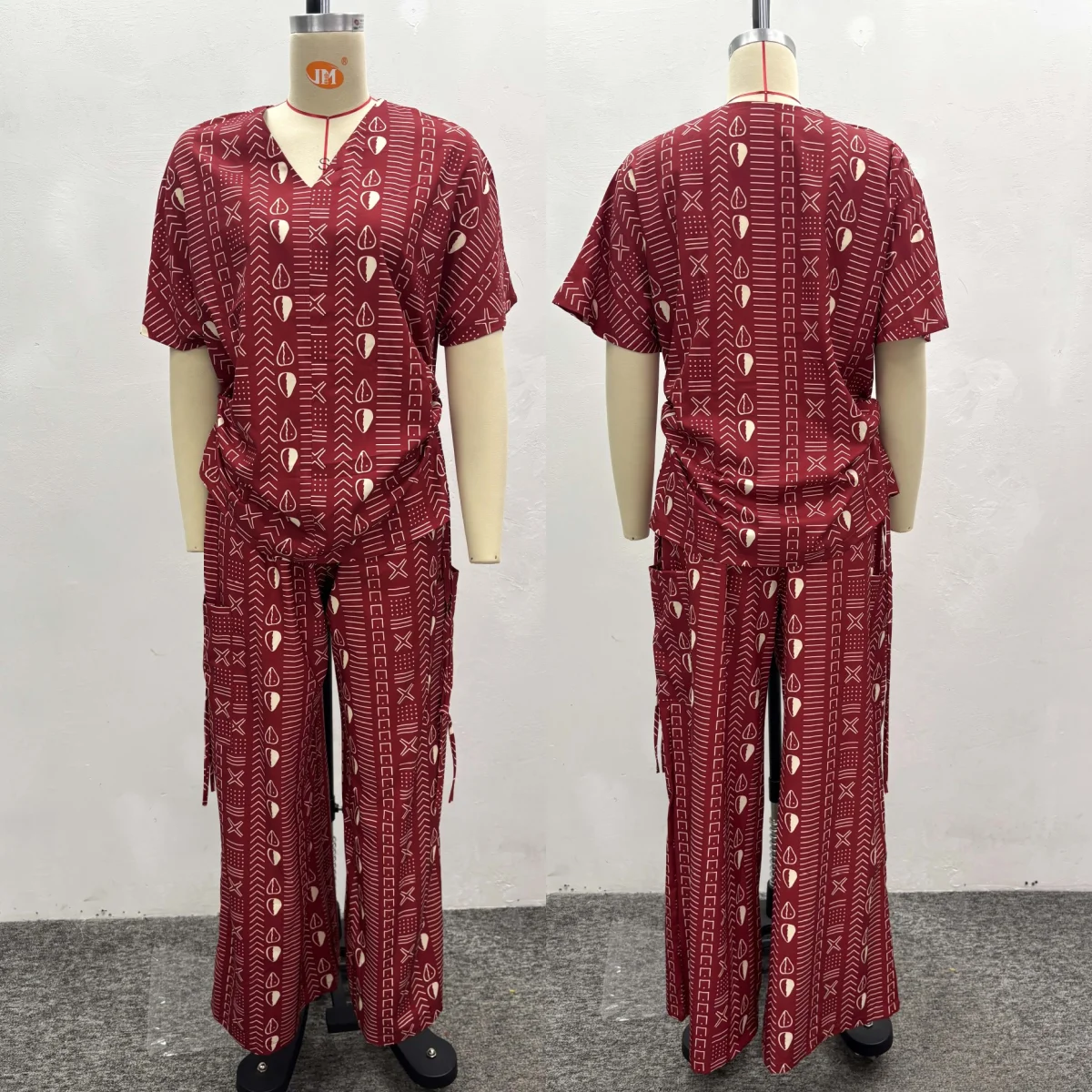 Ladies Casual 2 Pieces Set Sweet Fresh Printed V-Neck Batwing Sleeve High-Waisted Straight-Leg Pants Two-Piece Set for Women