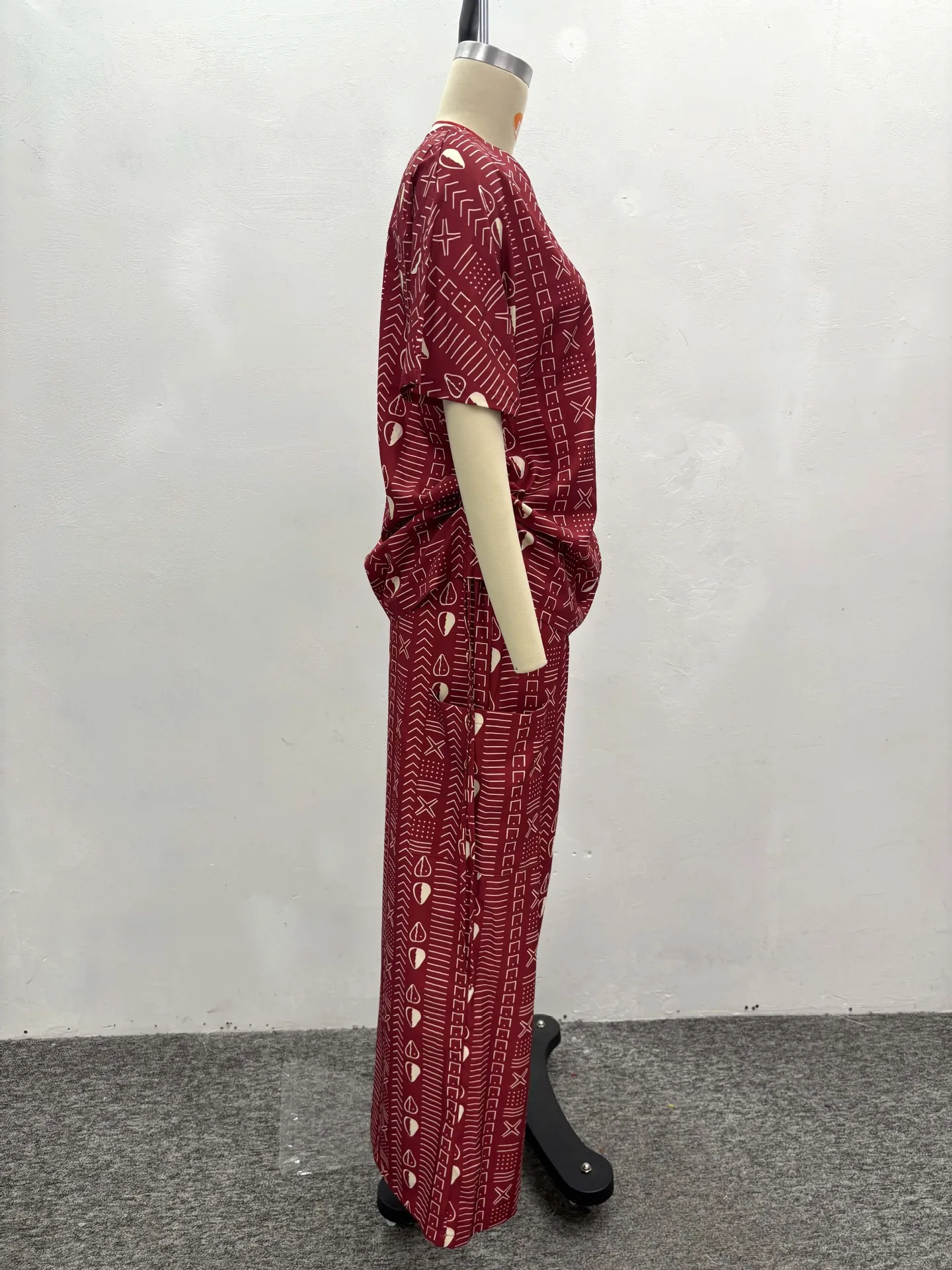 ZYHT 73963 Matte Satin Printed Geometric Pattern Maxi Women Asymmetric One Shoulder Ruched Hem Women Dress