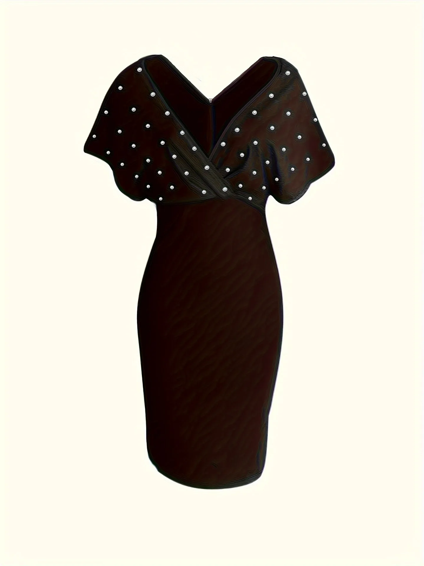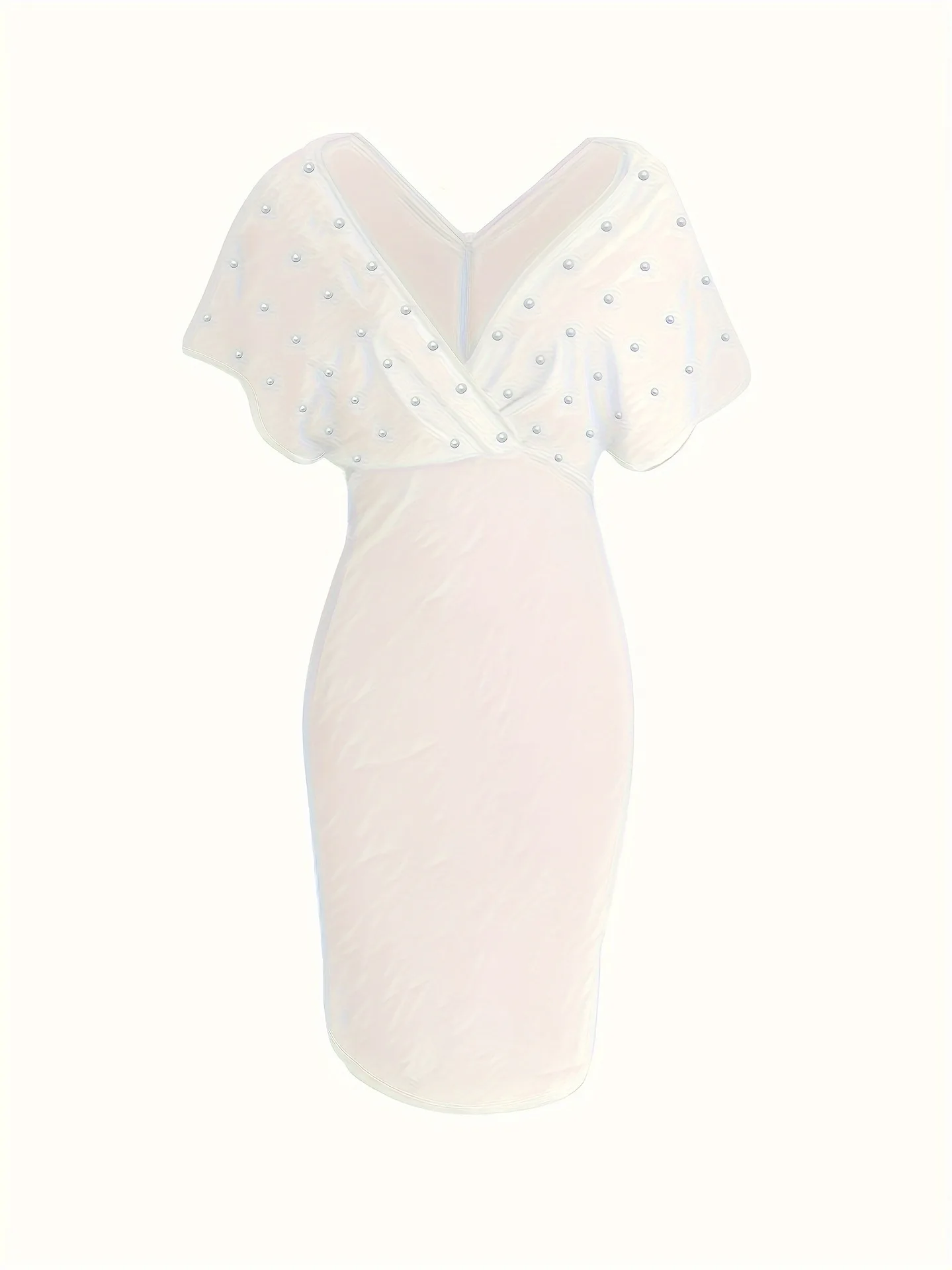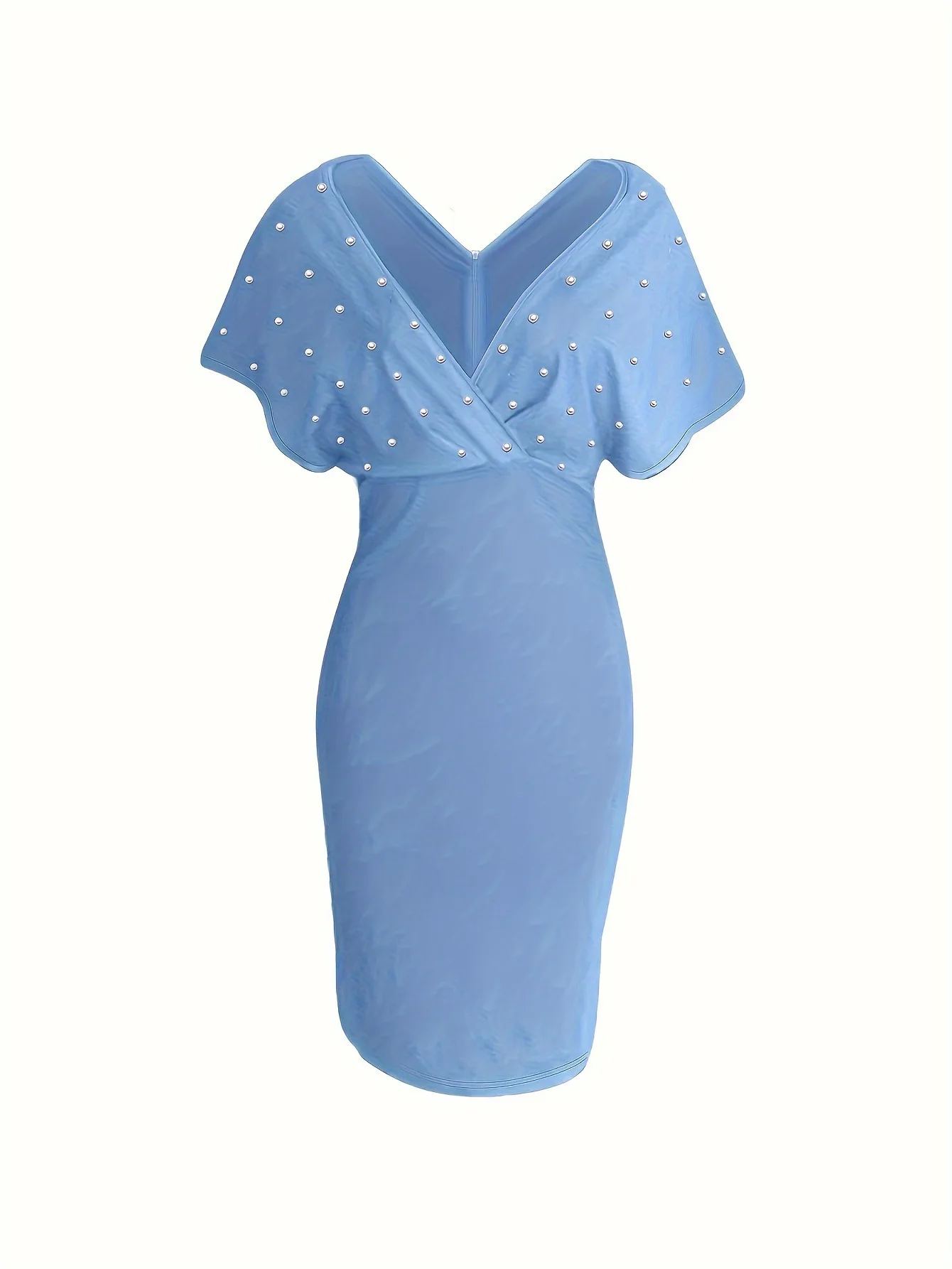New Arrival Fashion Elegant Dresses Women Solid Color Bra V-neck Half Sleeve Studded Beaded Dress for Women