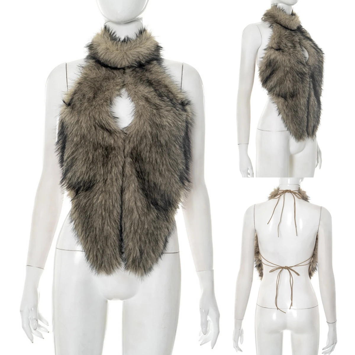 TP269 Boutique Women Top Sweet Sexy Street Wear Blouse Halter Plush Hollow Out Ladies Vest Unique Irregular Backless Tank Tops
