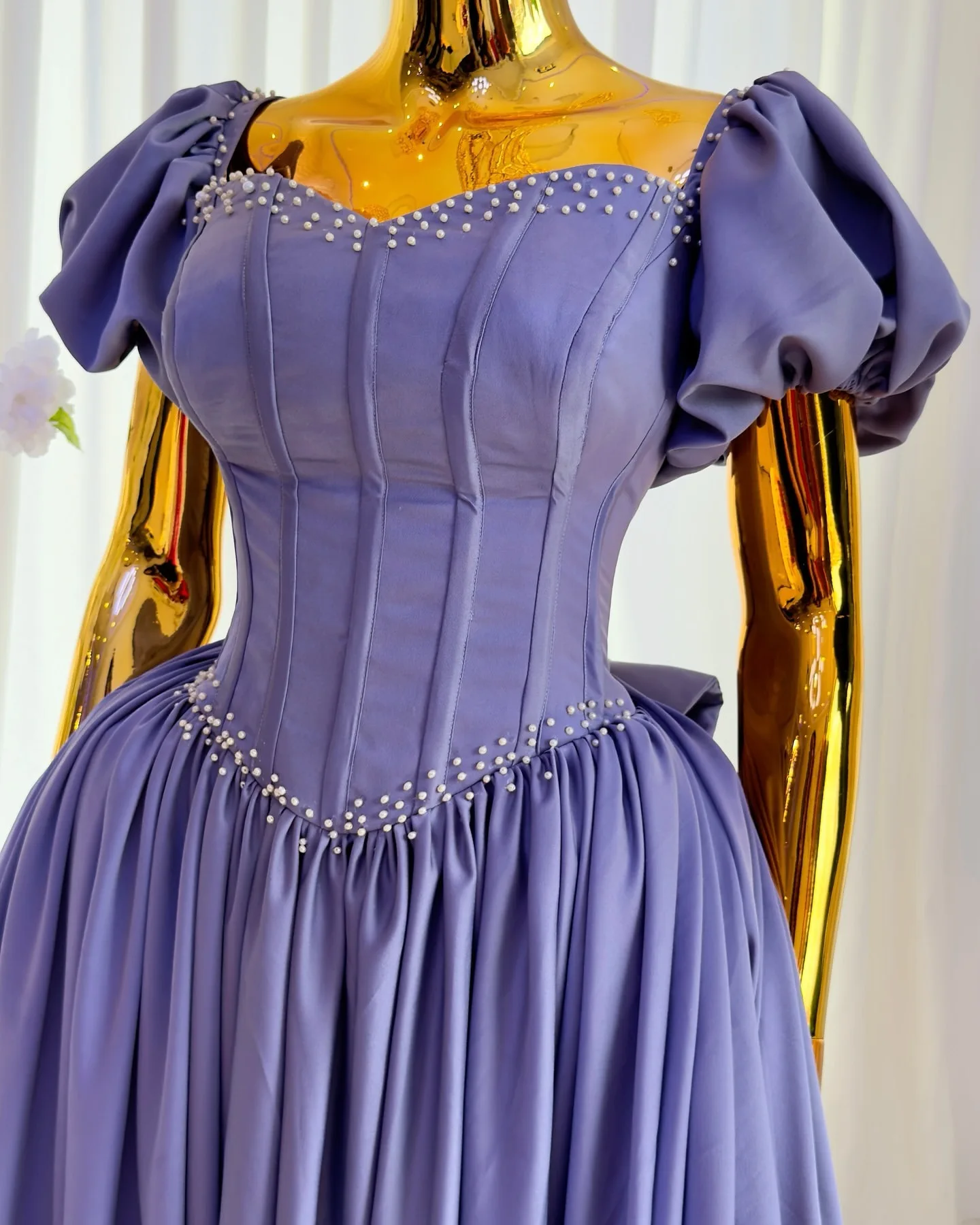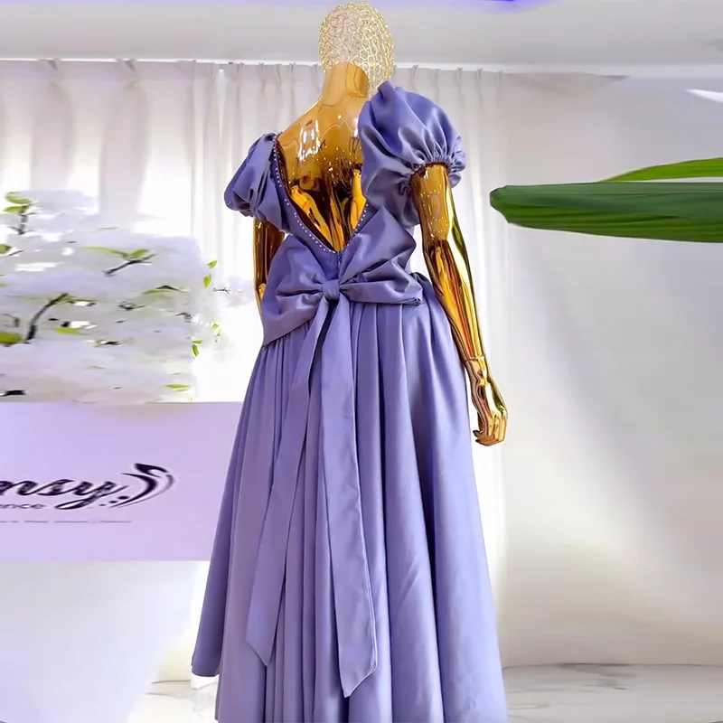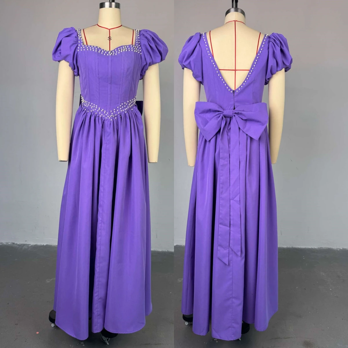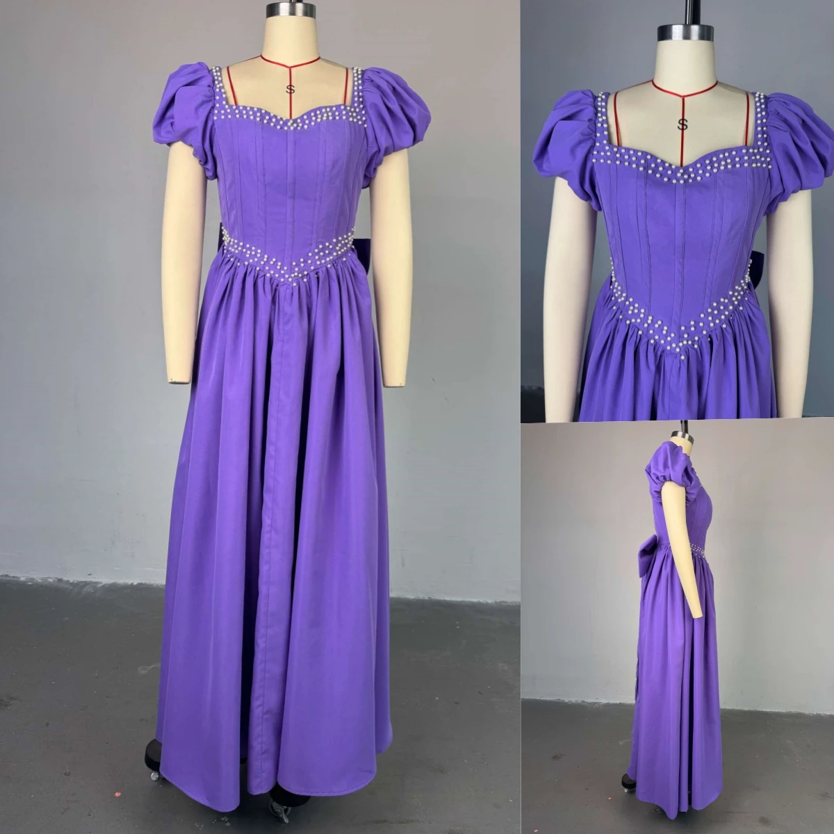 HK9050 Fashion Elegant Clothes Boutique Sexy Bubble Short Sleeve Square Neck A-line Pleated Long Dress Casual Maxi Dresses Women