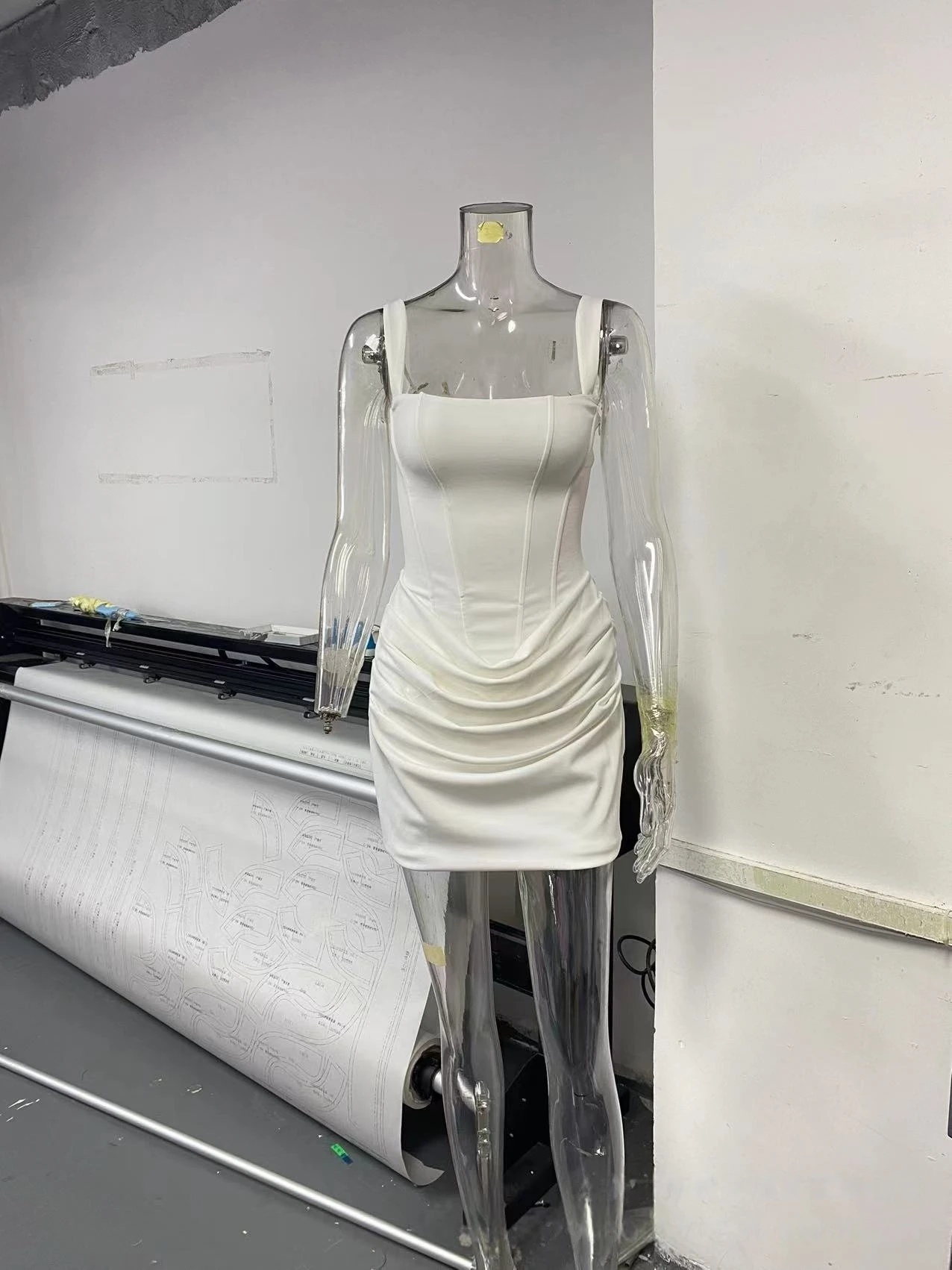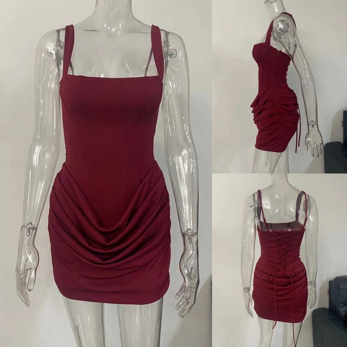M188 Fashion Ladies Clothing Boutique Sexy Street Wear Sleeveless Party Mini Dress Square Neck Pleated Evening Dresses for Women