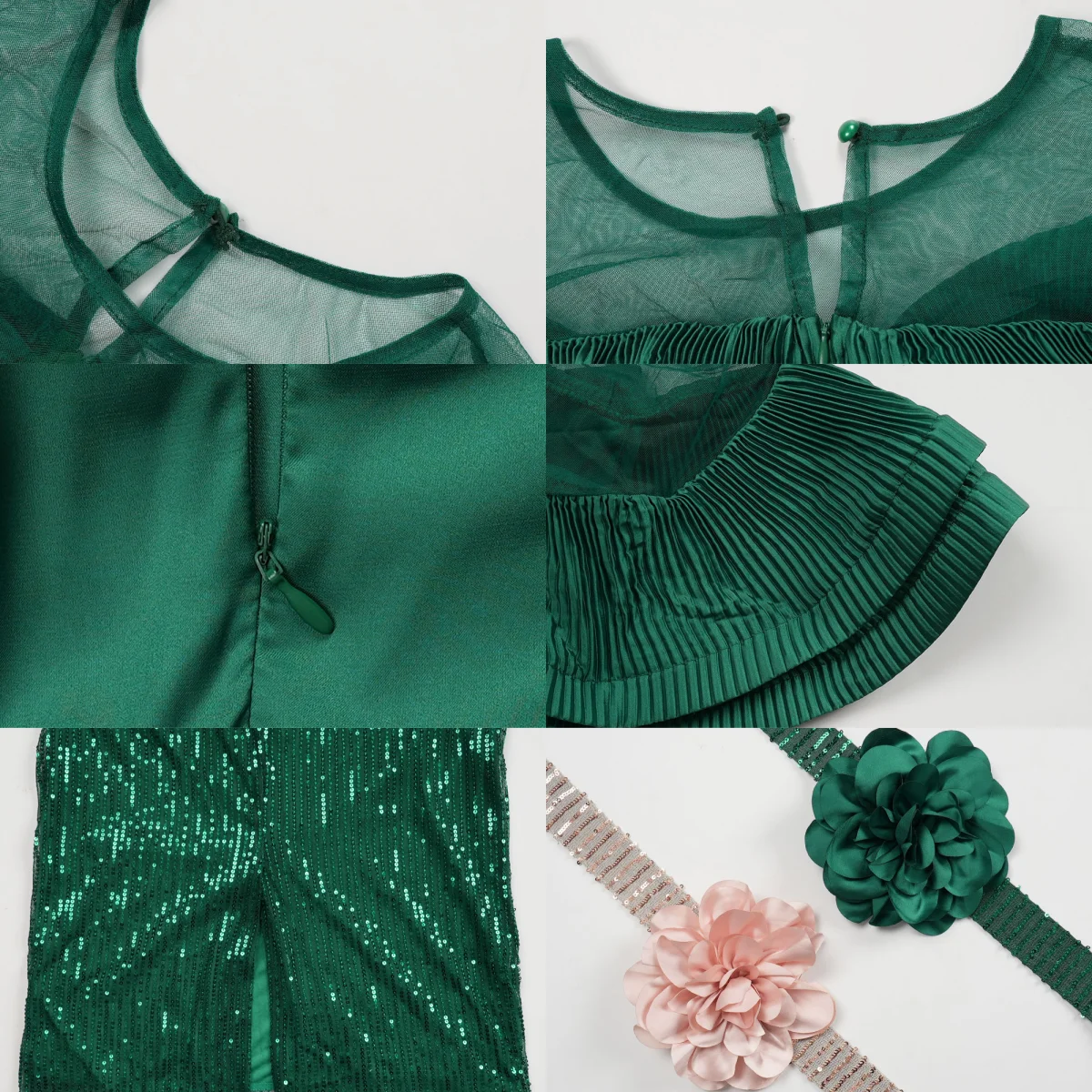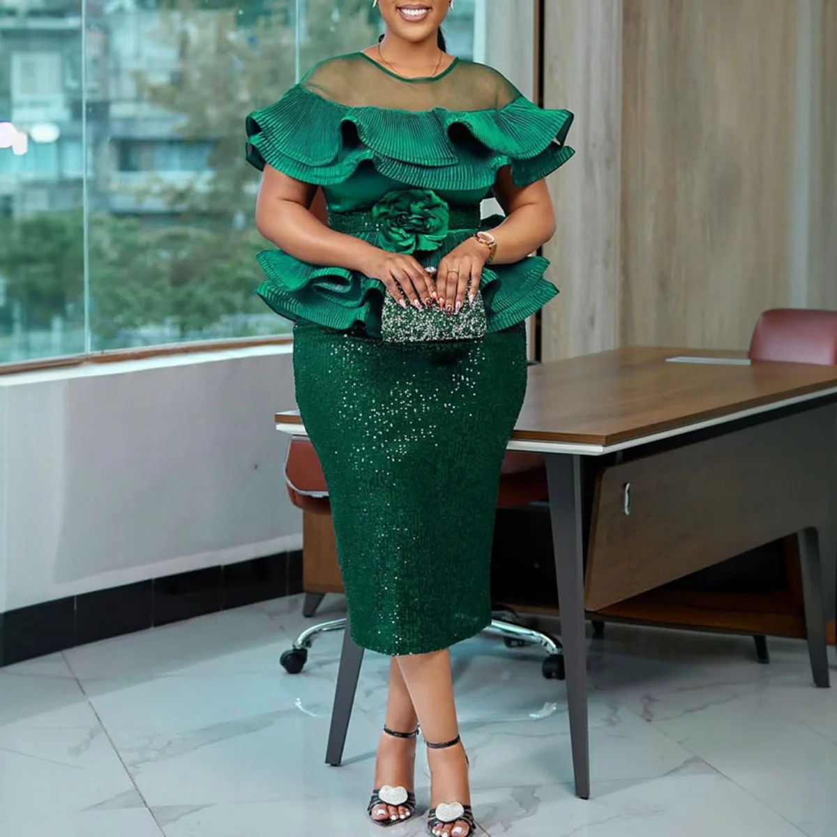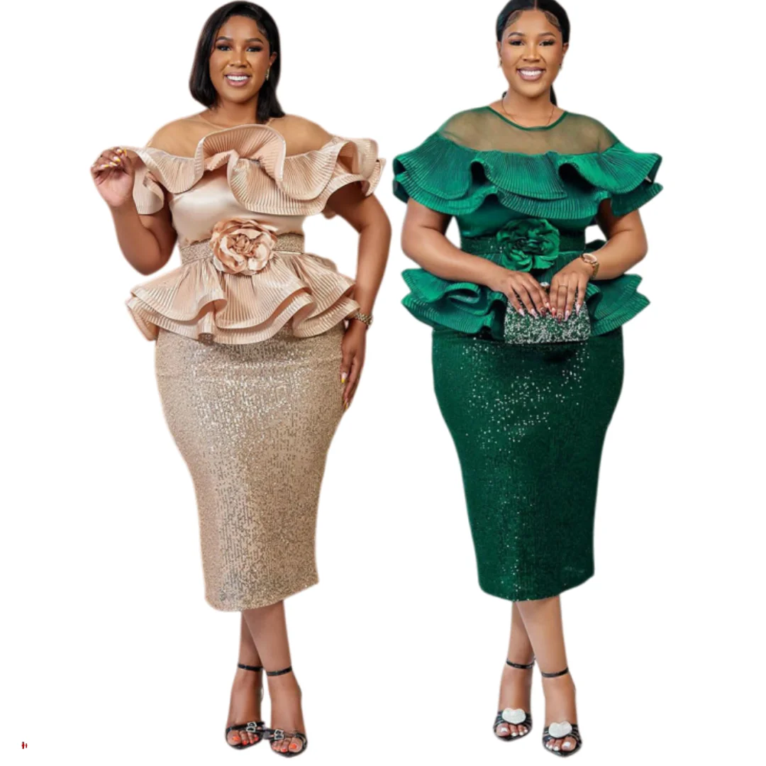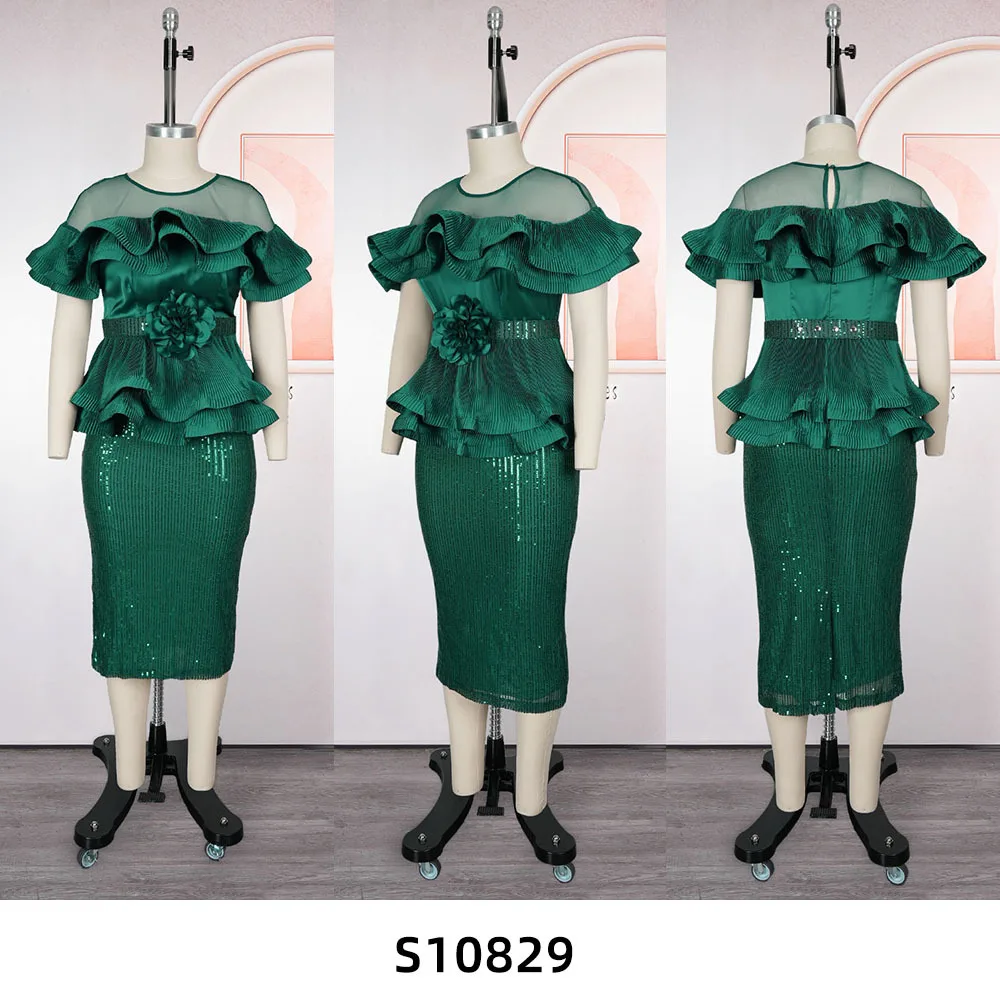S10829 Luxury Gowns for Women Evening Dresses Sequined Heavily Embeddished O-neck Ruffle Short Sleeve Party Dresses for Ladies