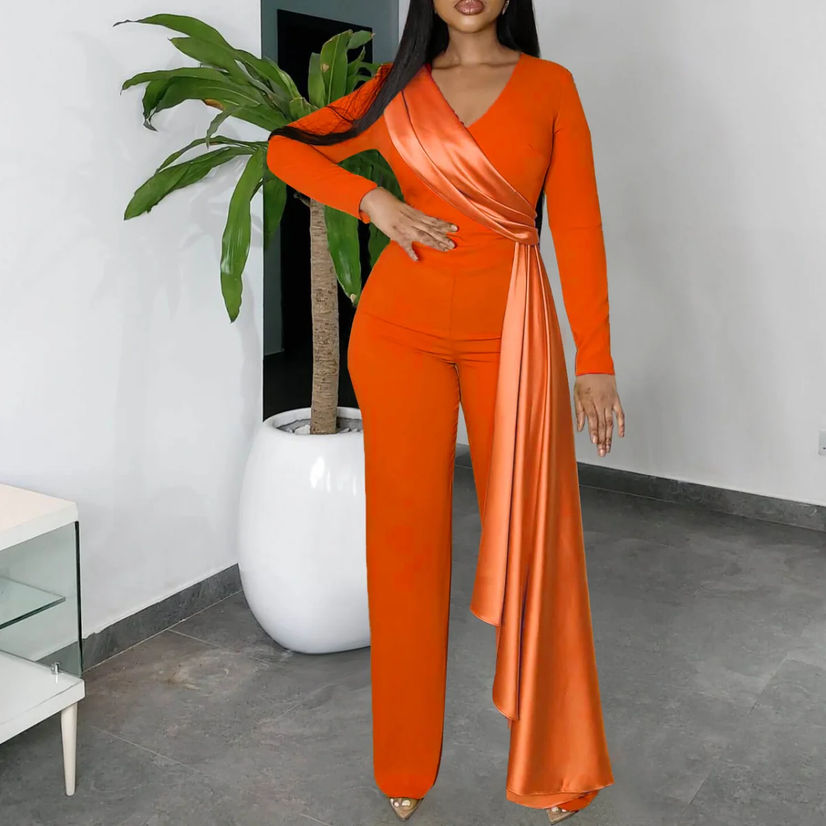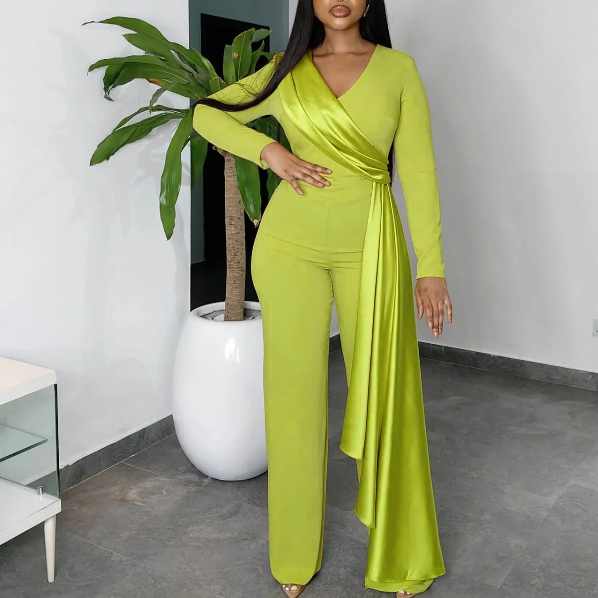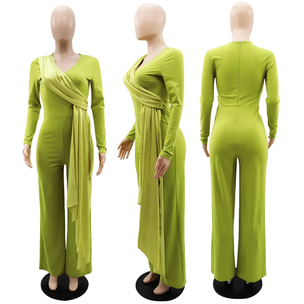 Cy9007 Fashion Ladies Elegant Slim-fit Jumpsuit Solid Color Jumpsuit Slim Fit Single Shoulder Wide Leg Pants for Women