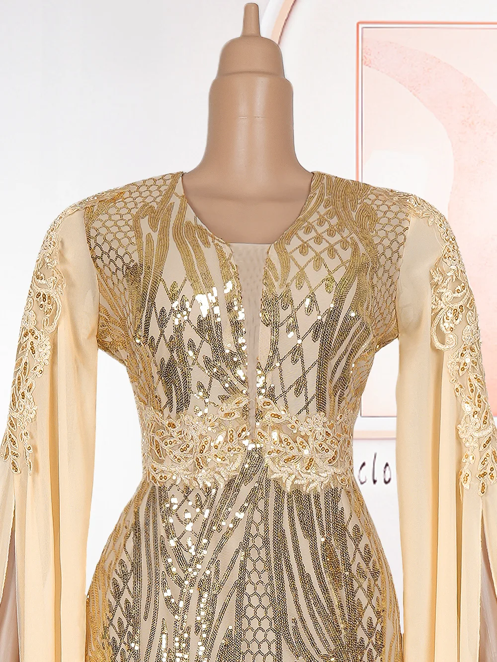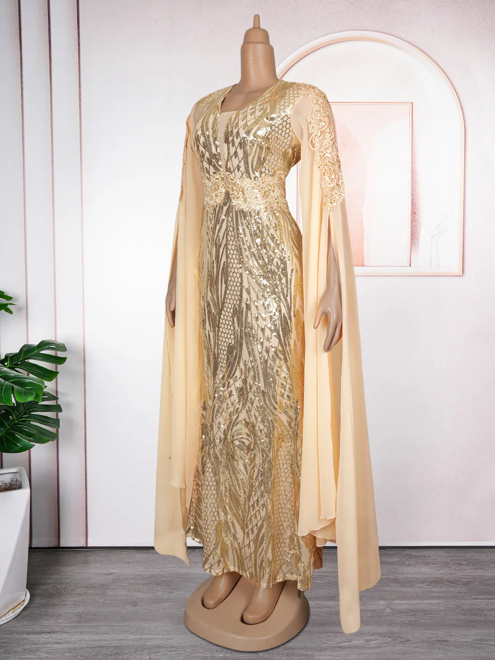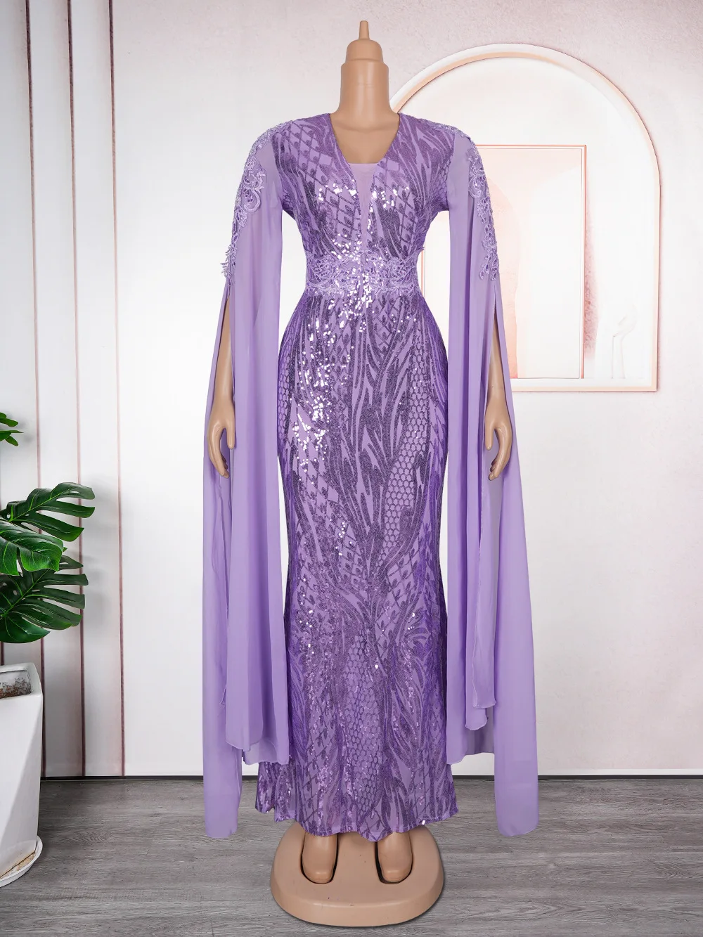 Trendy Plus Size Women's Evening Dresses Elegant V-neck Cape Sleeve Long Church Gowns Sequin Party Dresses for Women