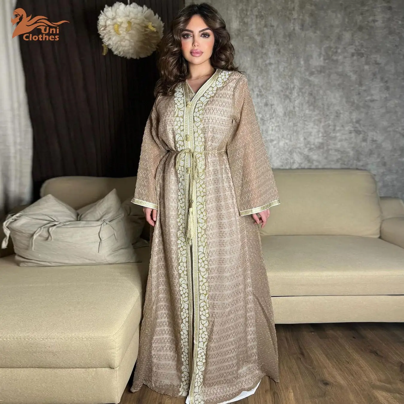 2024 New Fashionable Sweater Cardigan Robe With Side Pockets for Women Long Sleeve Muslim Dress for Middle East Dubai Abaya