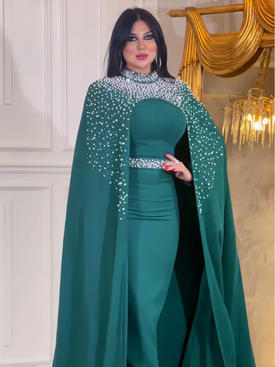 ZYHT 73902 Dark Green Blue Long Sleeve Simple Elegant Evening Dress Customize High End Women Clothing Manufacturer