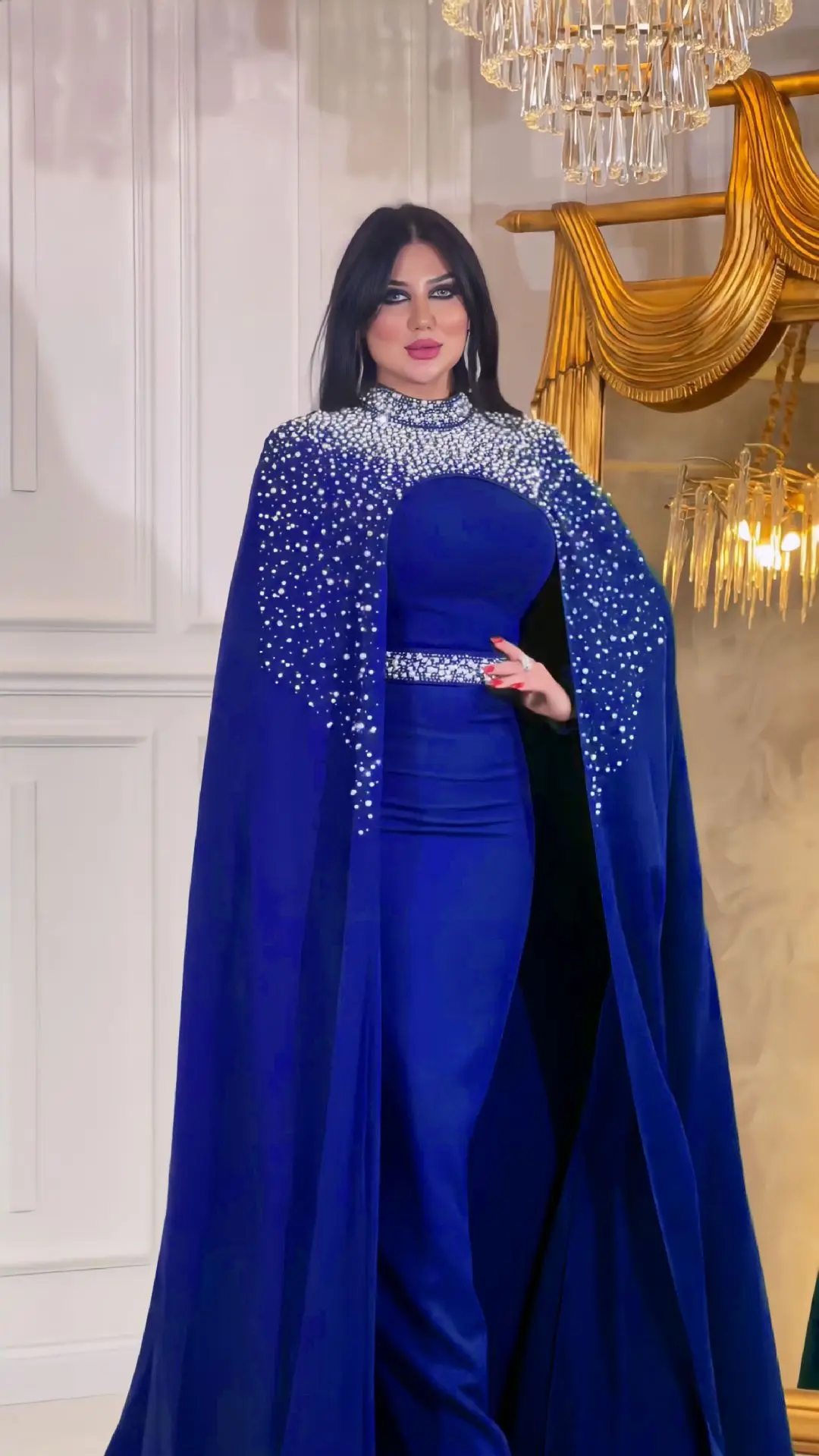 ZYHT 73571 Custom Elegant V-Neck Cape Sleeve Dresses Trendy Straight Yellow Maxi Party Gowns Modest Evening Dress for Women