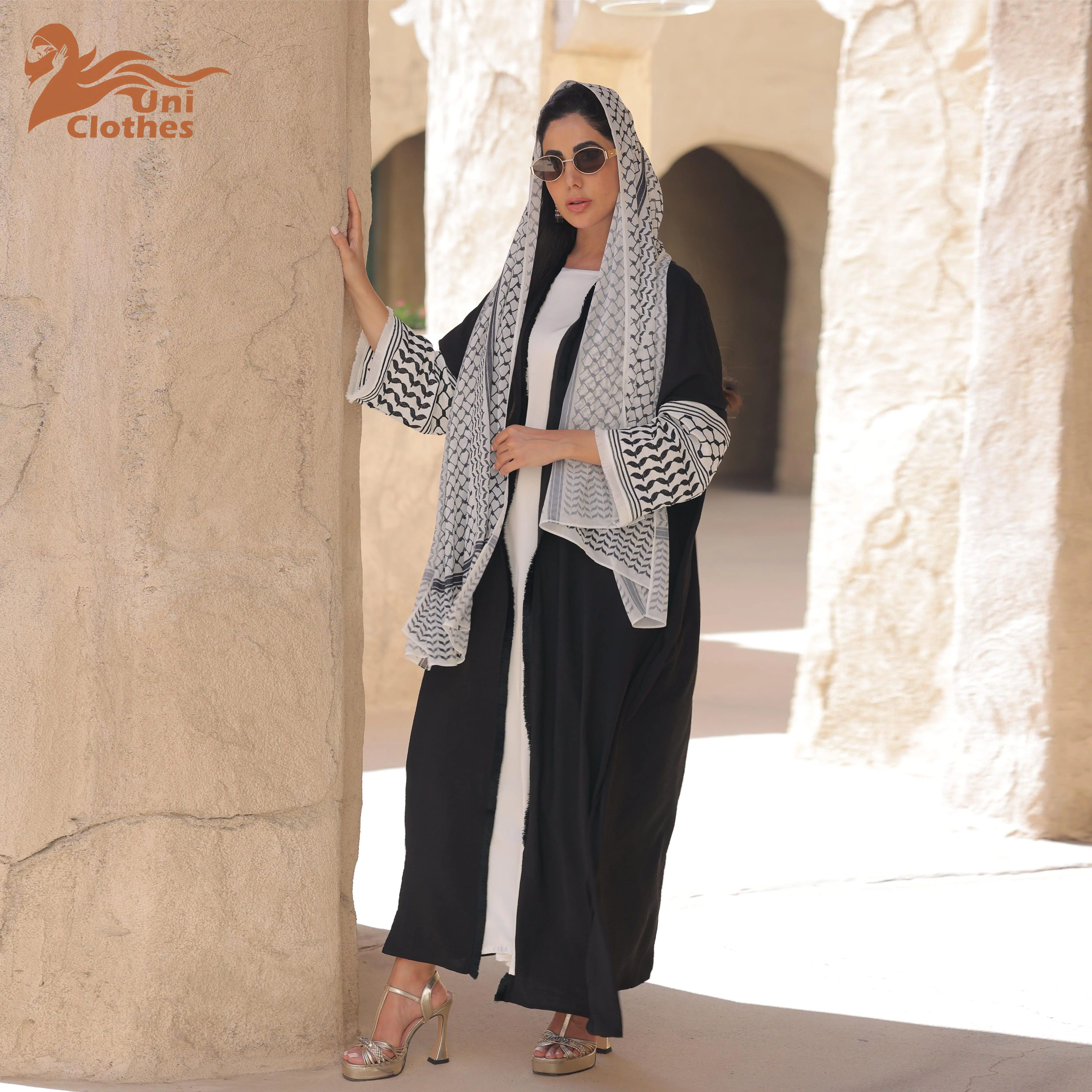 LR763 New Stylish Solid Plus Size Open Abaya Maxi Dress Middle Eastern Kaftan Abaya
