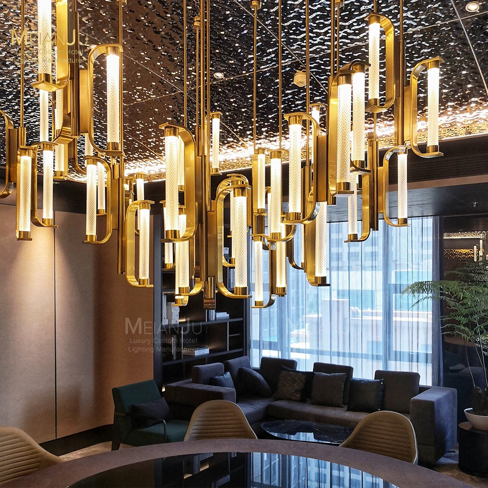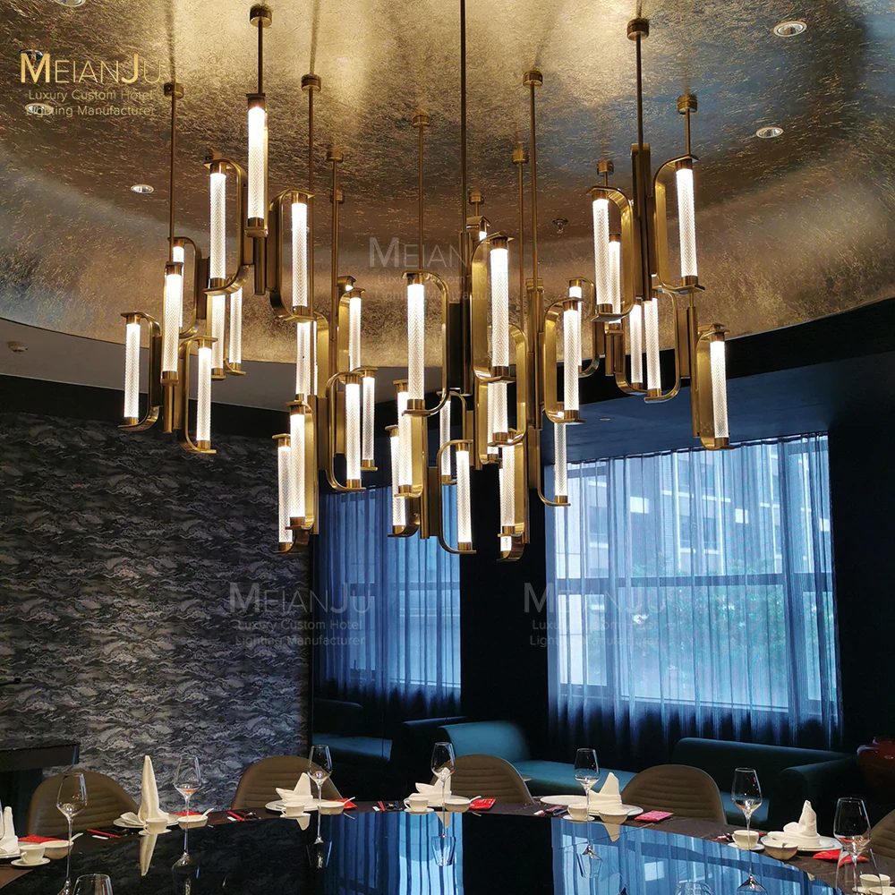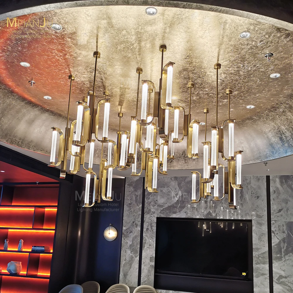 Wedding Hall Chandelier Hotel Hanging Pendant Light Customized Amber Crystal Chandelier Lighting for Lobby