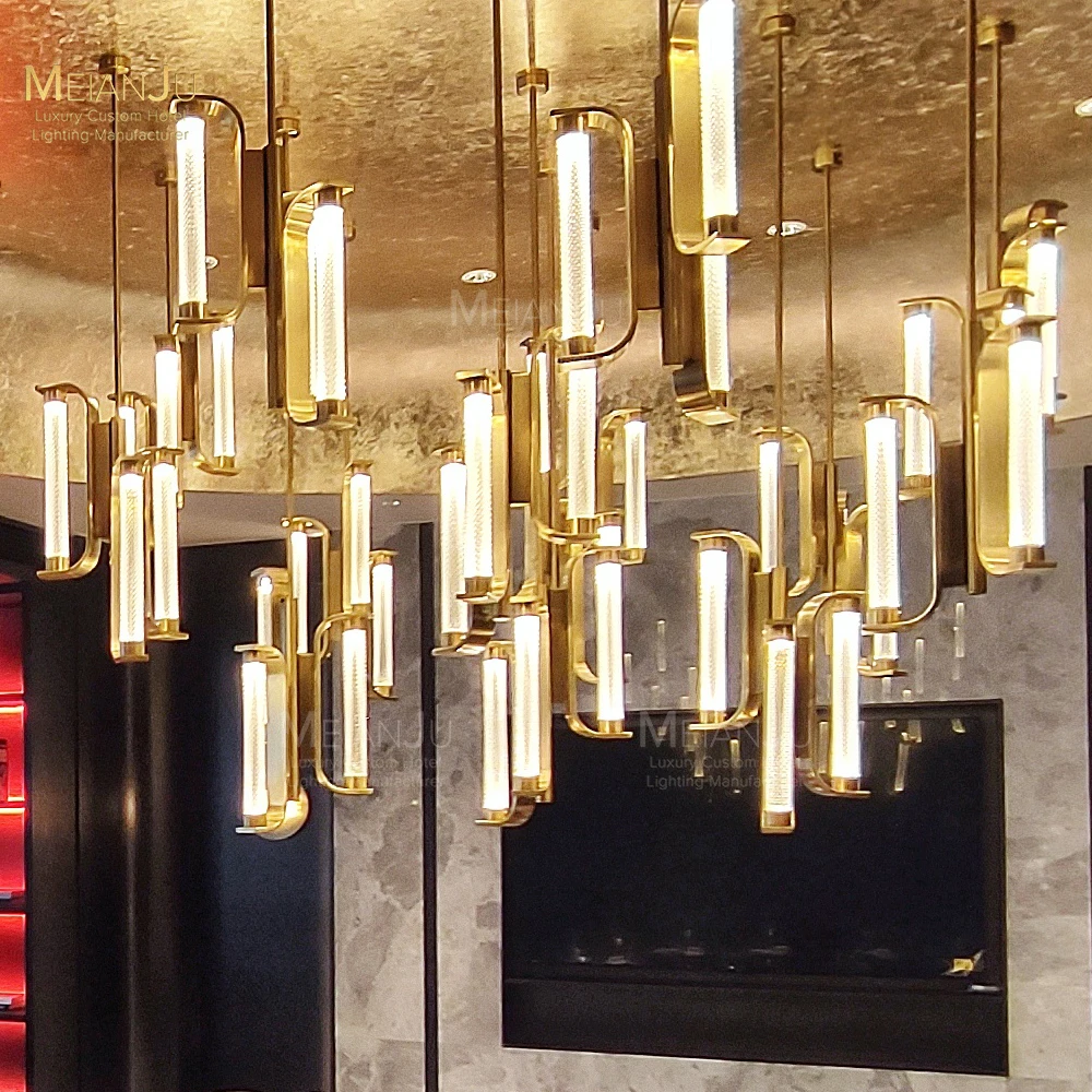 Zeal Lighting Hotel Lobby Hall Decorative Large Hanging Light Customized Long Gold Crystal Elegant Chandelier