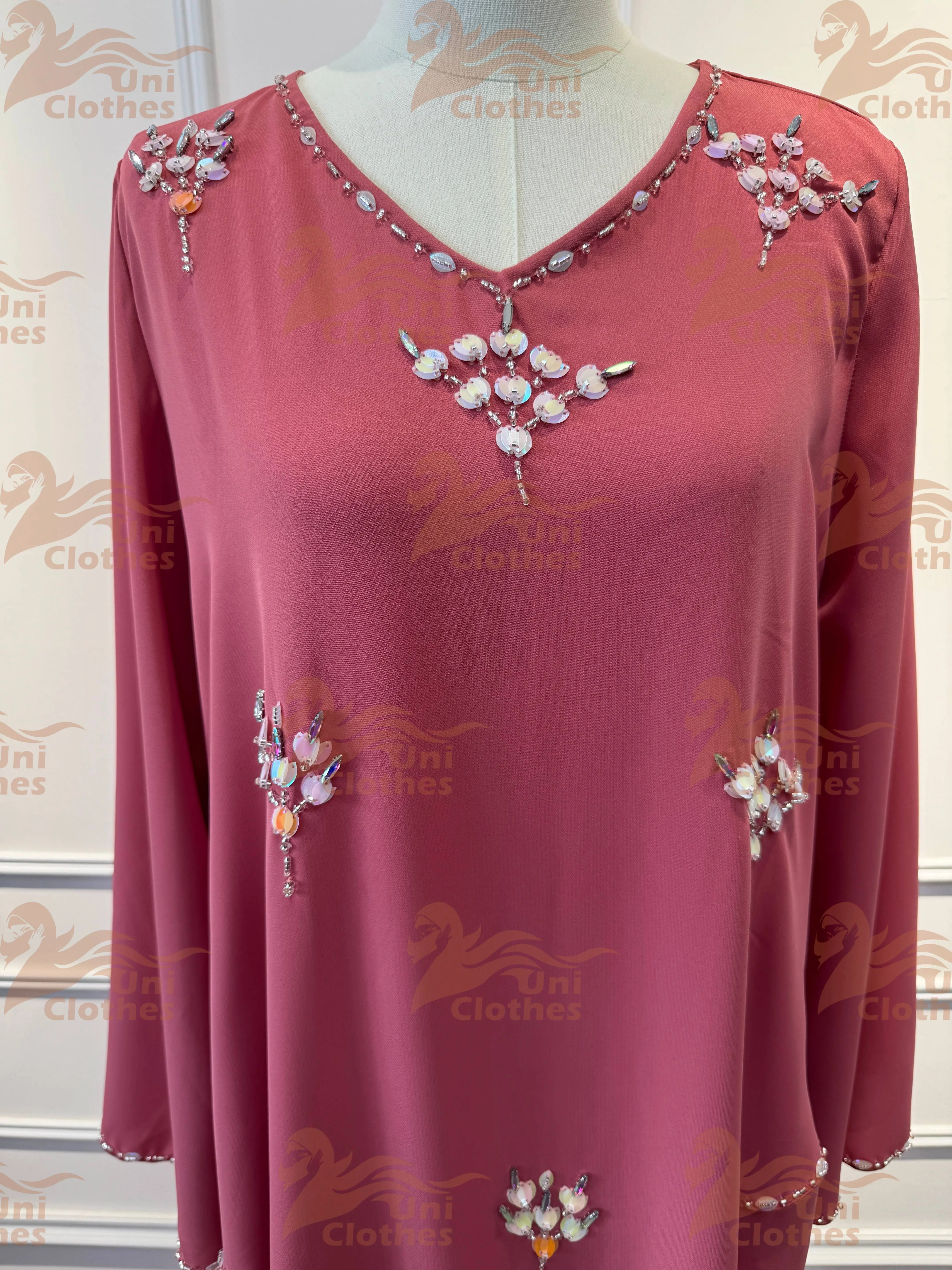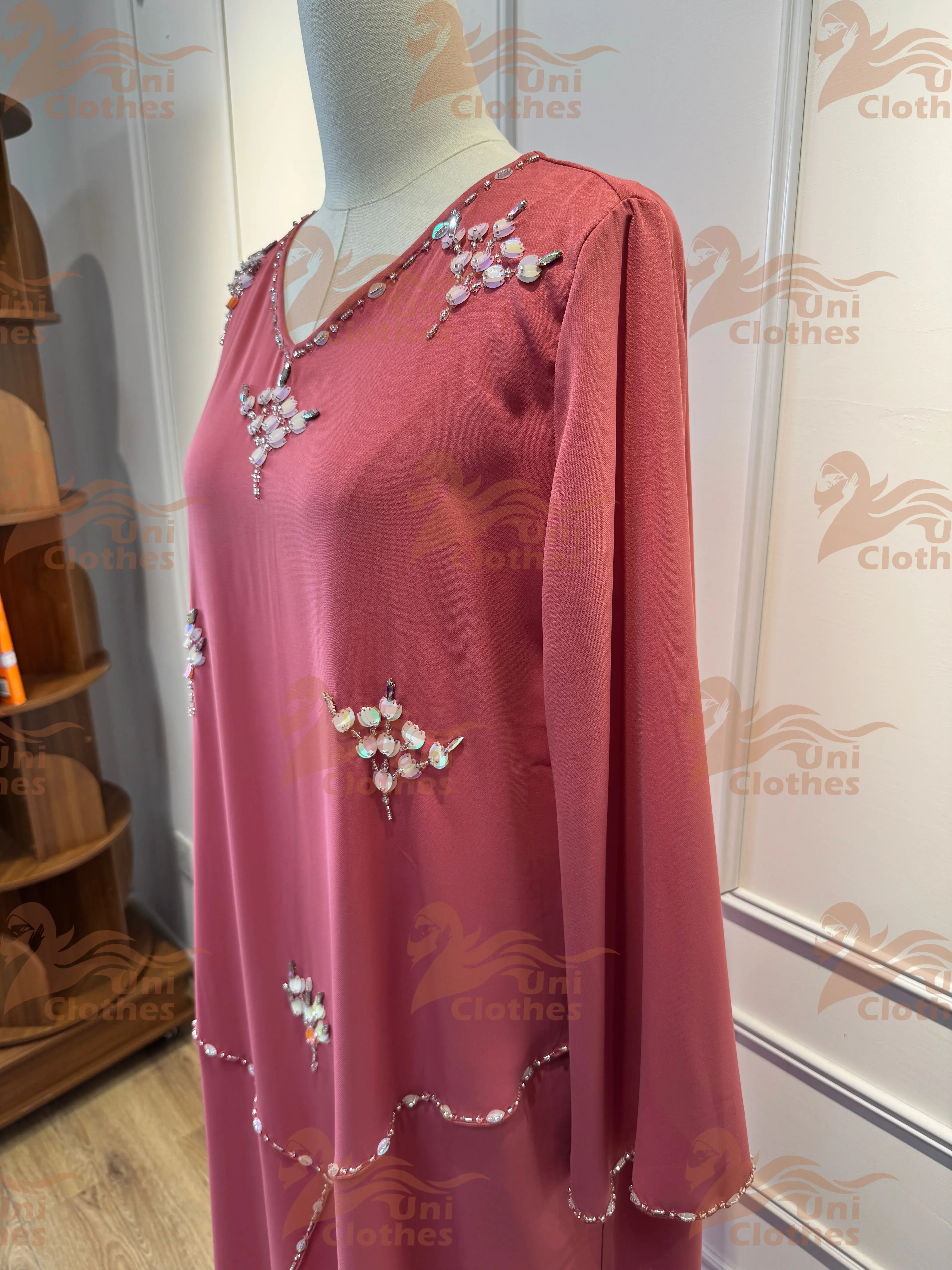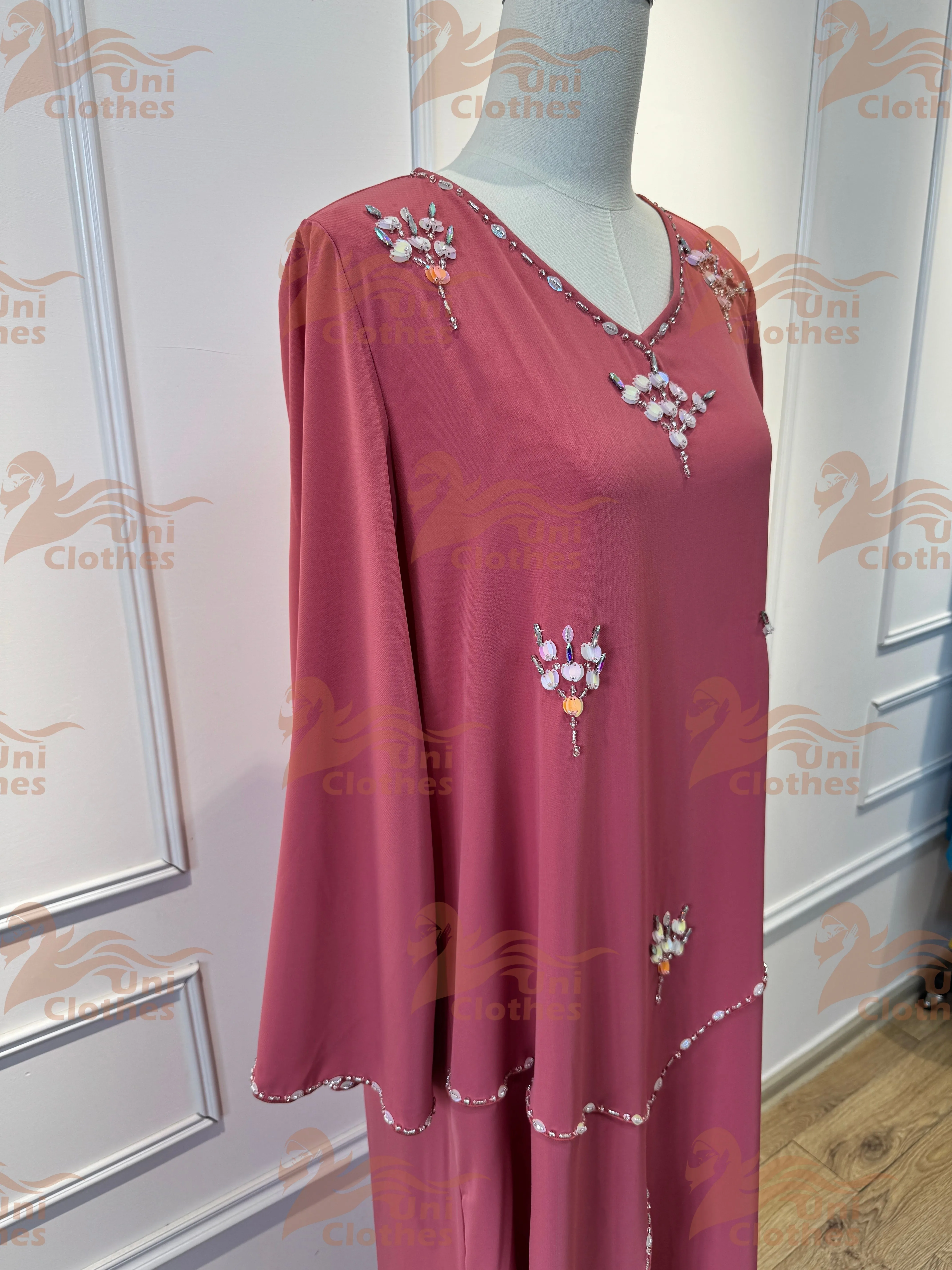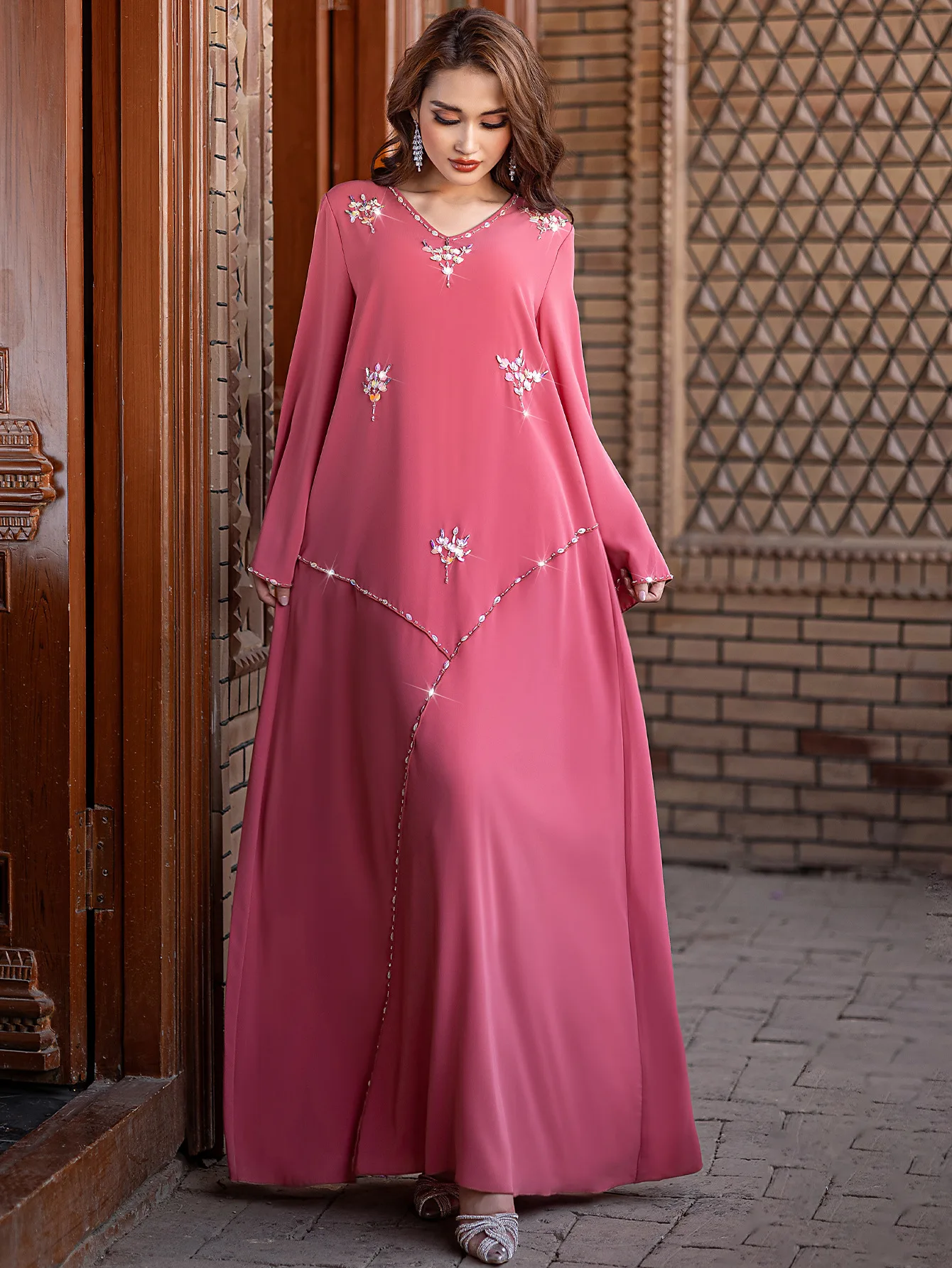 Islamic Clothing Women's Dresses Rhinestone Beaded Lace Sleeve Turkey Dubai Abaya Women Muslim Dress Party Wear Long Dress