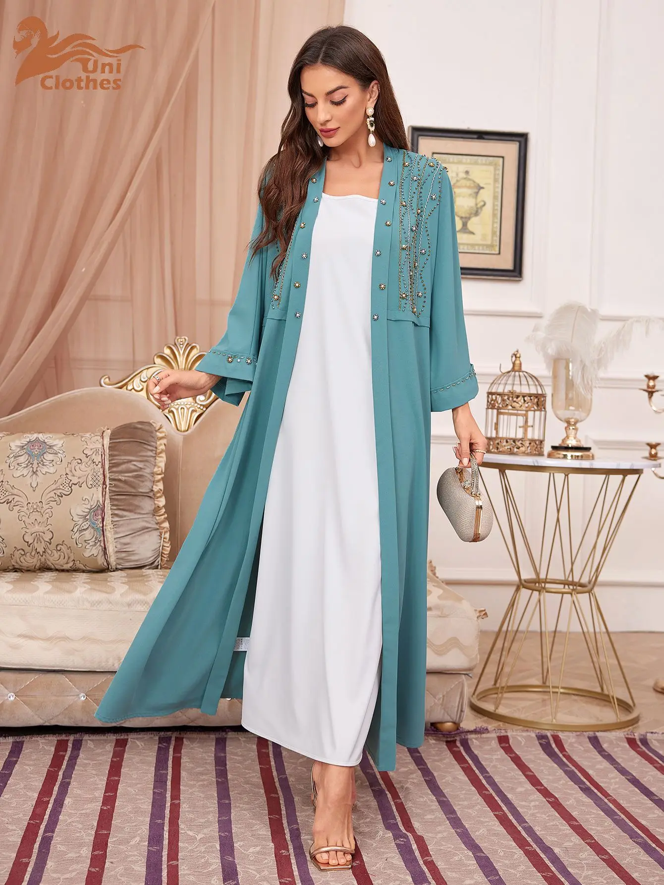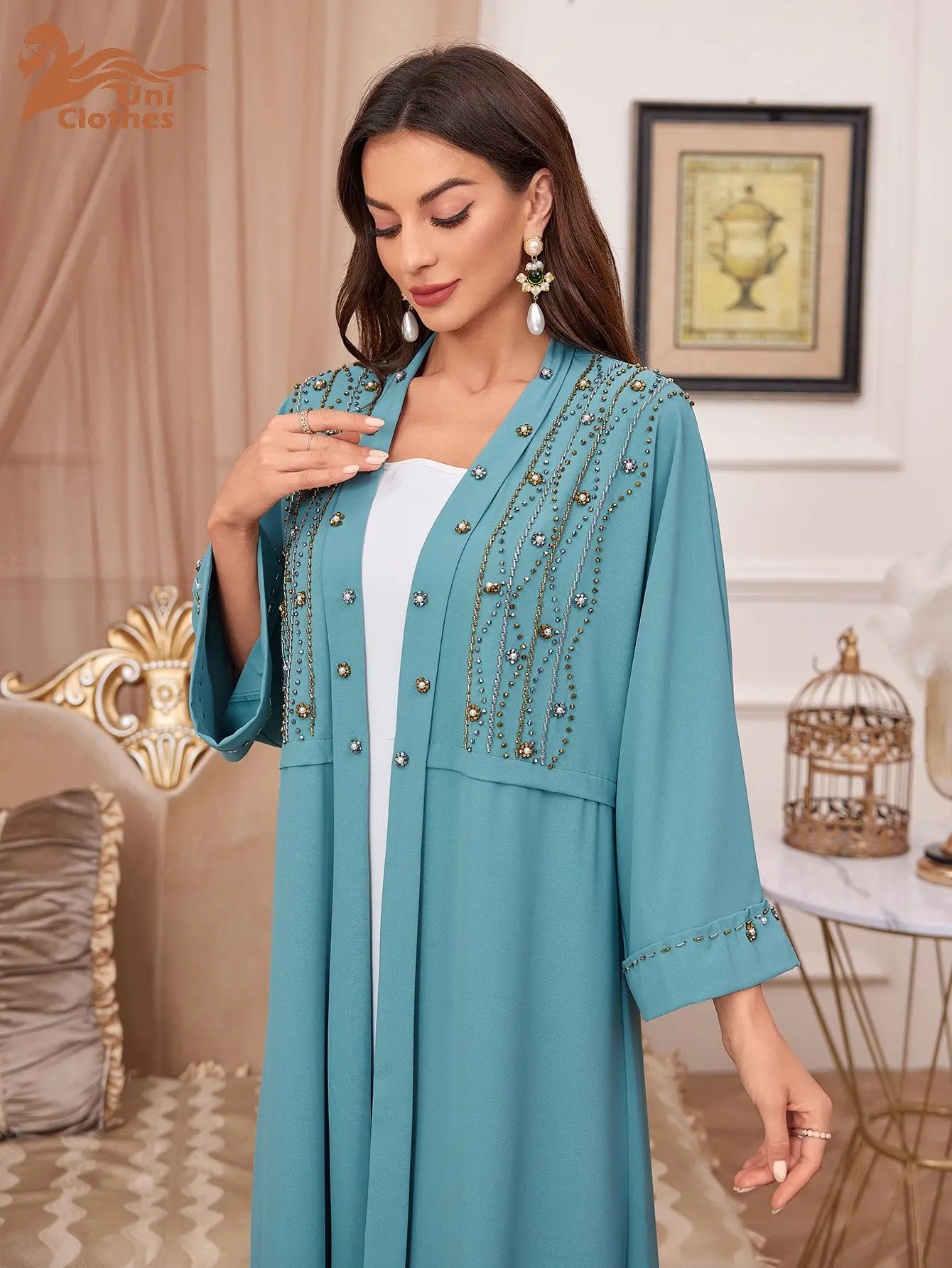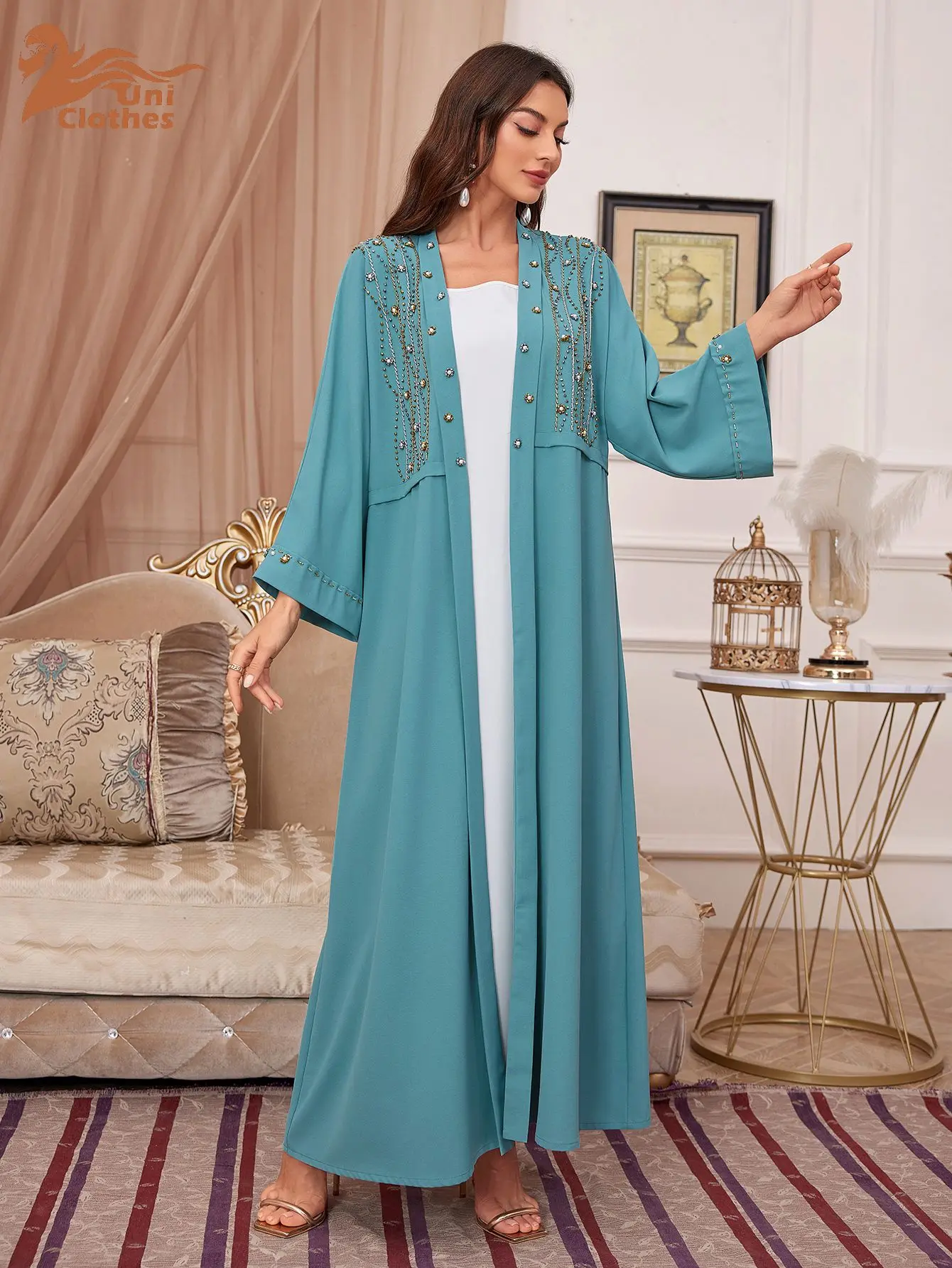 UNI502 Luxury Open Kimono Abaya Dubai Modest Fashion Dresses Islamic Clothing Abayas for Women Muslim