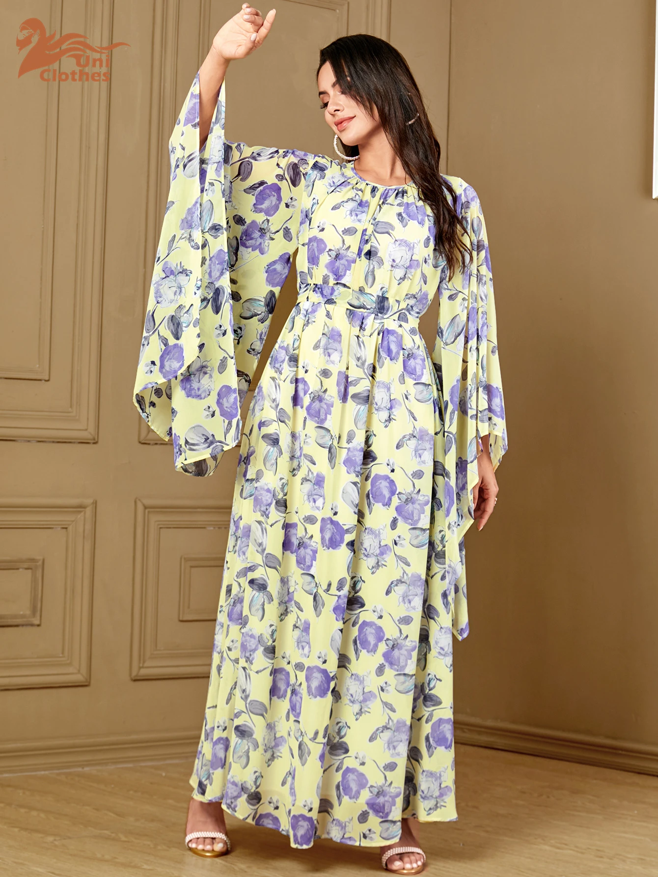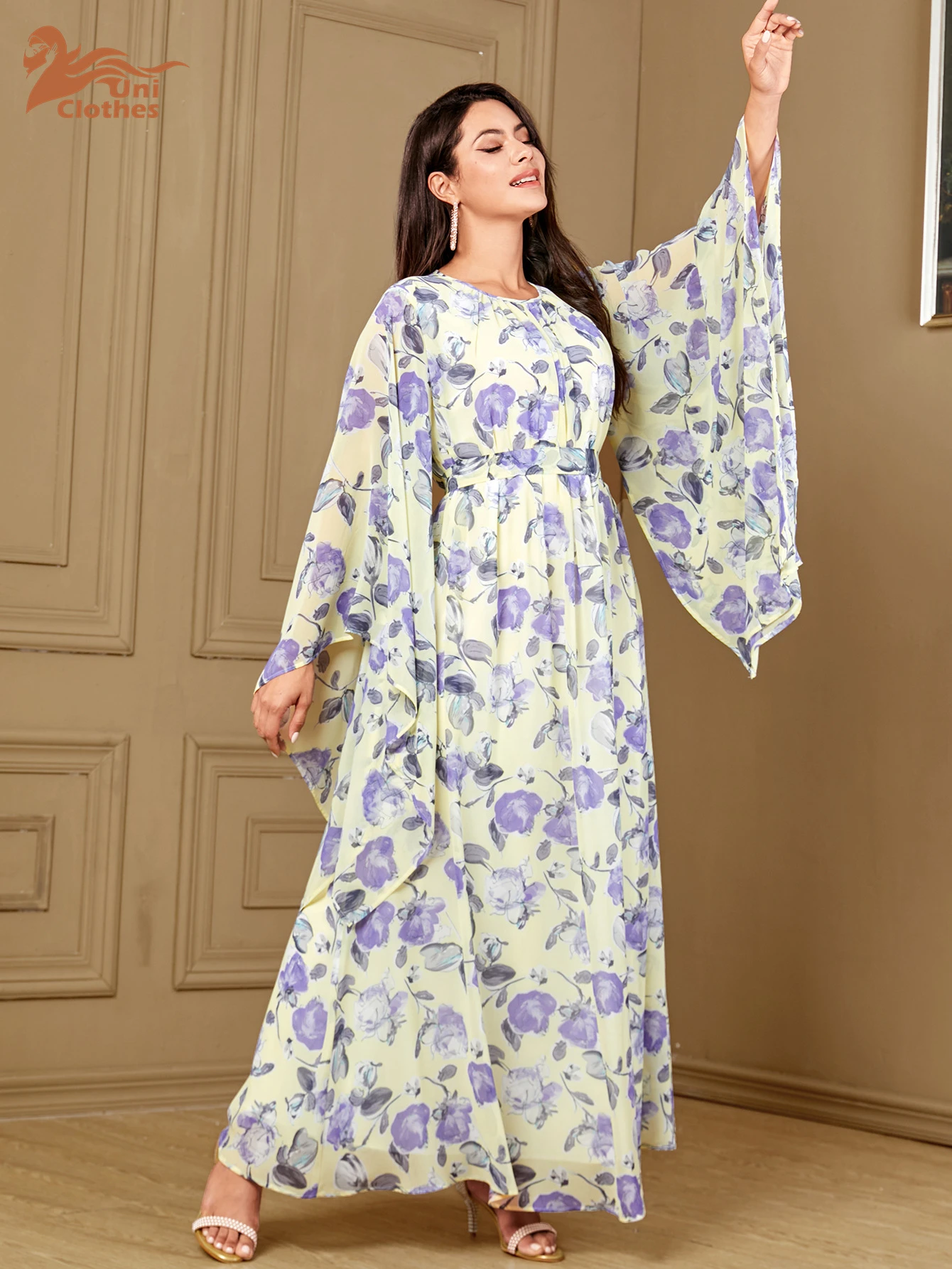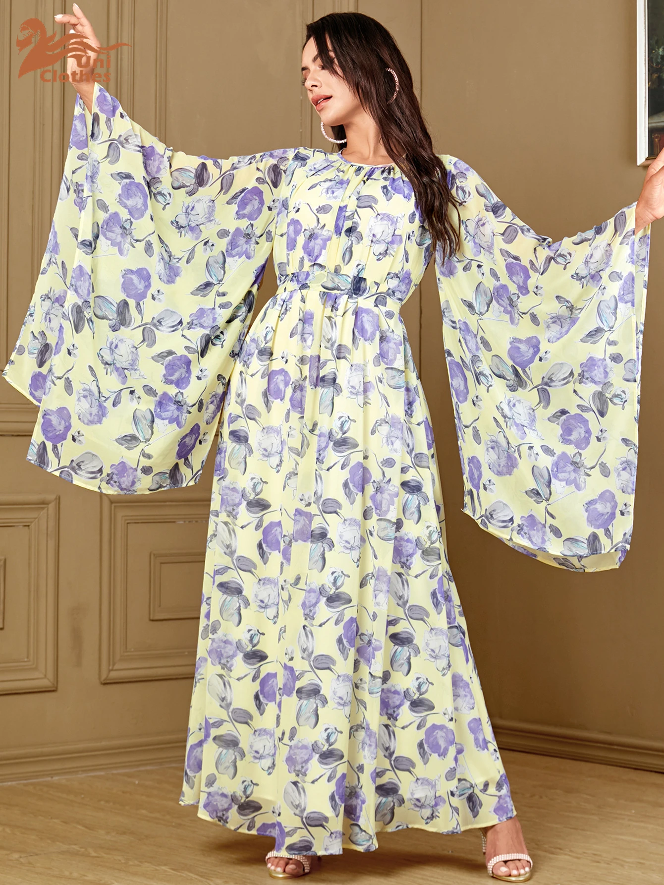 4049 Muslim Dress Turkey EID Abaya Floral Robe Dress Ramadan Mubarak Kaftan Dubai Plus Size