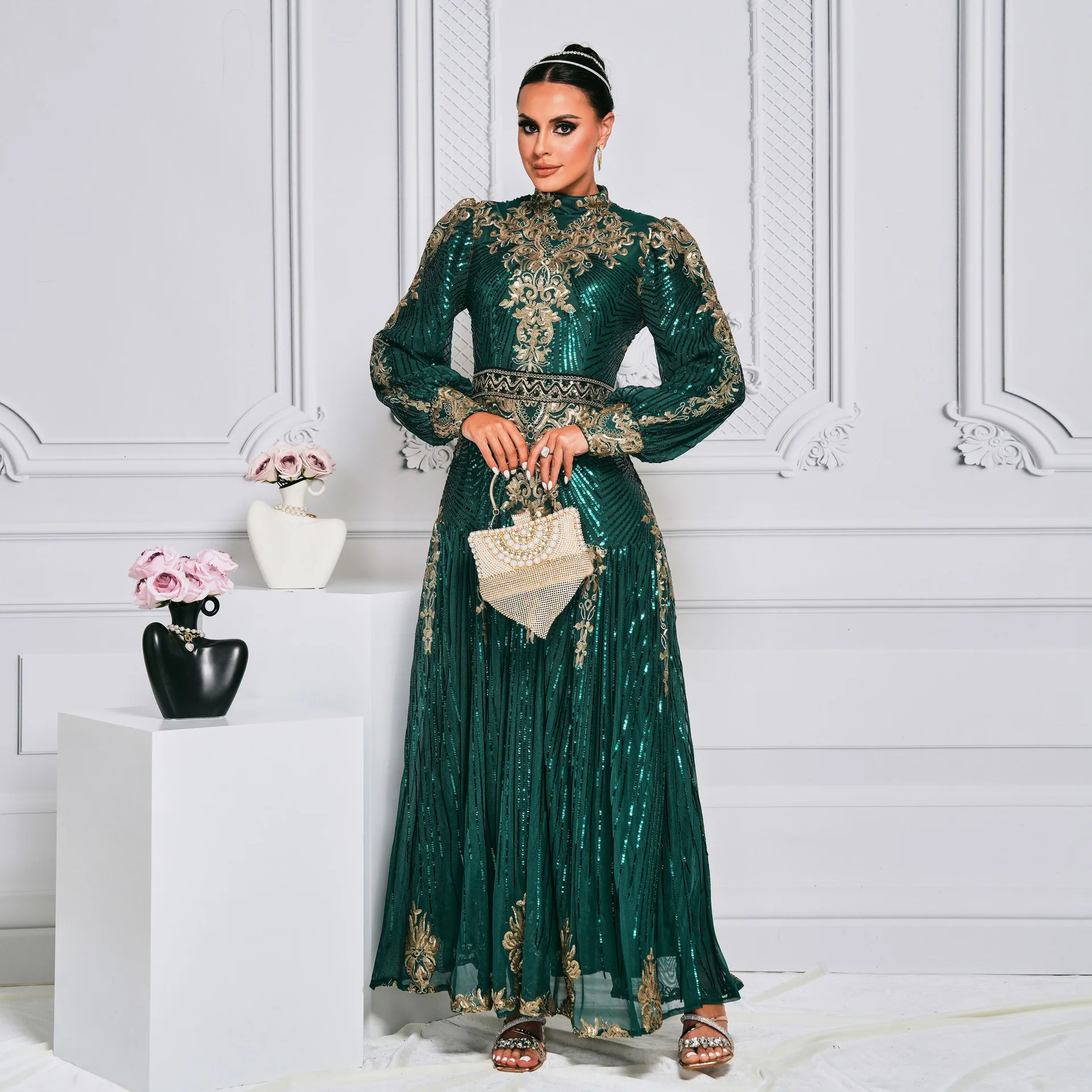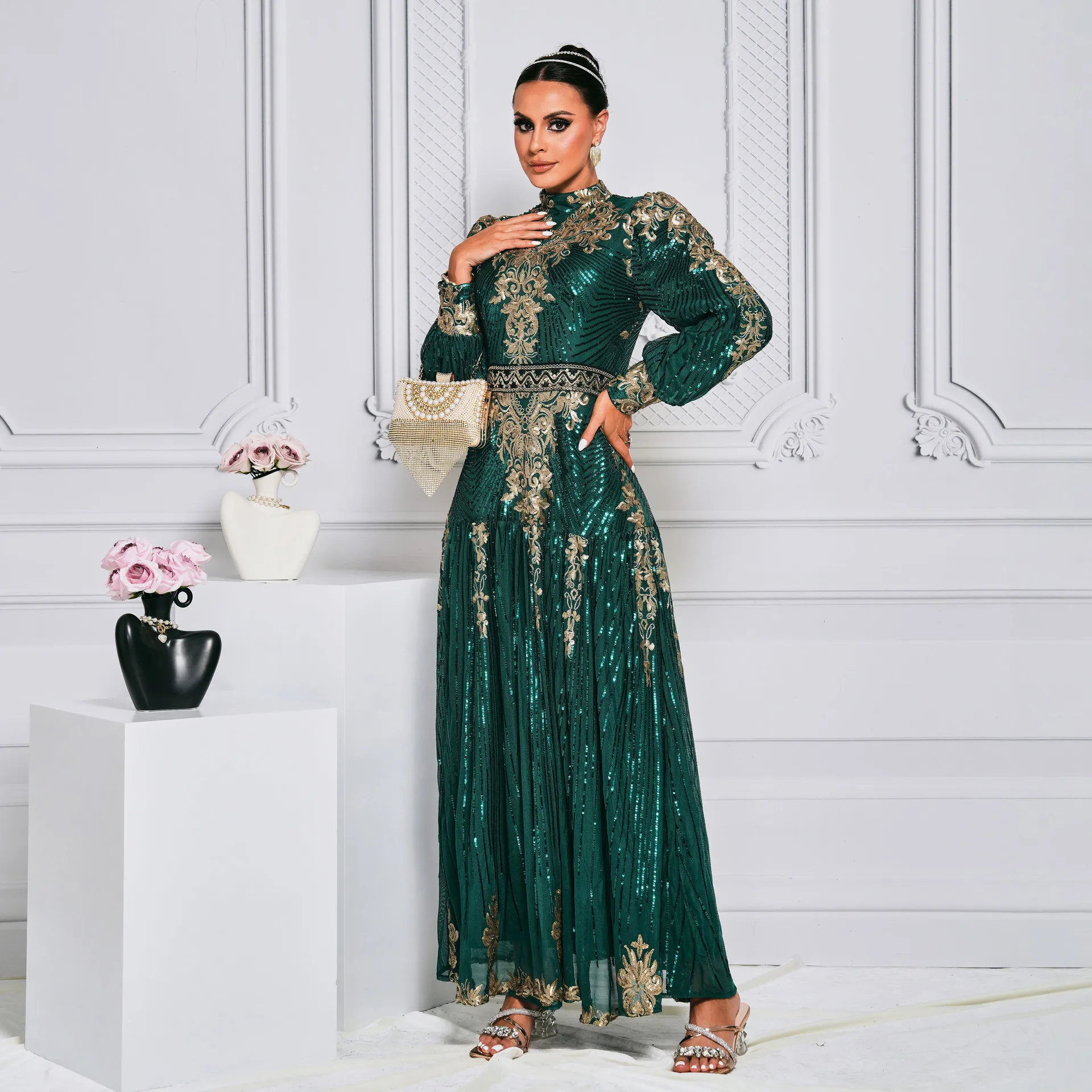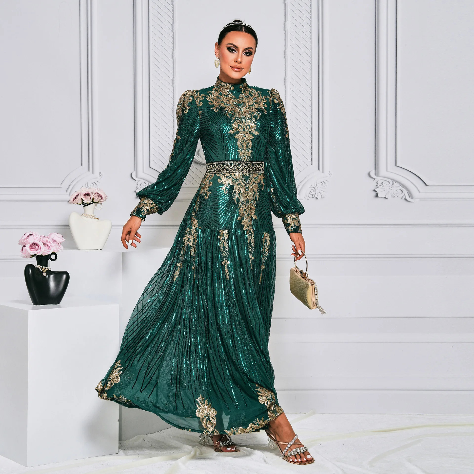 ZYHT 73902 Dark Green Blue Long Sleeve Simple Elegant Evening Dress Customize High End Women Clothing Manufacturer