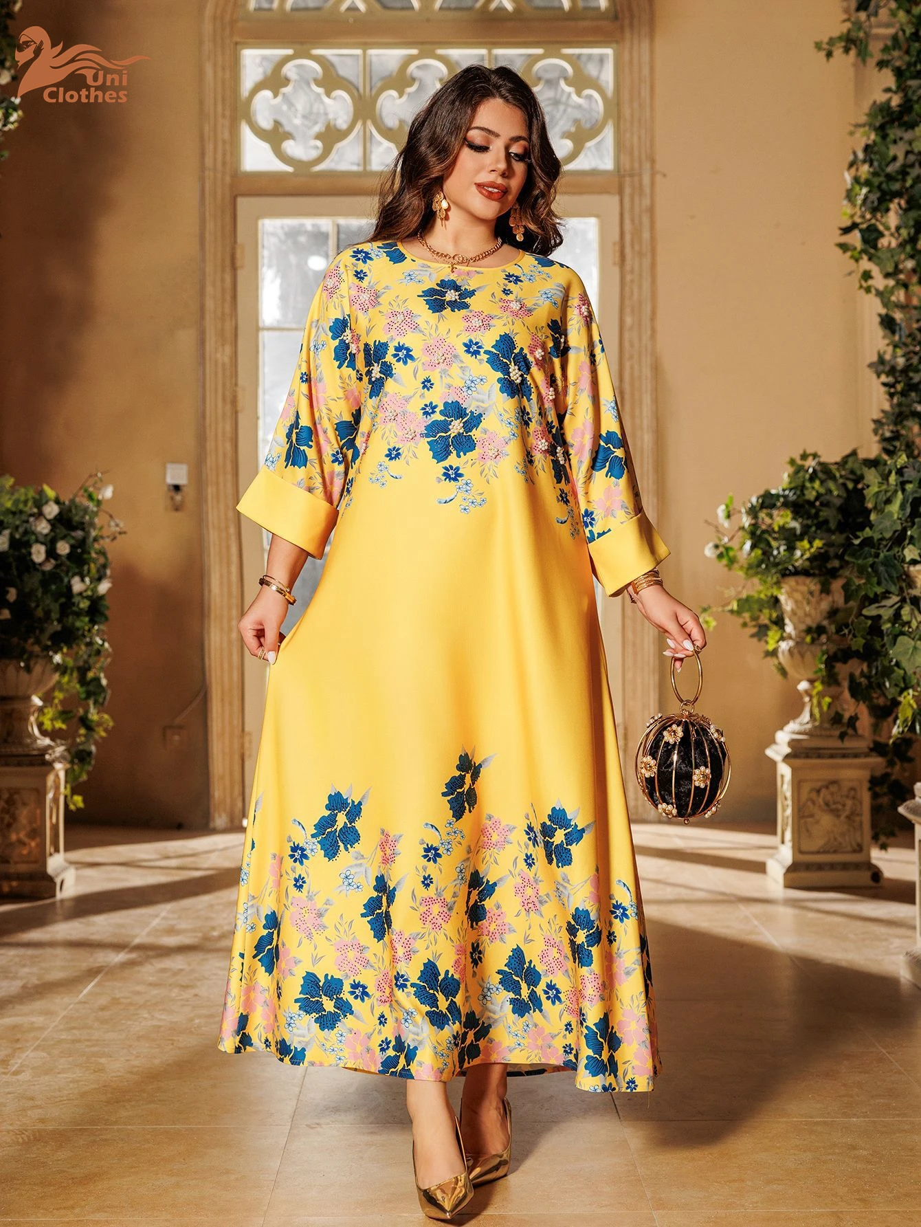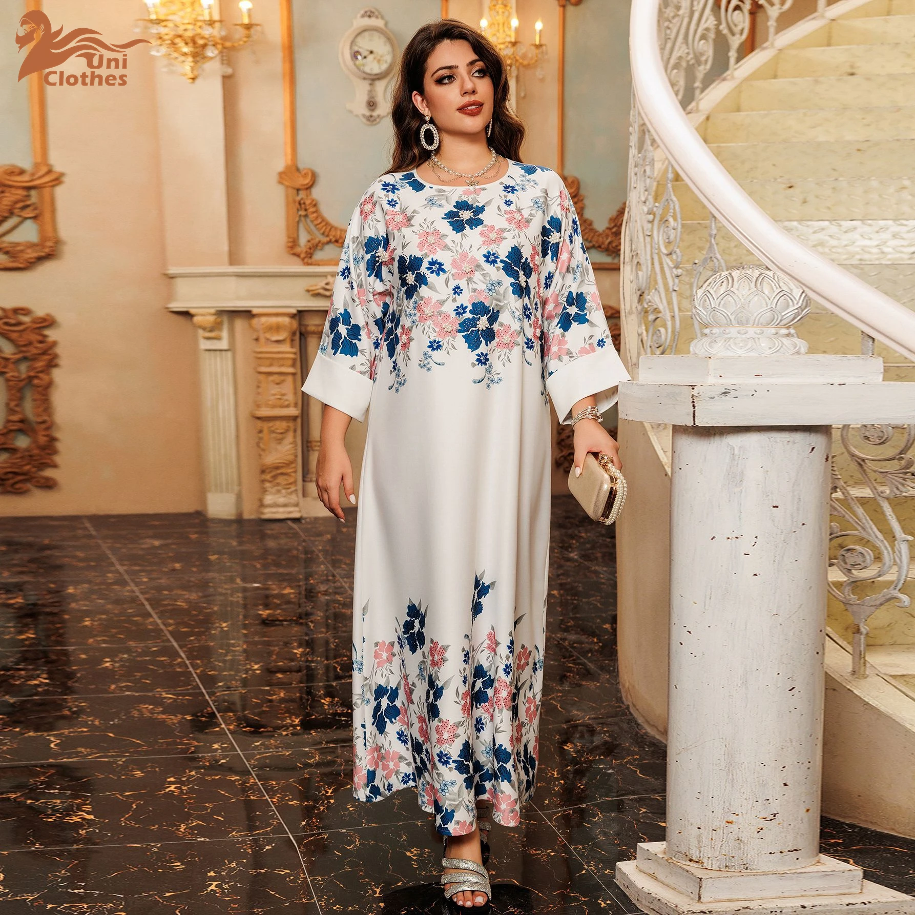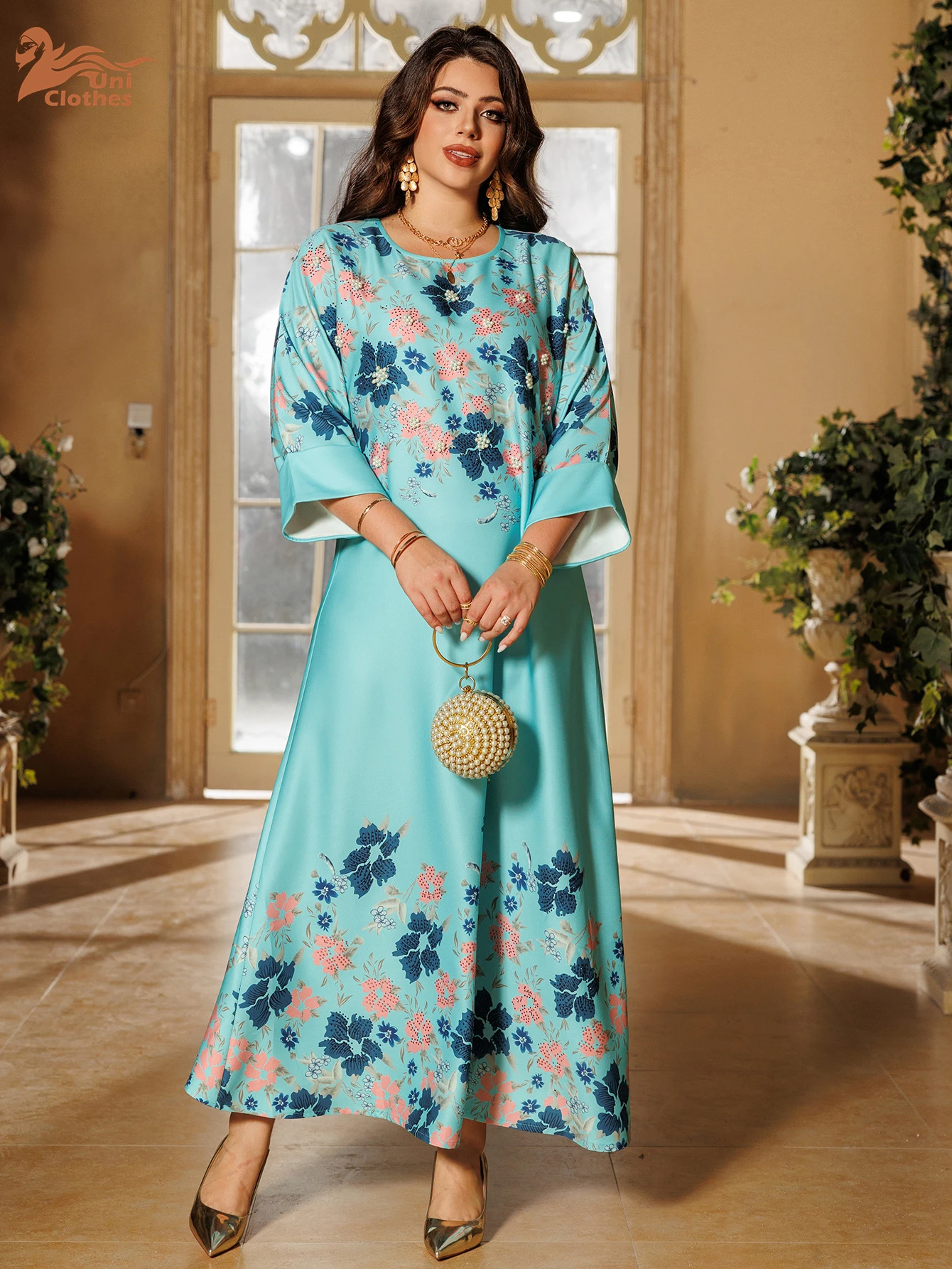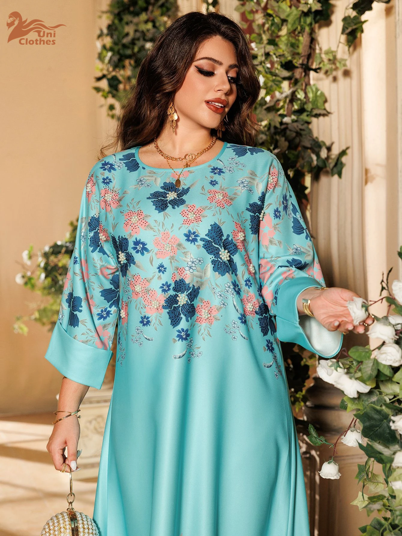 Fancy Muslim Islamic Kaftan Long Sleeve Printing Floral Muslim Cardigan Women's Clothing Formal Dress for Eid - Wedding - Party