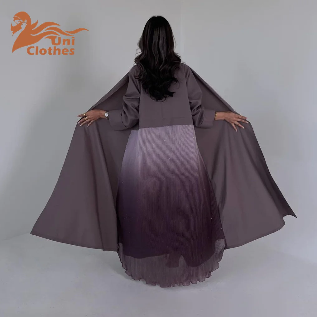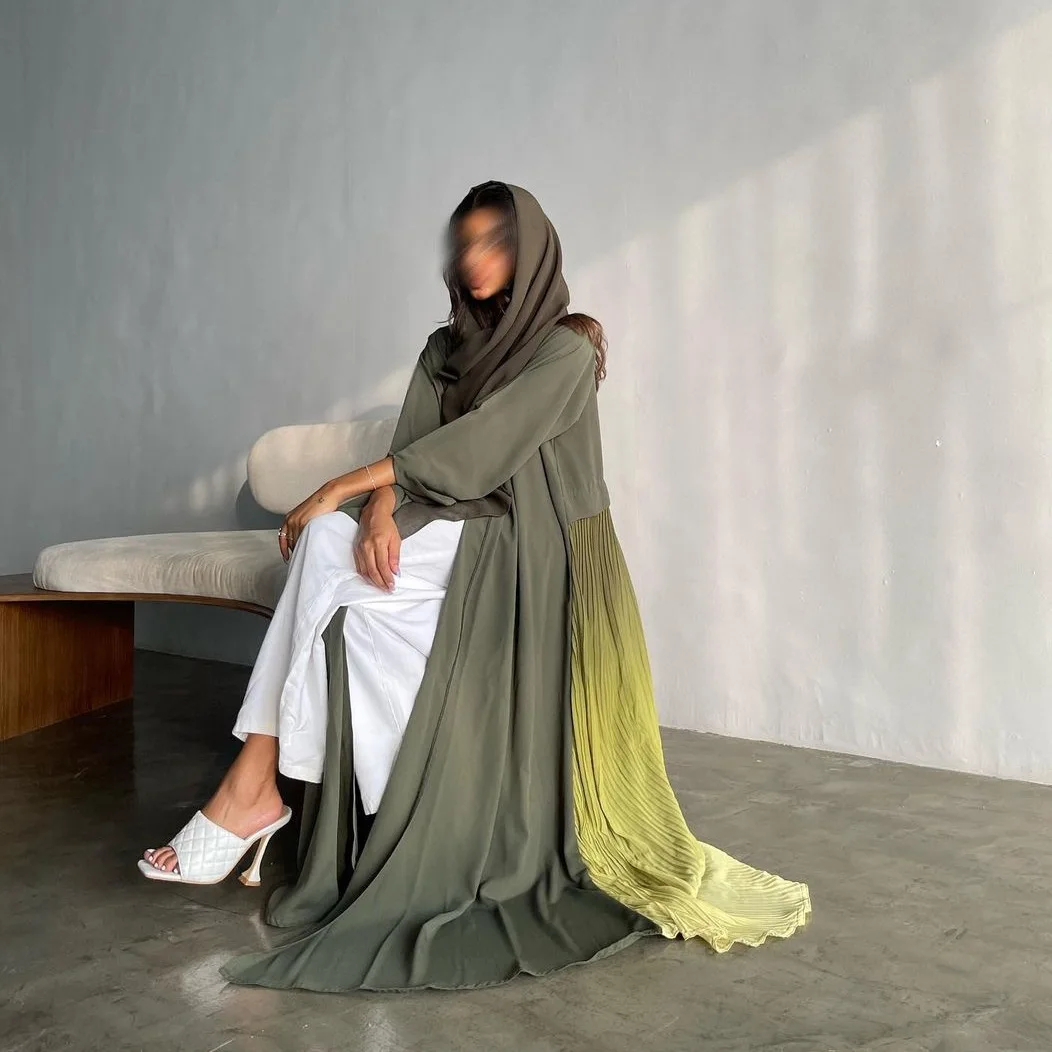 Beautiful Muslim Traditional Abaya Chiffon Pleated Patchwork Dress Gradient Elegant Color Dubai Abaya