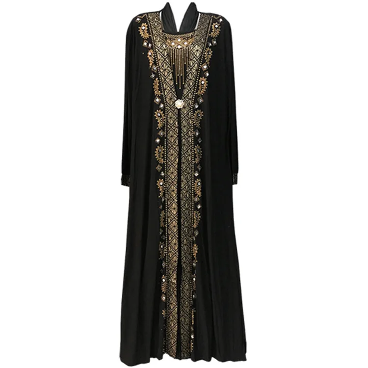 Factory Selling Dubai Abaya v Neck Hot Drilling Plus Size Party Dresses Evening Elegance EID Plus Size Kaftan