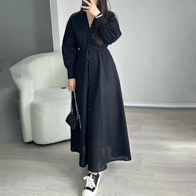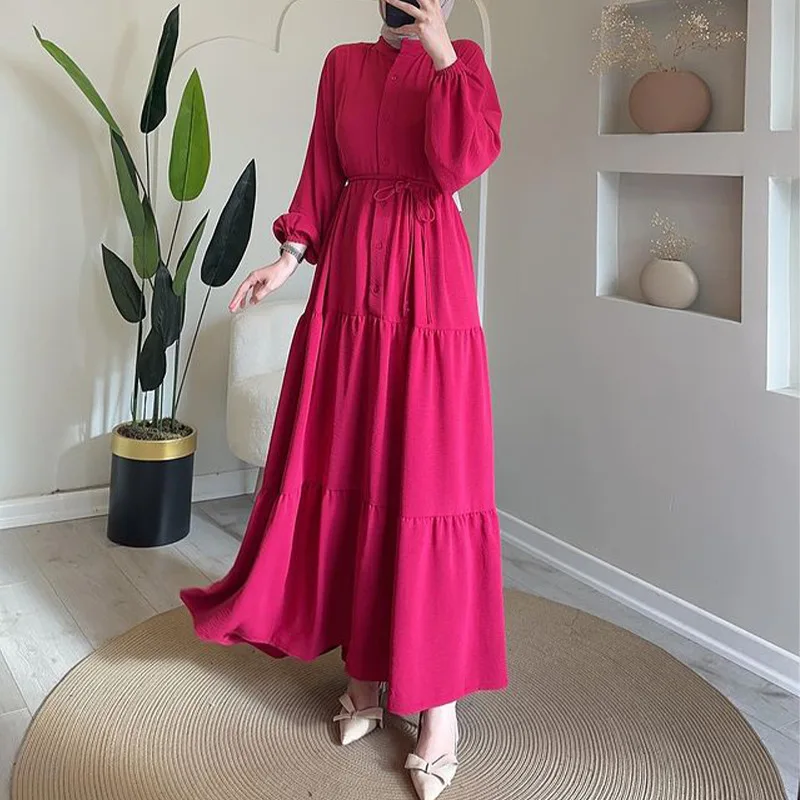 Fashion Middle Eastern Islamic Clothing Arabic Solid Color Long Sleeve Loose Dress Muslim Women's Dresses Muslim Abaya
