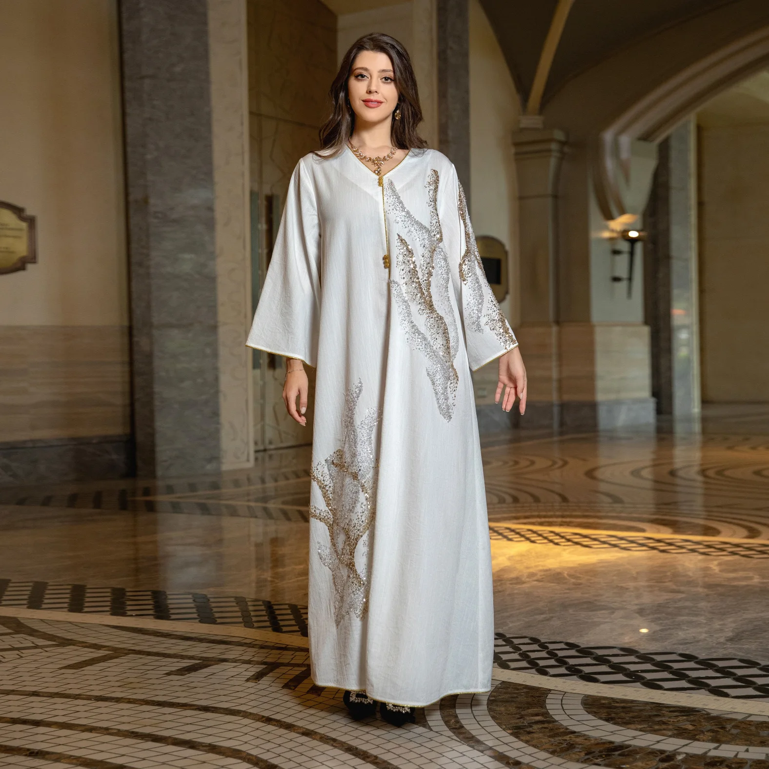 Luxury Ramadan Muslim Kaftan Abaya Dress AB344 Women Dubai Jalabiya Elegant Gowns African Maxi Dress Plus Size Boubou Robe Djel