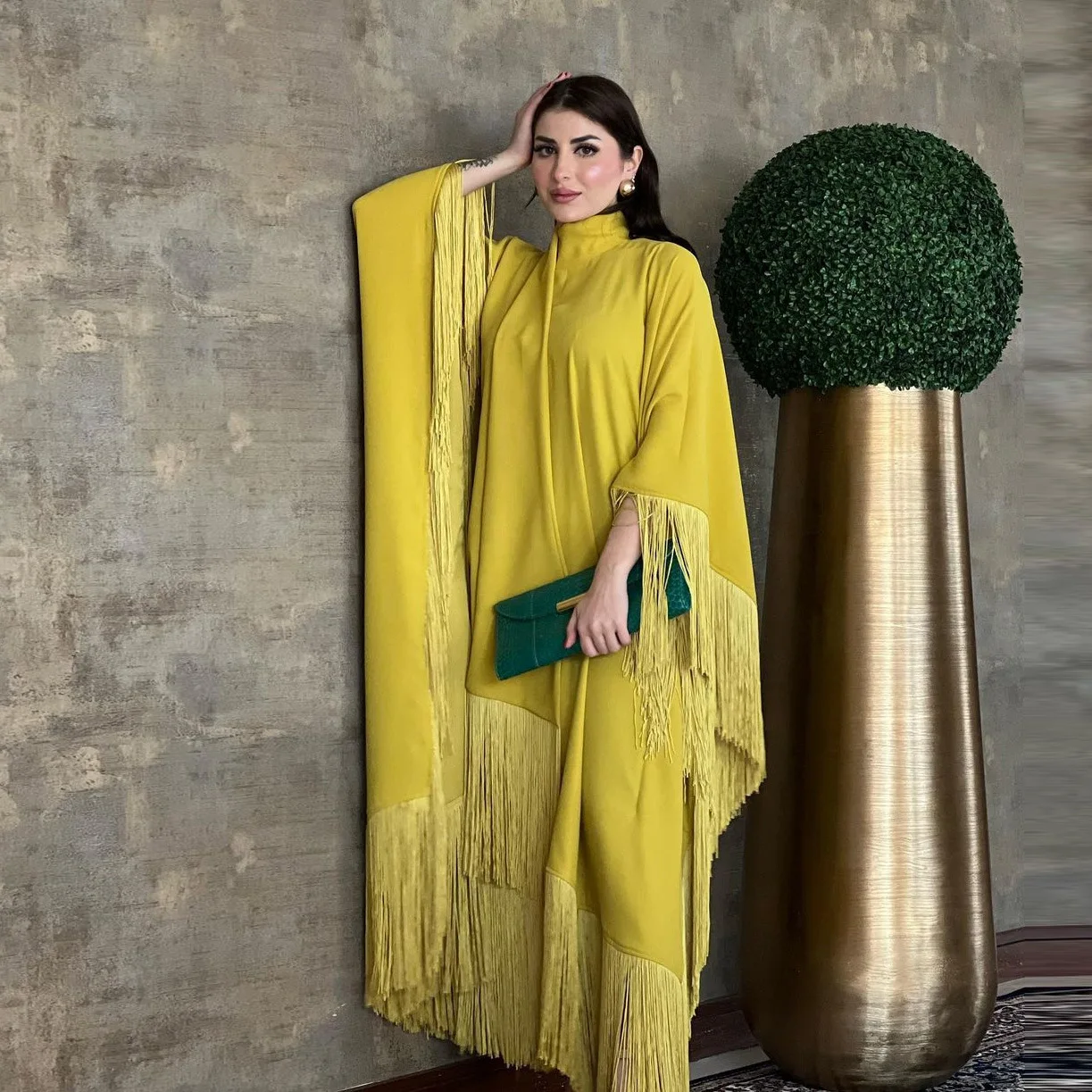 ZYHT 73571 Custom Elegant V-Neck Cape Sleeve Dresses Trendy Straight Yellow Maxi Party Gowns Modest Evening Dress for Women