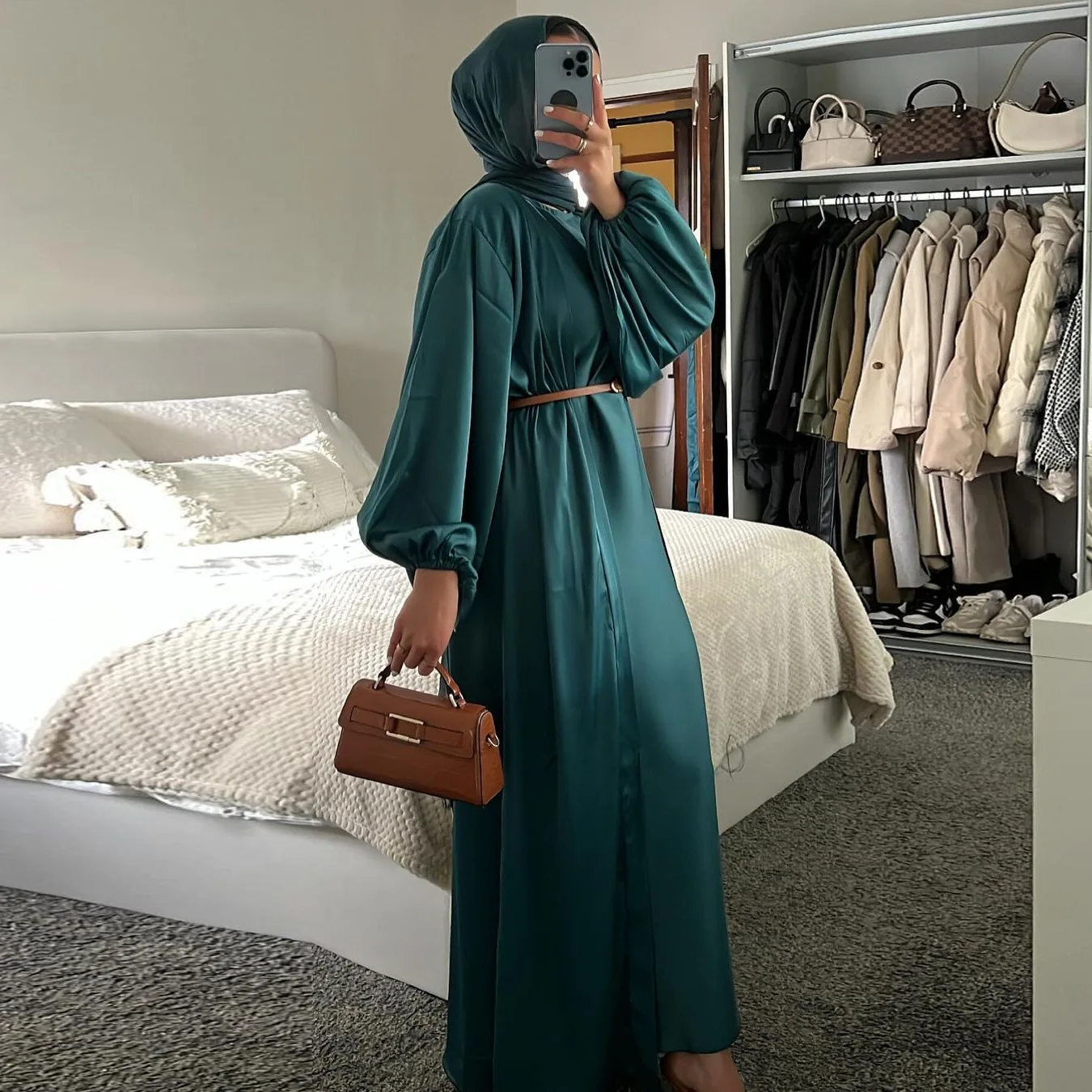 ZYHT 73902 Dark Green Blue Long Sleeve Simple Elegant Evening Dress Customize High End Women Clothing Manufacturer