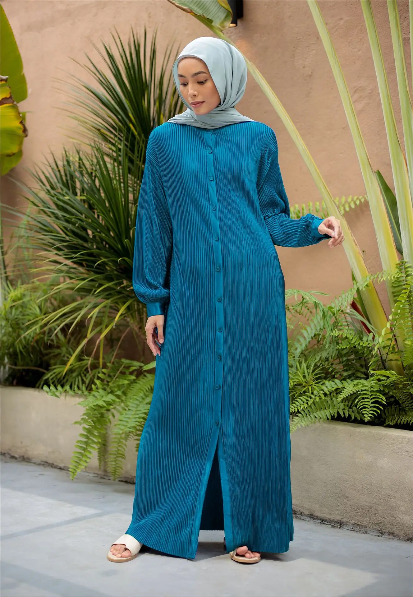 ZYHT 73902 Dark Green Blue Long Sleeve Simple Elegant Evening Dress Customize High End Women Clothing Manufacturer