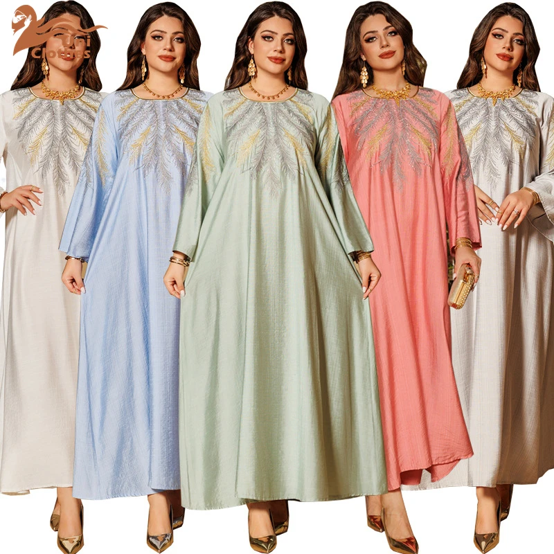 Fancy Colorful 5 Styles Embroidery Traditional African Wax Printed Muslim Dubai Women Plus Size Clothes for Kaftan Abaya Robe