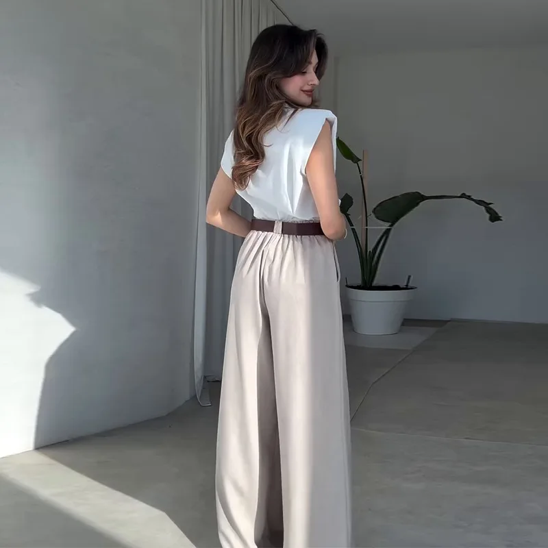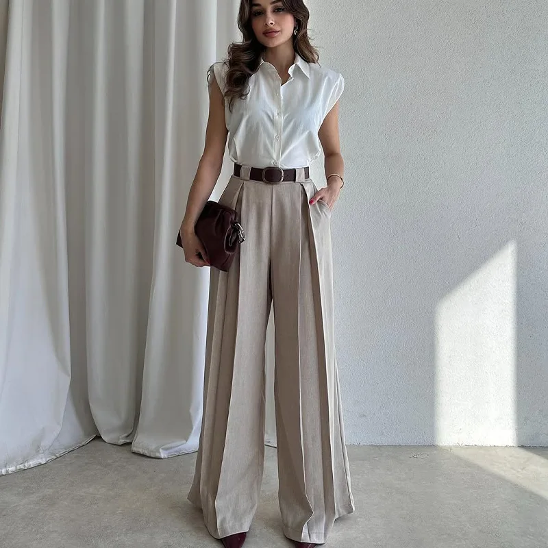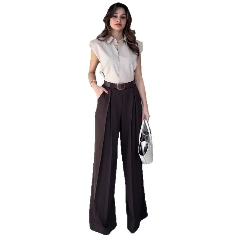Wholesale 2026 summer new fashion aunt temperament sleeveless shirt waist high waist straight trousers women's suit