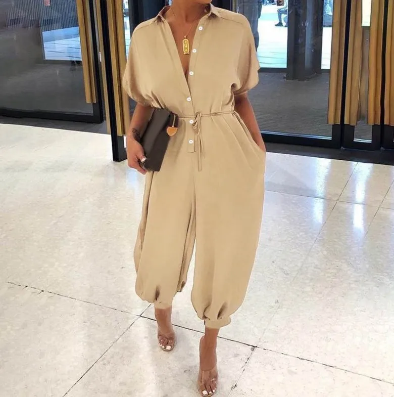 Wholesale 2022 European and American Summer New Jumpsuit Casual Jumpsuit Women's Short-sleeved Button Women's Jumpsuit