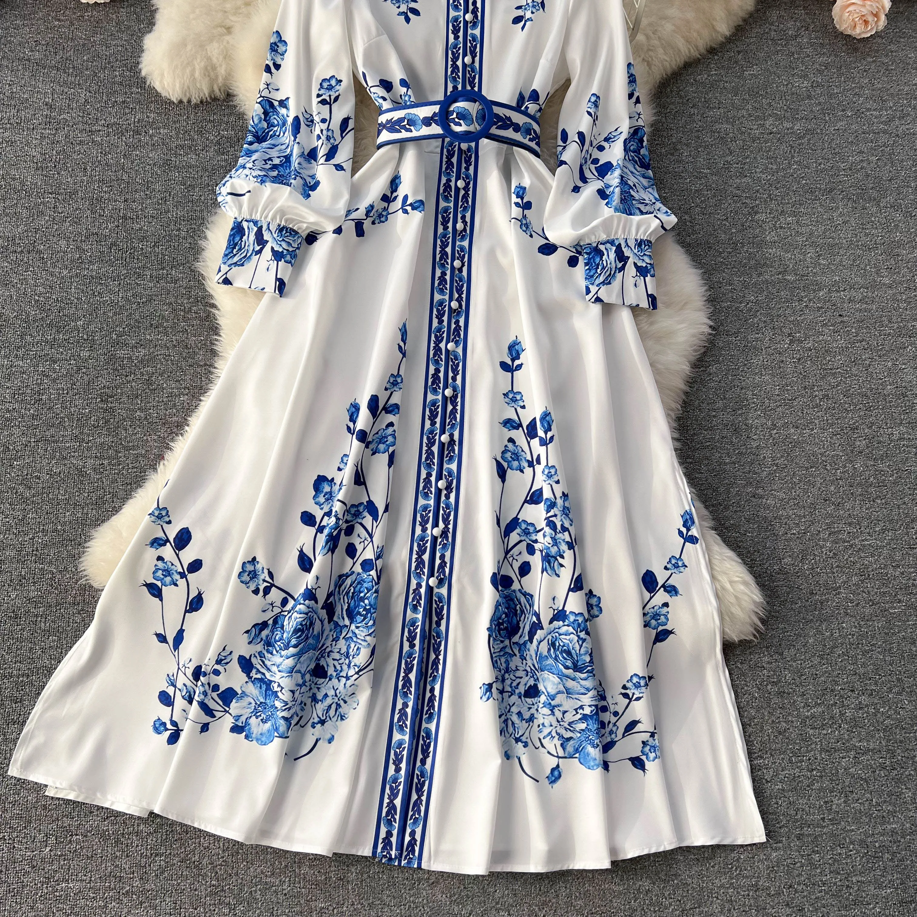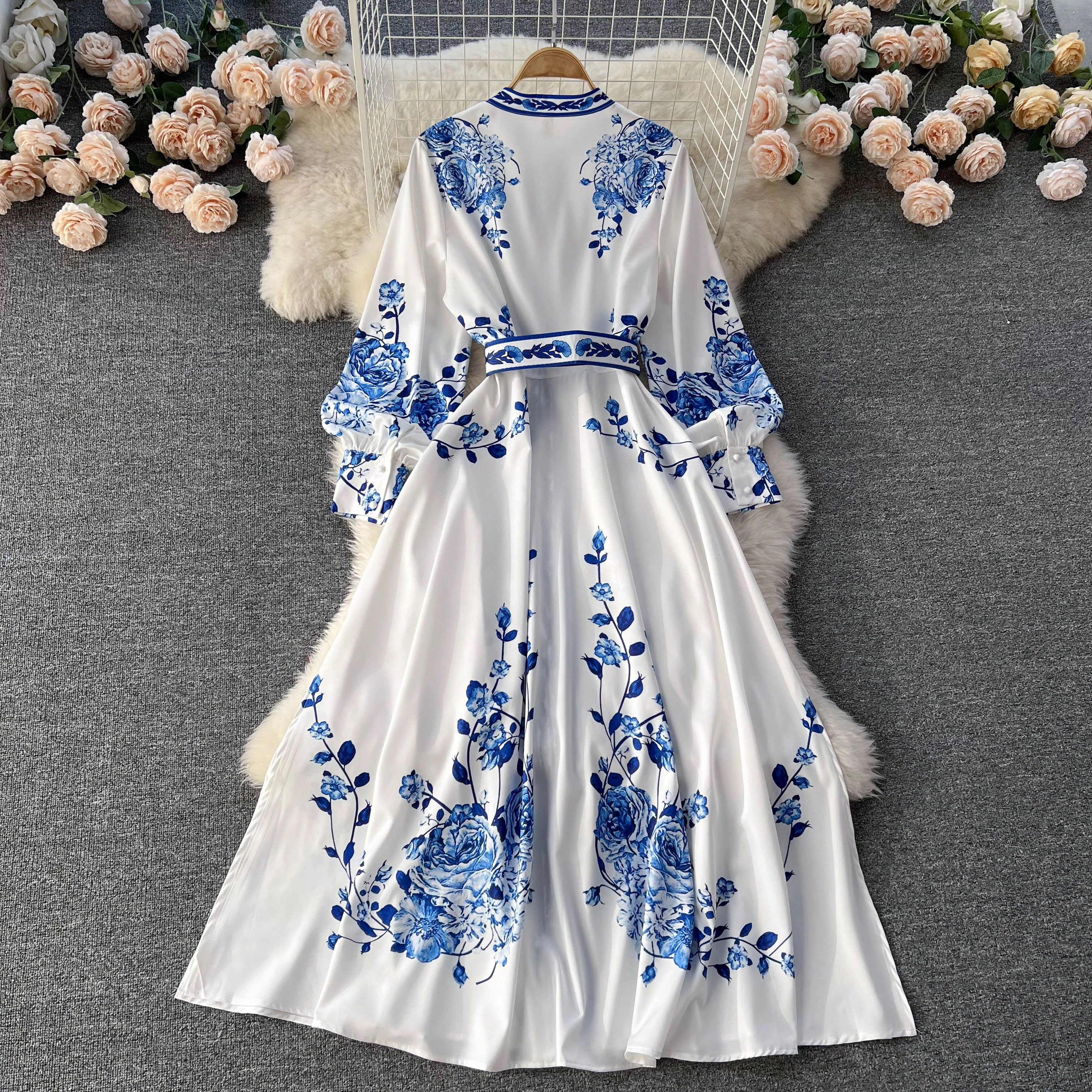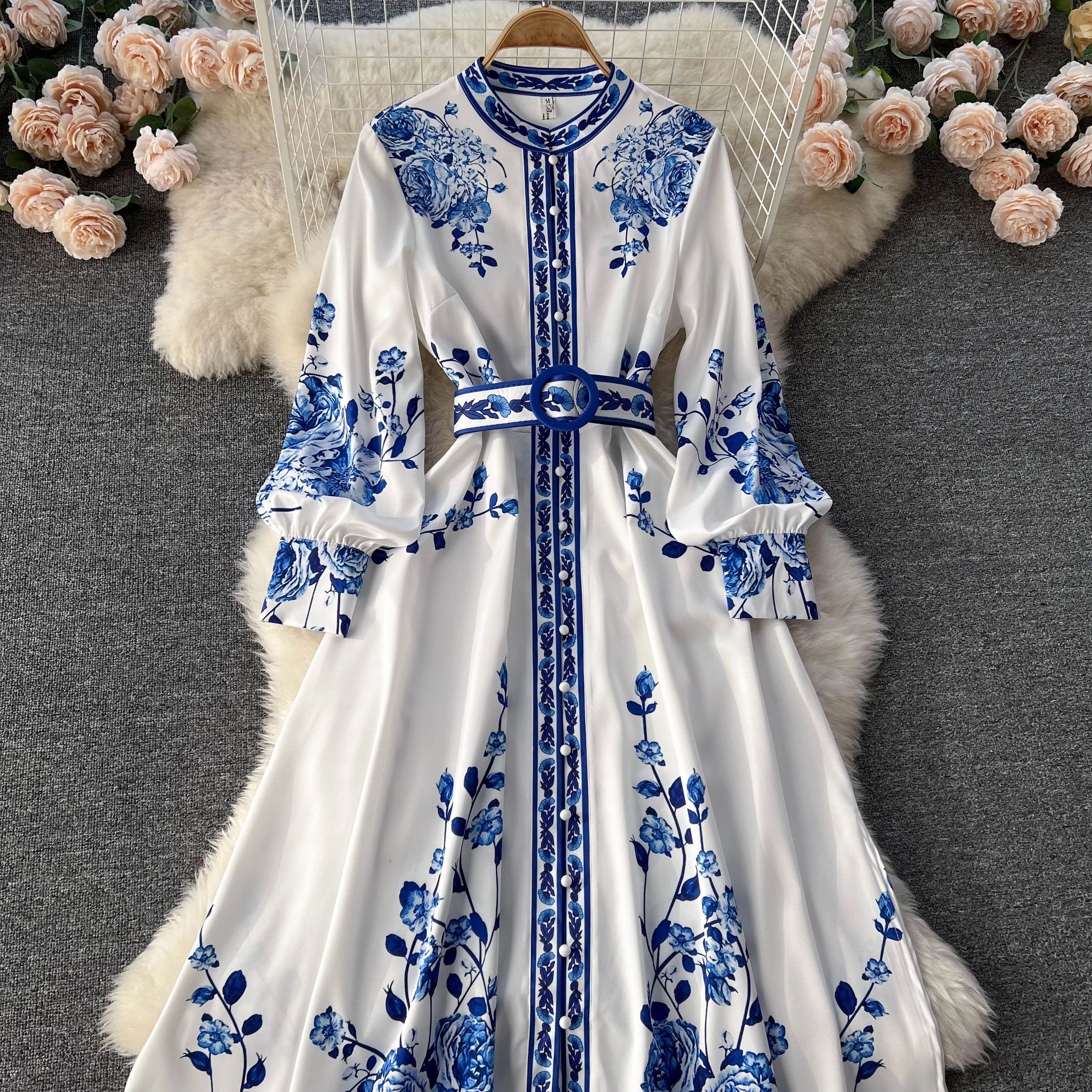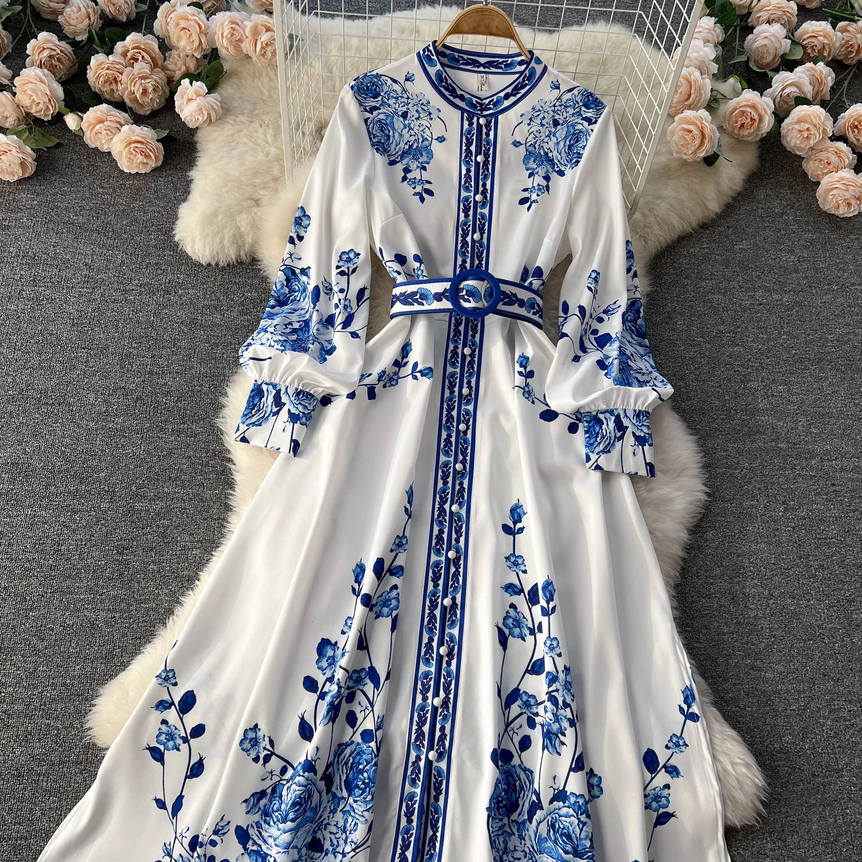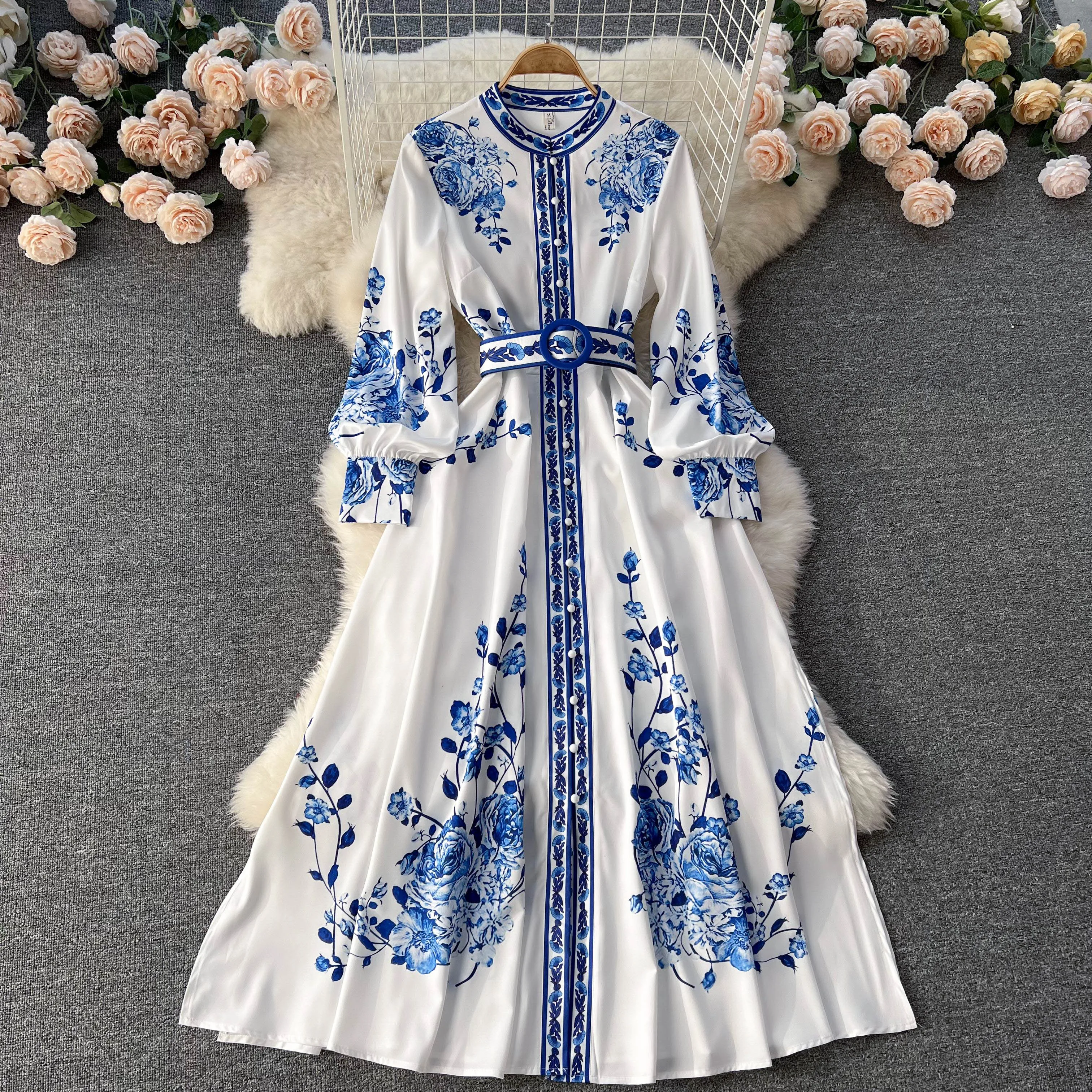 Wholesale Printed Stand-up Collar Single-breasted Spring New 2026 Temperament Long Sleeve Chinese Style Women's Dress